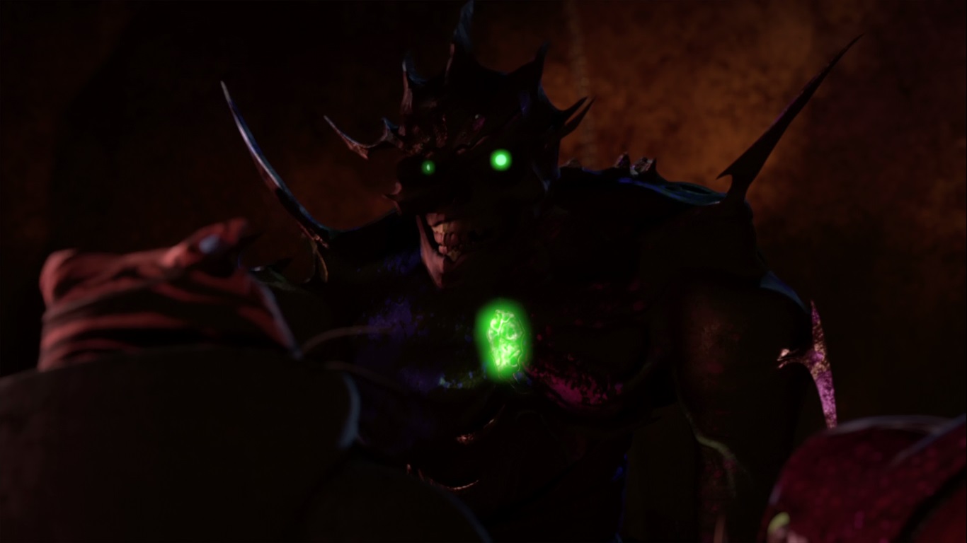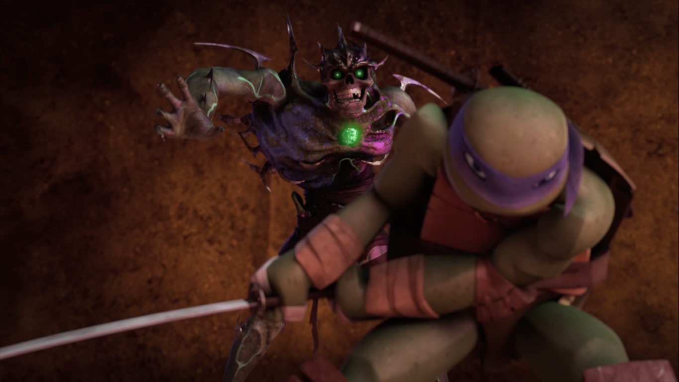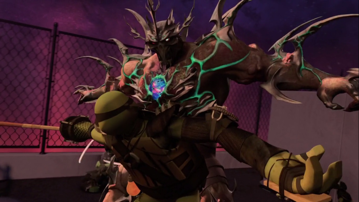 Ce dernier compris que son chef voulait le remplacer par le démodragon et s’opposa à une pareille folie. Il fut attaqué par Rahzar. Dans le combat, le Sceau des Anciens fut brisé, libérant Kavaxas de toute contrainte. Shredder était prêt à servir son nouveau maître et des gouffres s’ouvrirent dans tout New York, laissant sortir d’innombrables esprits.