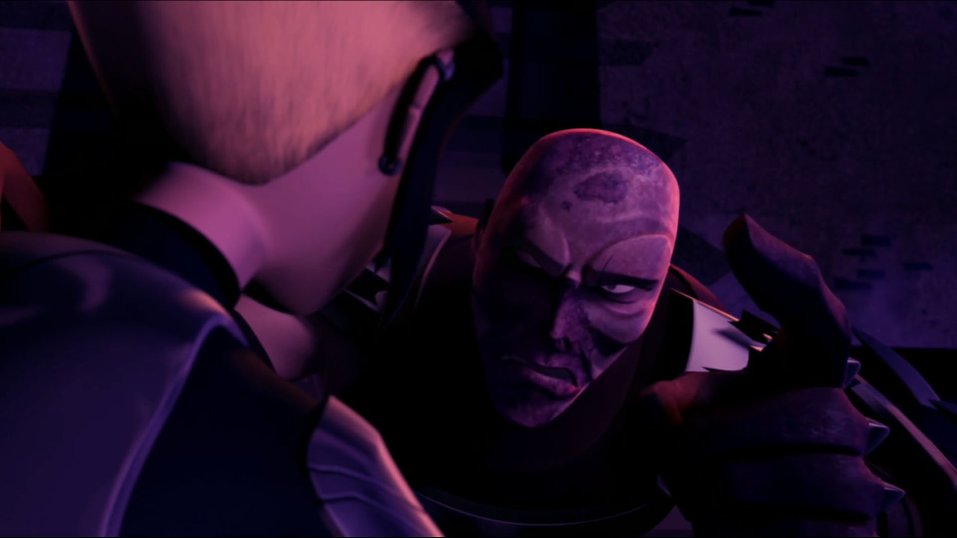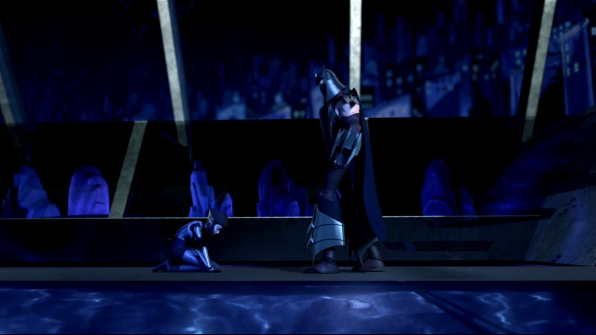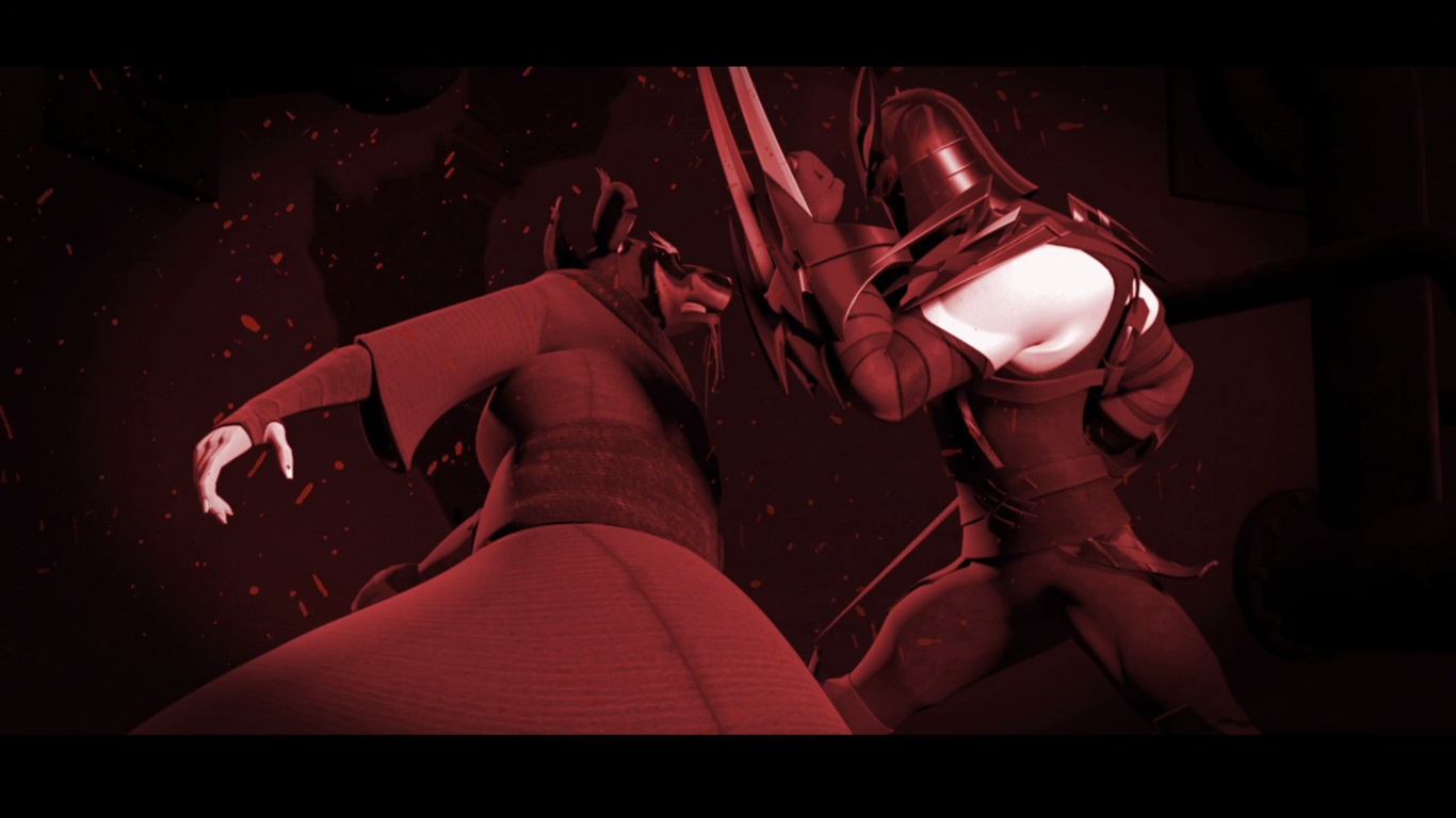 Furieux, Splinter jeta son adversaire à terre. Alors qu’il s’apprêtait à l’exécuter, Miwa interrompit la lame qui s’abattait sur celui qu’elle prenait pour son père depuis plus de quinze ans. Le mutant comprit que sa bataille était perdue d’avance et préféra battre en retraite. Shredder était vaincu, au sol et sans casque. Il avait dévoilé son visage meurtri par les flammes qui avaient embrasées le dojo lors de leur combat précédent (L’affrontement, part. 2, S1 E26).