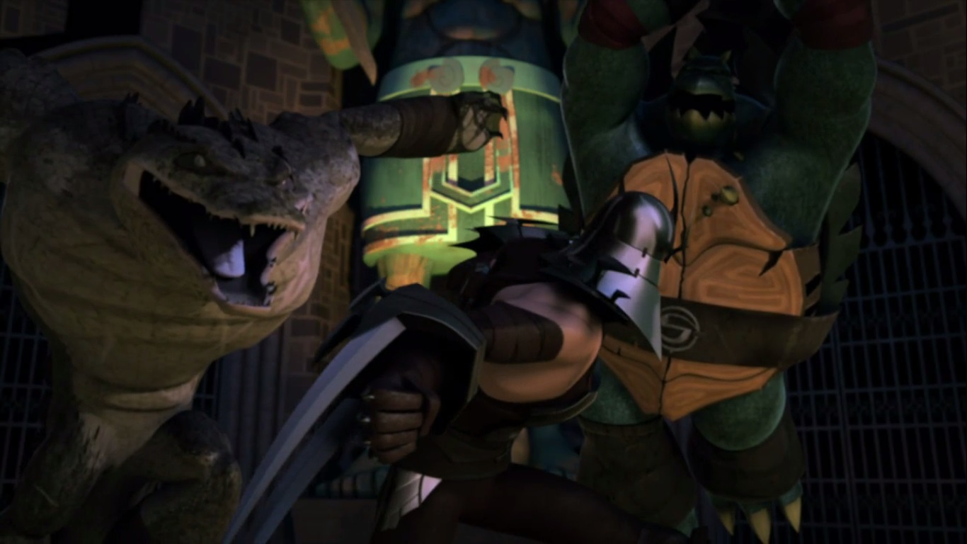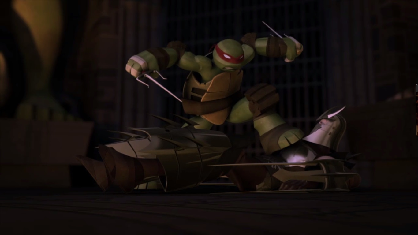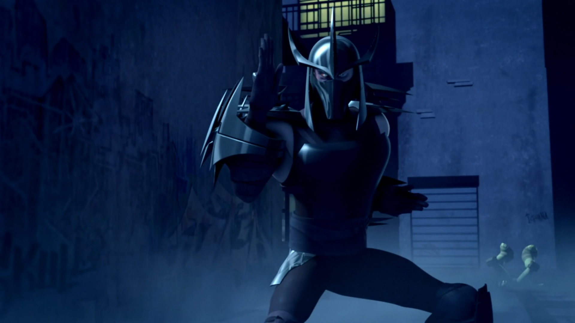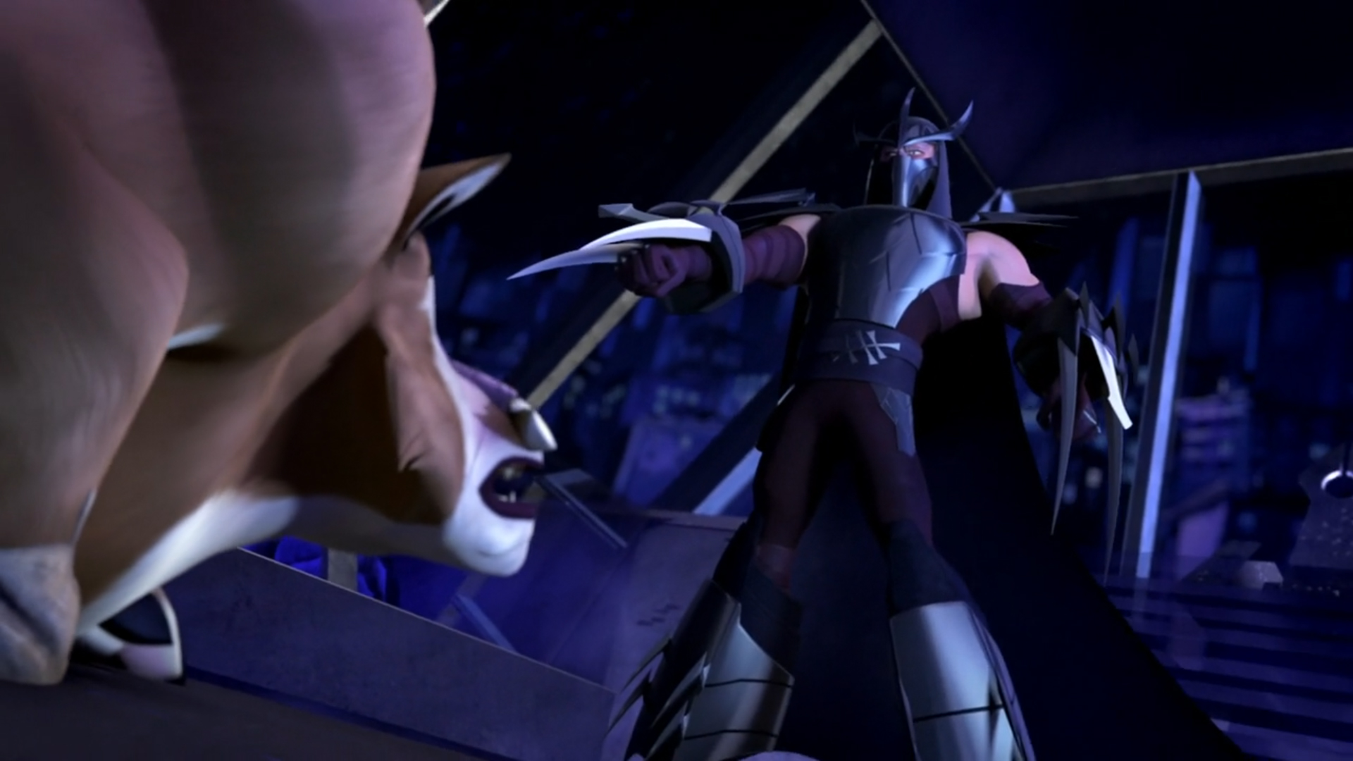Las des échecs de ses seconds, Shredder décida de s’occuper des tortues et de Splinter lui-même. Il retrouva les quatre frères sur le toit d’un immeuble. Ils venaient de terrasser une nouvelle fois Bradford et Xever après avoir désamorcé une bombe de mutagène des kraangs. L’homme en armure terrassa les reptiles sans la moindre difficulté. Sur le point de les achever, il fut déconcentré par ses deux hommes de main, devenus des mutants. Les tortues en profitèrent pour s’enfuir (Le défi, S1 E9). Après cette lourde défaite, la confiance des tortues était ébranlée. Il s’agissait du pire revers des ninjas depuis leurs débuts. Un simple bruit les faisait frémir. Ils décidèrent malgré tout d’en apprendre plus sur les plans du Foot Clan et envoyèrent April enquêter. Ils découvrirent que Shredder désirait déverser des litres de produits inflammables dans les égouts pour les éradiquer. Ils réussirent à empêcher Dogpound de mener à bien son plan (Panique dans les égouts, S1 E10).