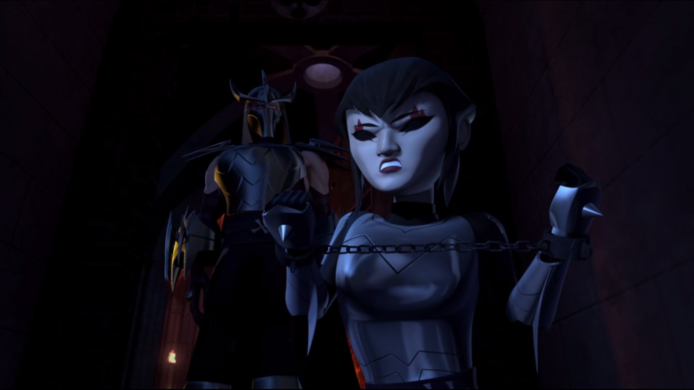 Mais Shredder ne s’attendait pas à ce que Karai se fasse libérer de sa prison par les tortues. Lorsqu’elle apprit à quel point son père adoptif avait été monstrueux, elle décida de rendre justice pour le Clan Hamato en allant le tuer. Elle se fit capturer et servirait d’appât pour les tortues. Mais l’opération de libération ne se déroula pas comme prévu, et Karai tomba dans le mutagène, se transformant en serpent. Shredder avait tout perdu (Le gout de la vengeance, S2 E22).