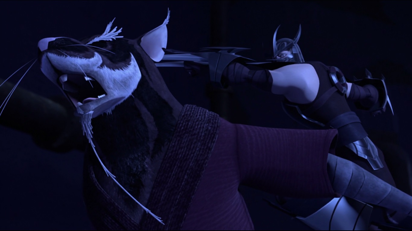 La jeune femme, qui cédait sa place à ce rival, ne l’appréciait guère. Ils devraient pourtant réaliser leur première mission ensemble, trouver les tortues. Les capturant, le tigre demandait à ce que Splinter vienne les délivrer. Le rat arriva et se fit capturer à son tour.