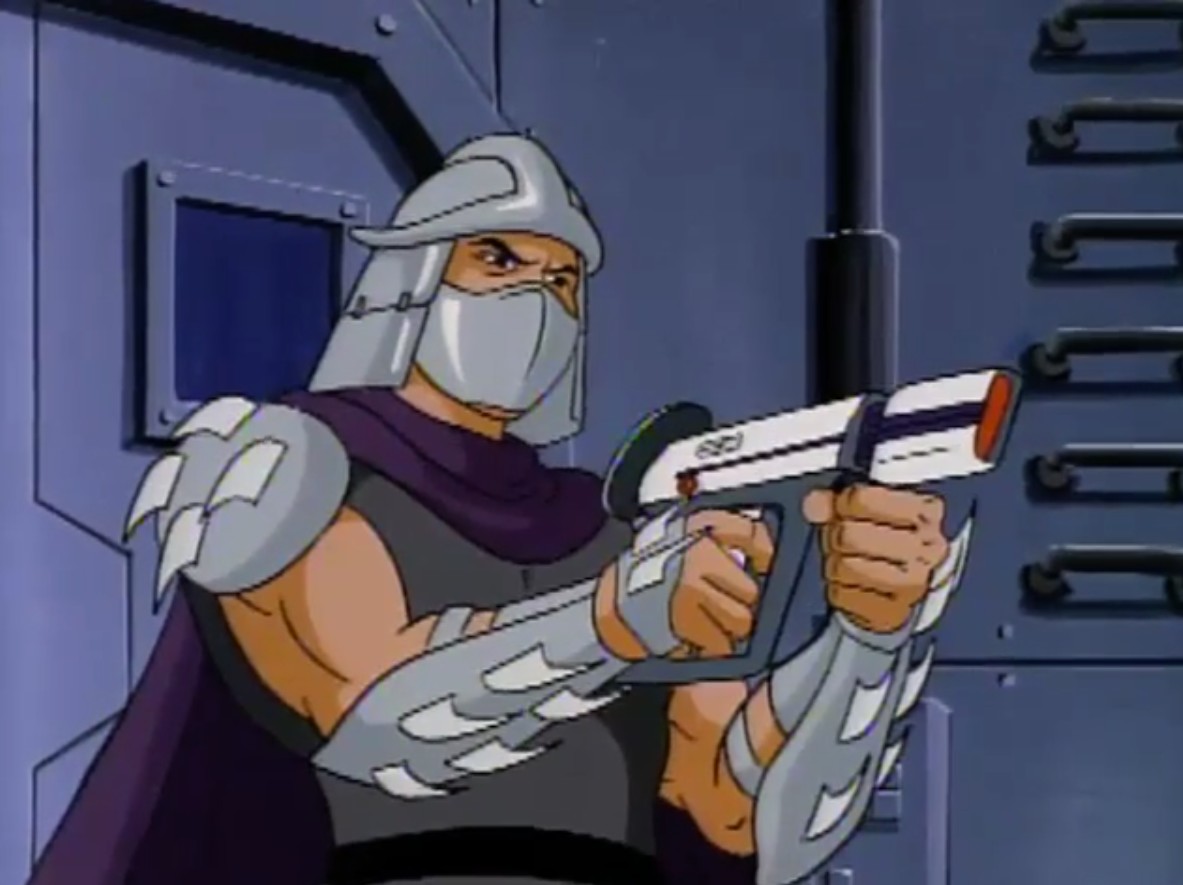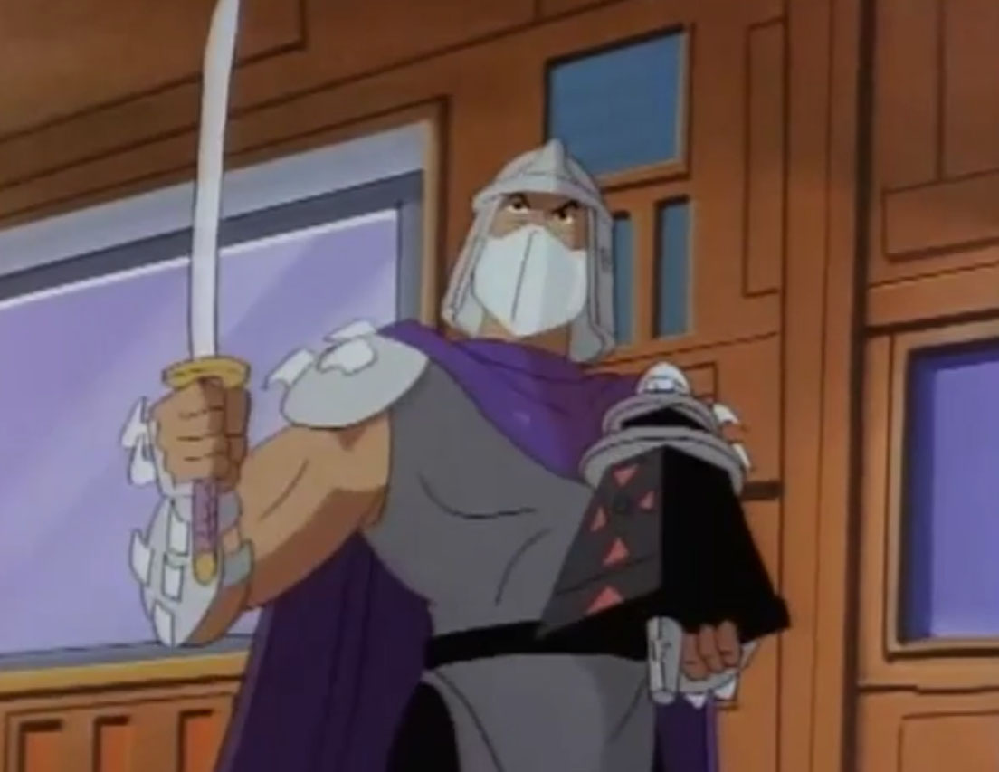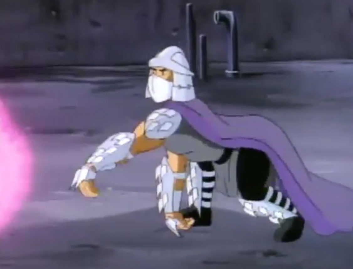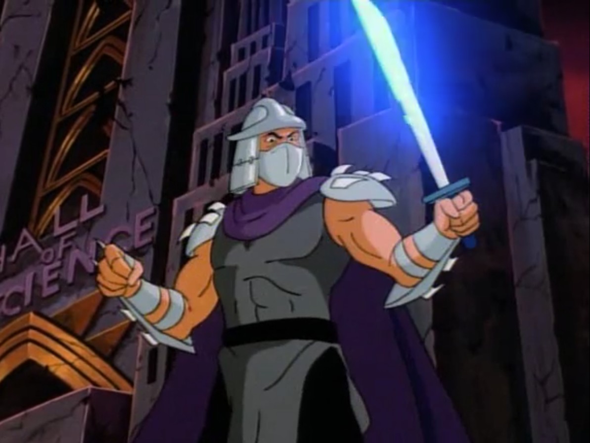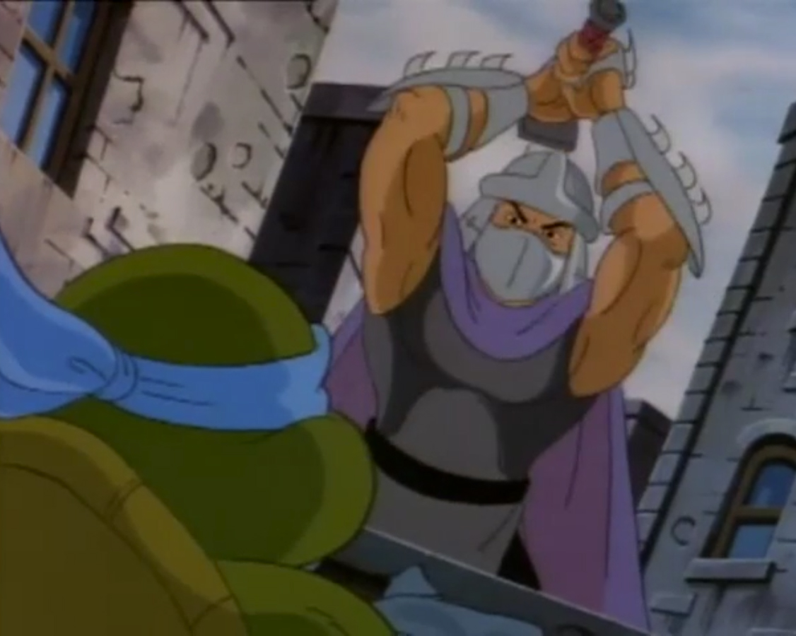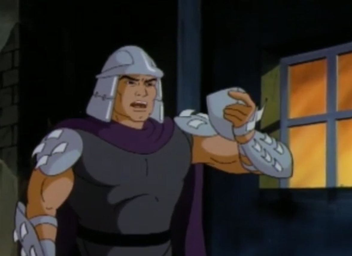 Nombreuses furent les tentatives de Shredder de vaincre les tortues. Il essaya même de réécrire l’histoire en se rendant au XVIe siècle pour changer la fondation de son clan (La légende de Koji, S7 E3).