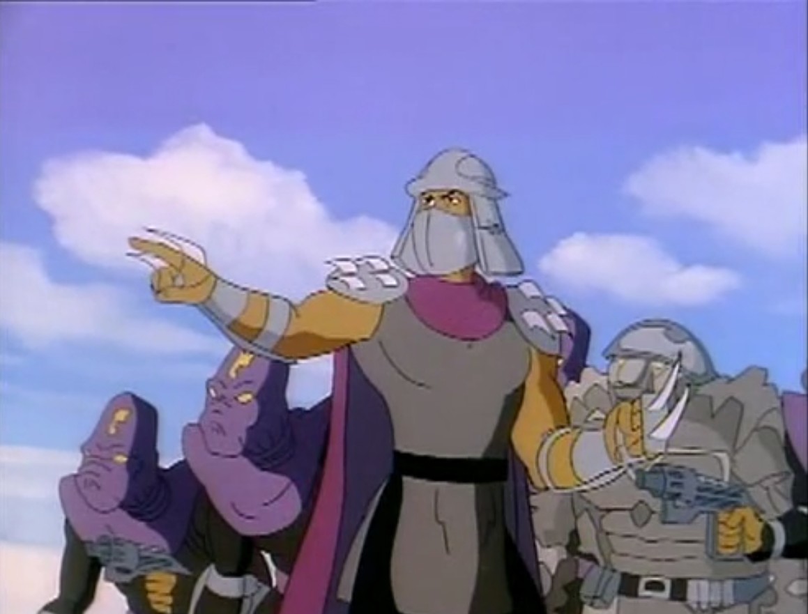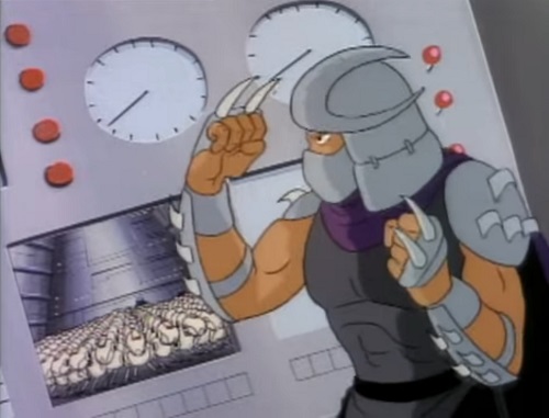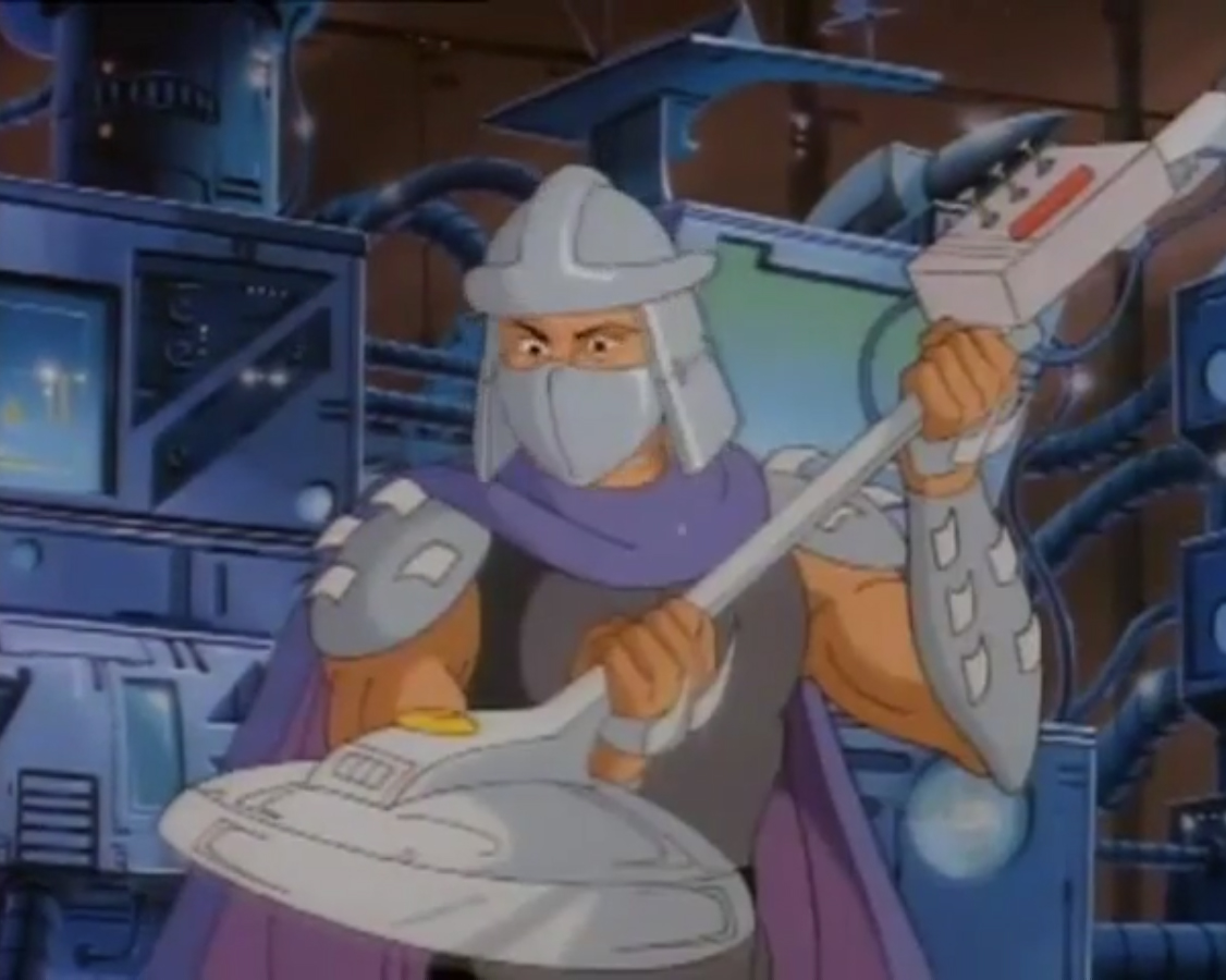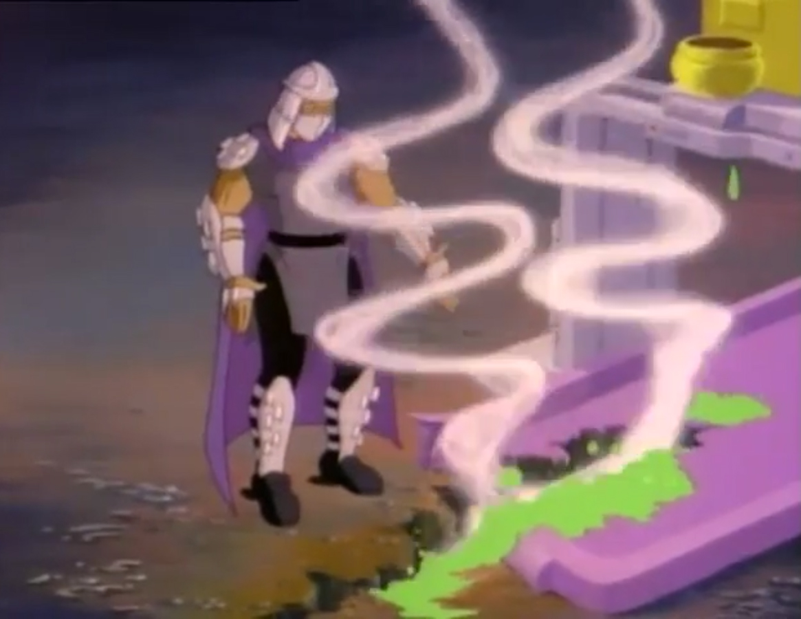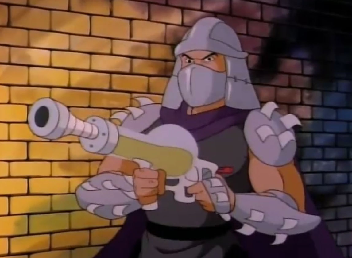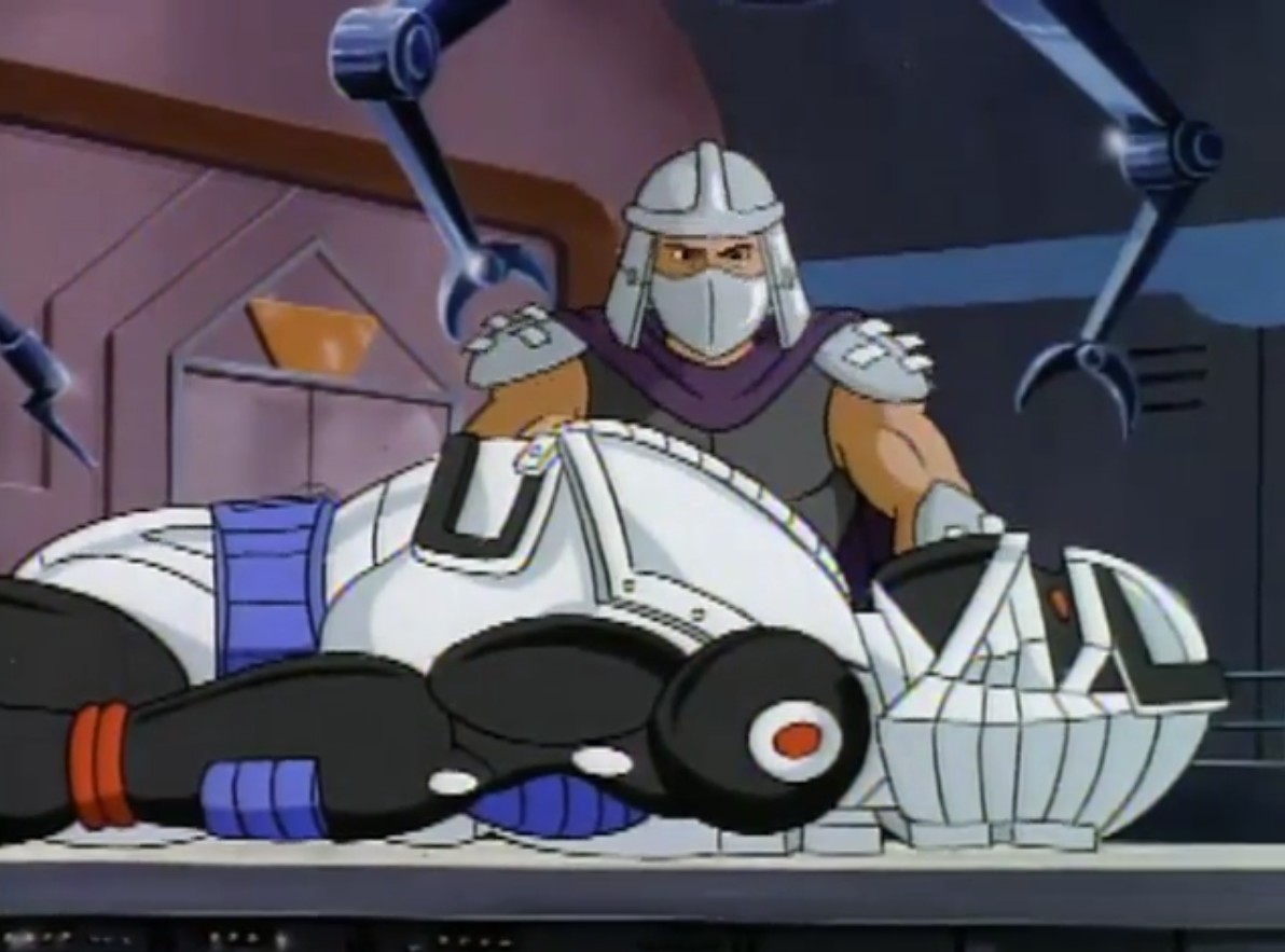 Nombreuses furent les tentatives de Shredder de vaincre les tortues. Il essaya même de réécrire l’histoire en se rendant au XVIe siècle pour changer la fondation de son clan (La légende de Koji, S7 E3).