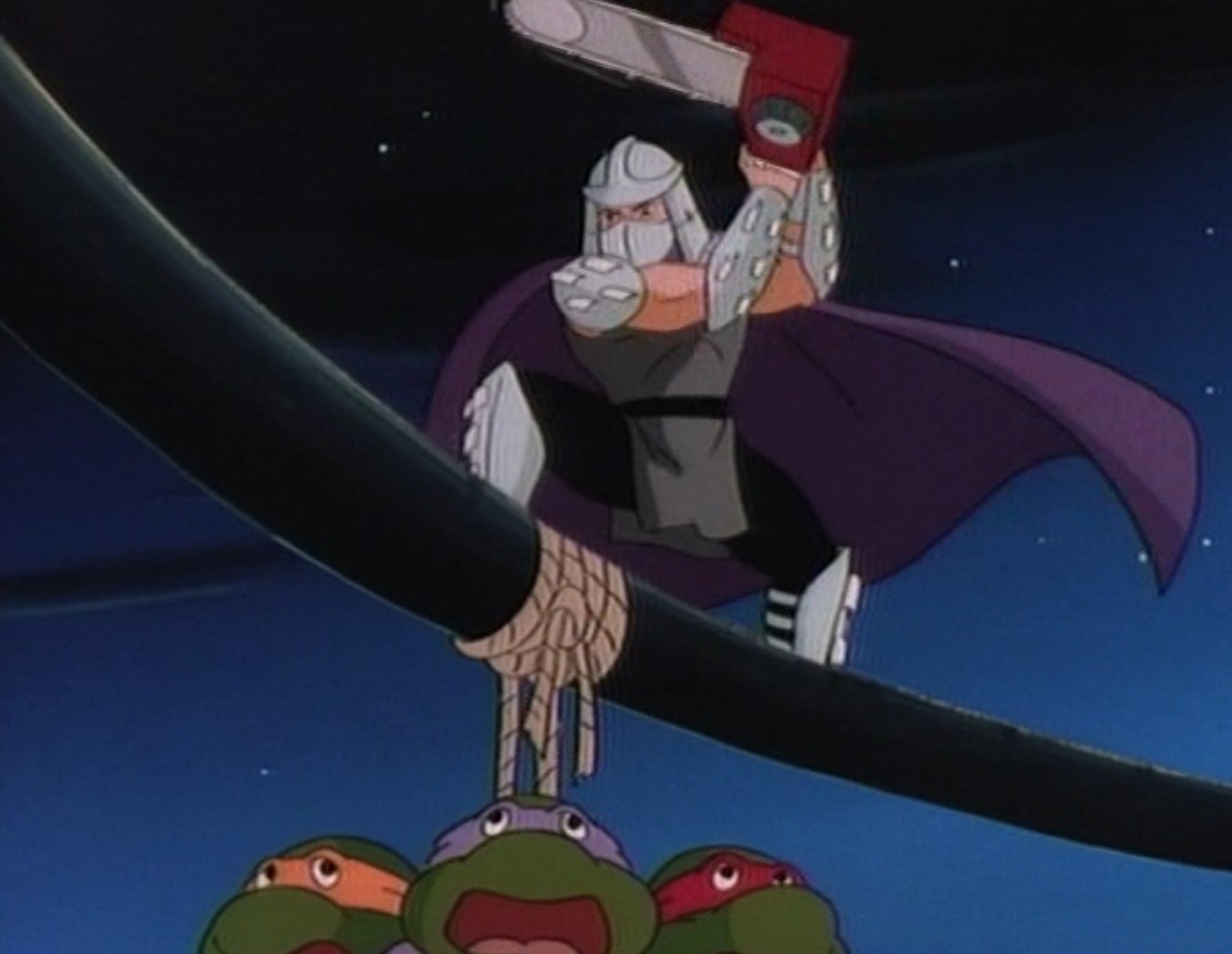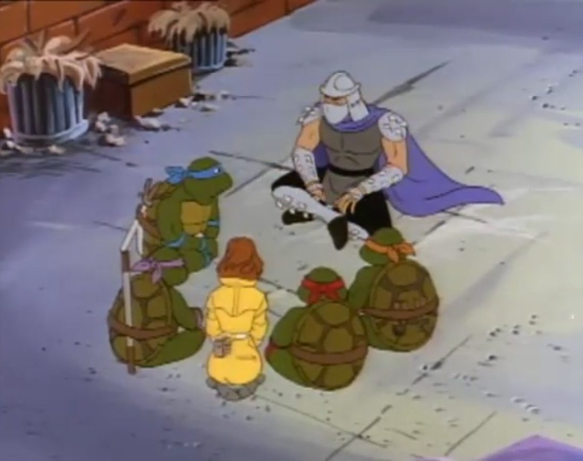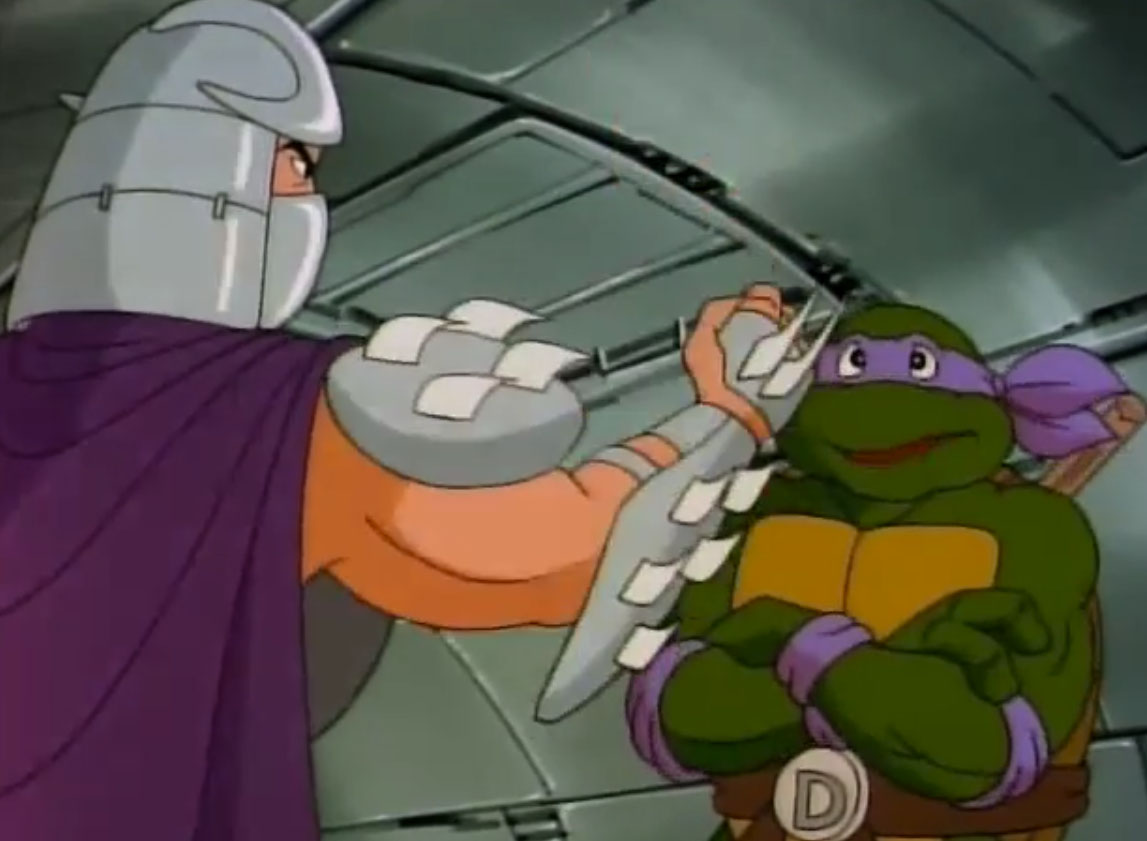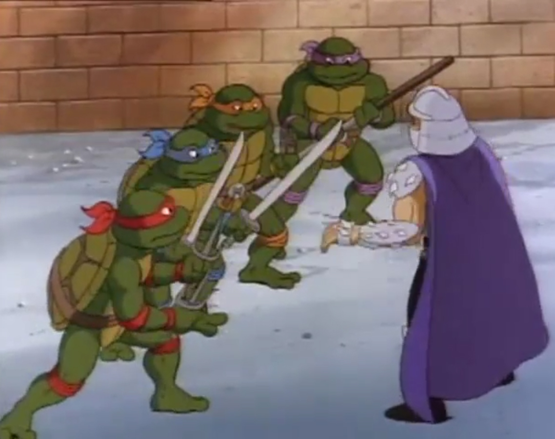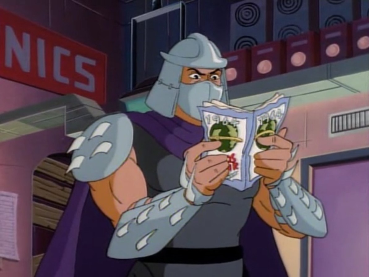 Nombreuses furent les tentatives de Shredder de vaincre les tortues. Il essaya même de réécrire l’histoire en se rendant au XVIe siècle pour changer la fondation de son clan (La légende de Koji, S7 E3).