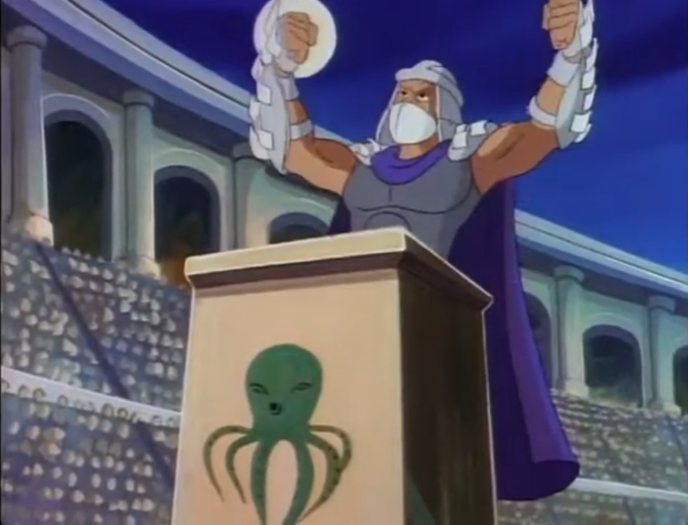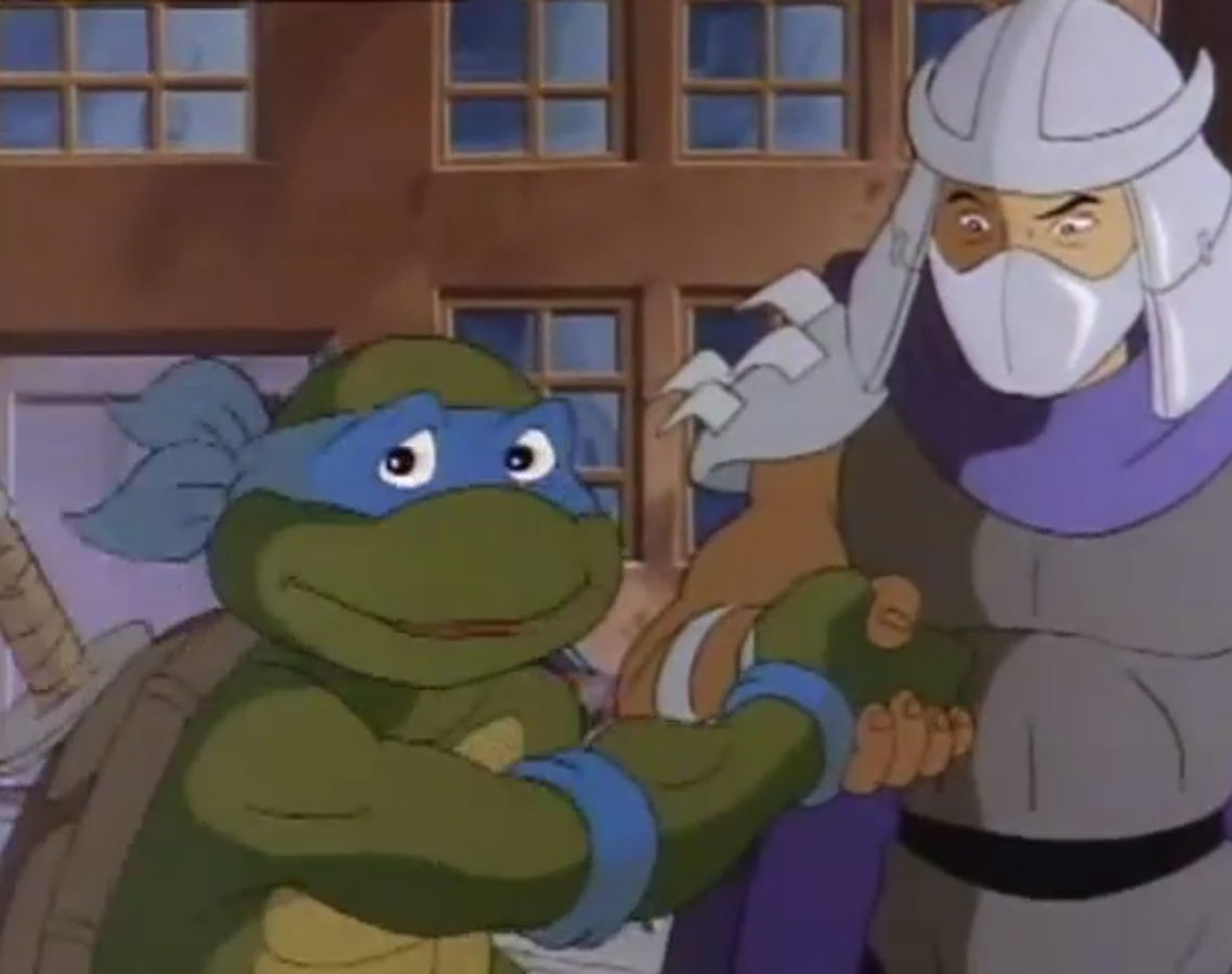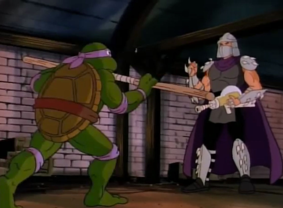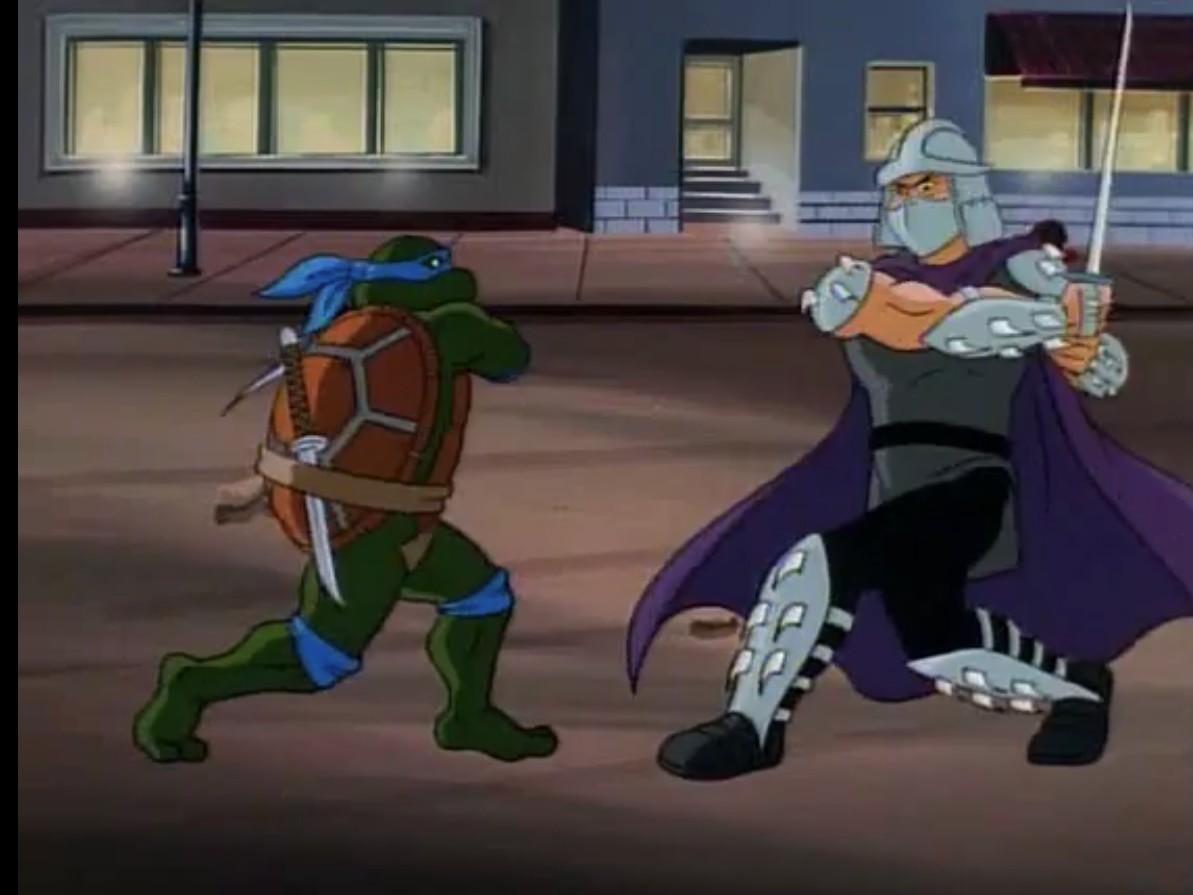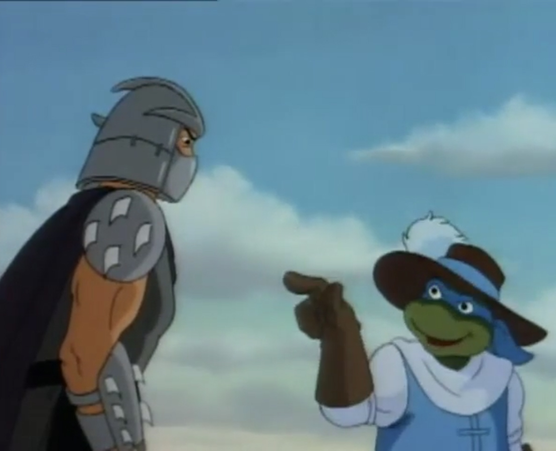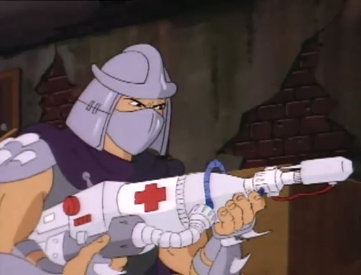 Nombreuses furent les tentatives de Shredder de vaincre les tortues. Il essaya même de réécrire l’histoire en se rendant au XVIe siècle pour changer la fondation de son clan (La légende de Koji, S7 E3).