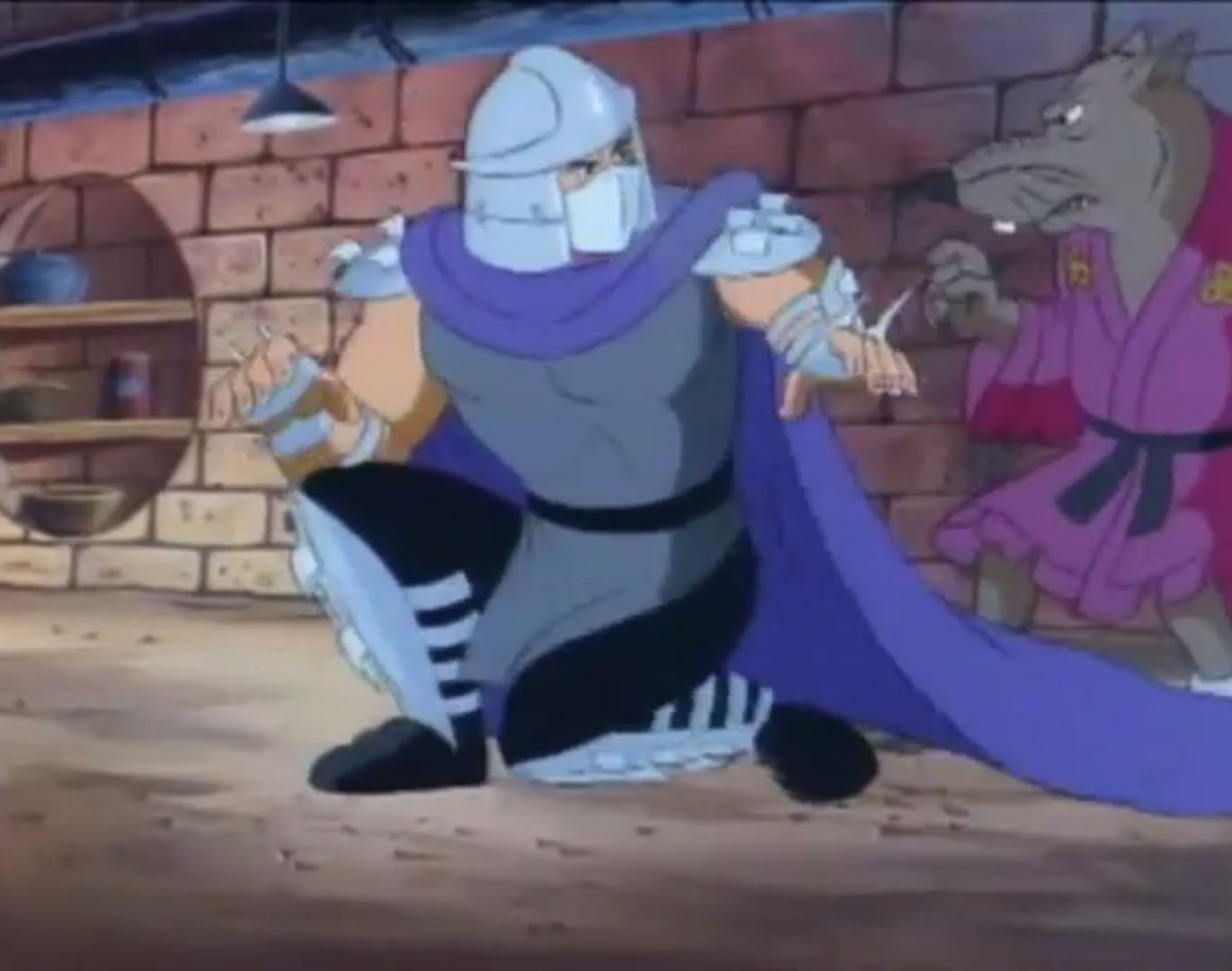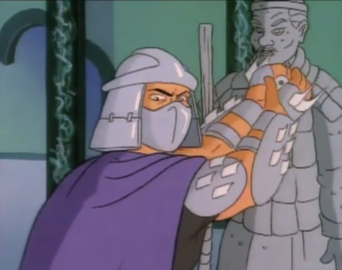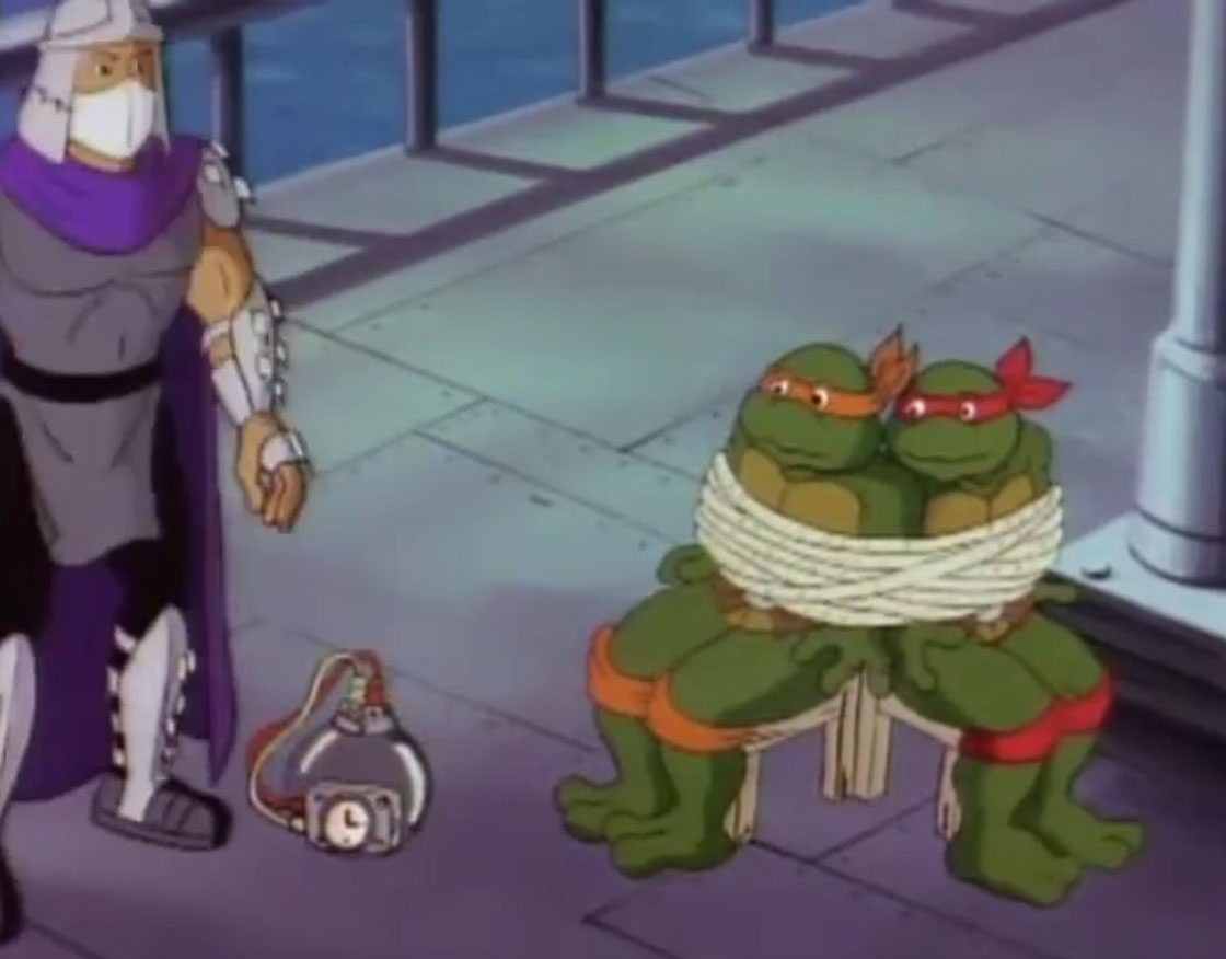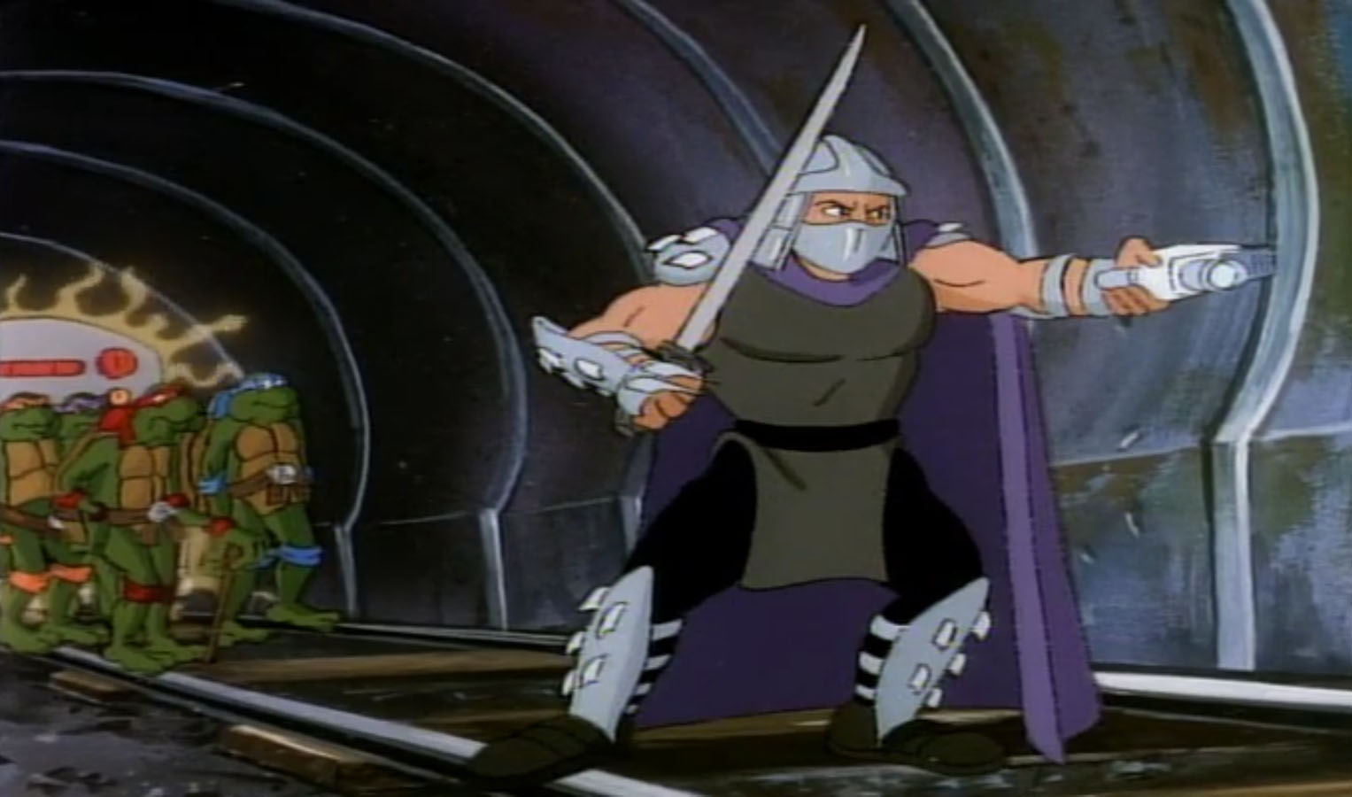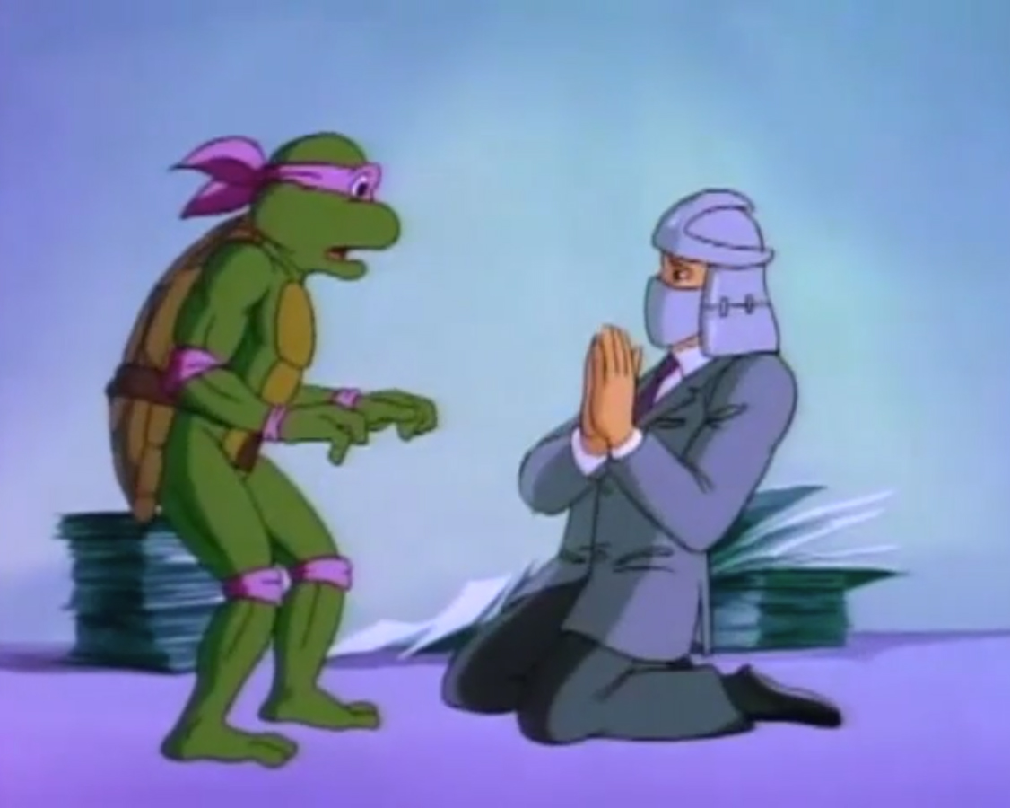 Nombreuses furent les tentatives de Shredder de vaincre les tortues. Il essaya même de réécrire l’histoire en se rendant au XVIe siècle pour changer la fondation de son clan (La légende de Koji, S7 E3).