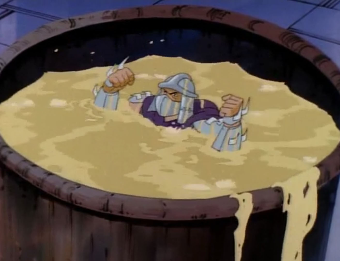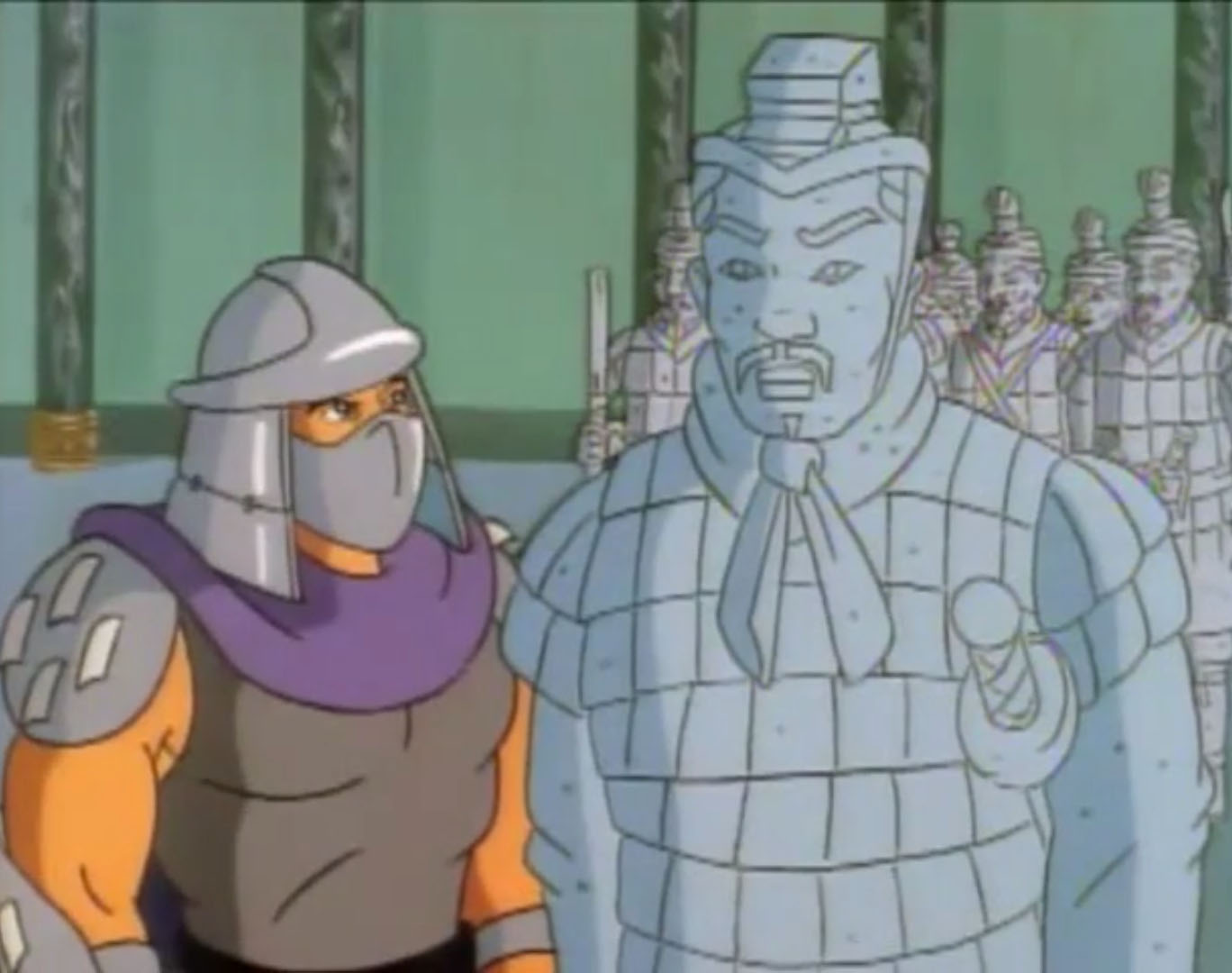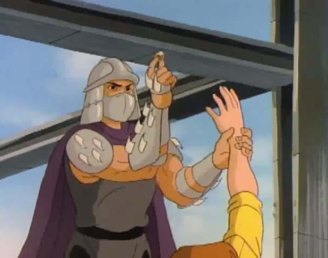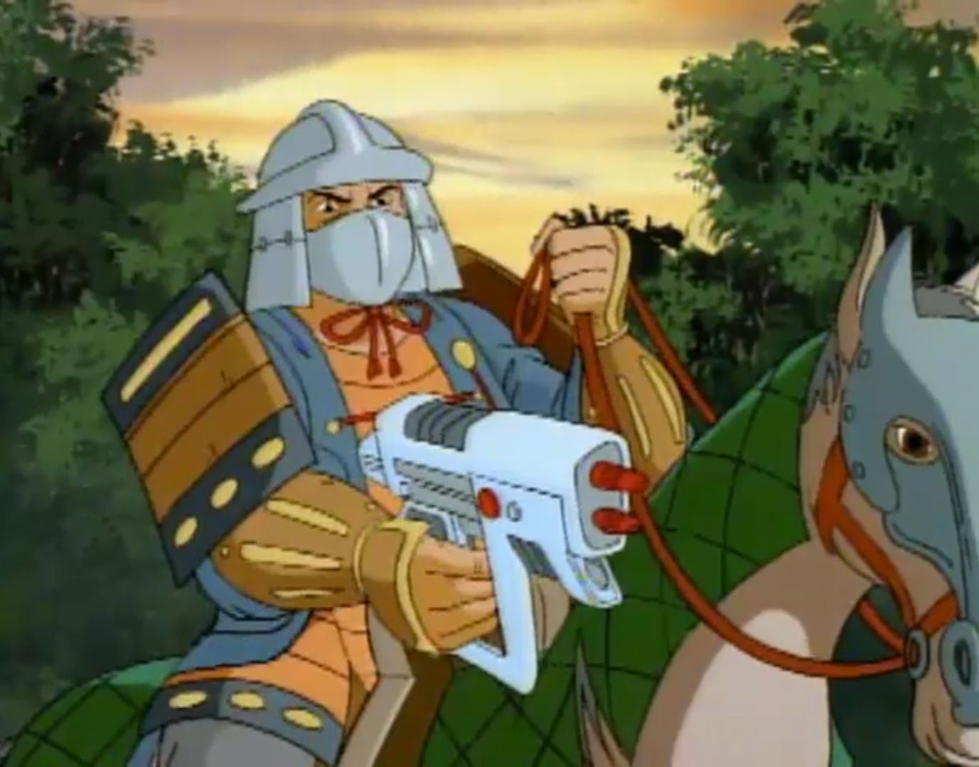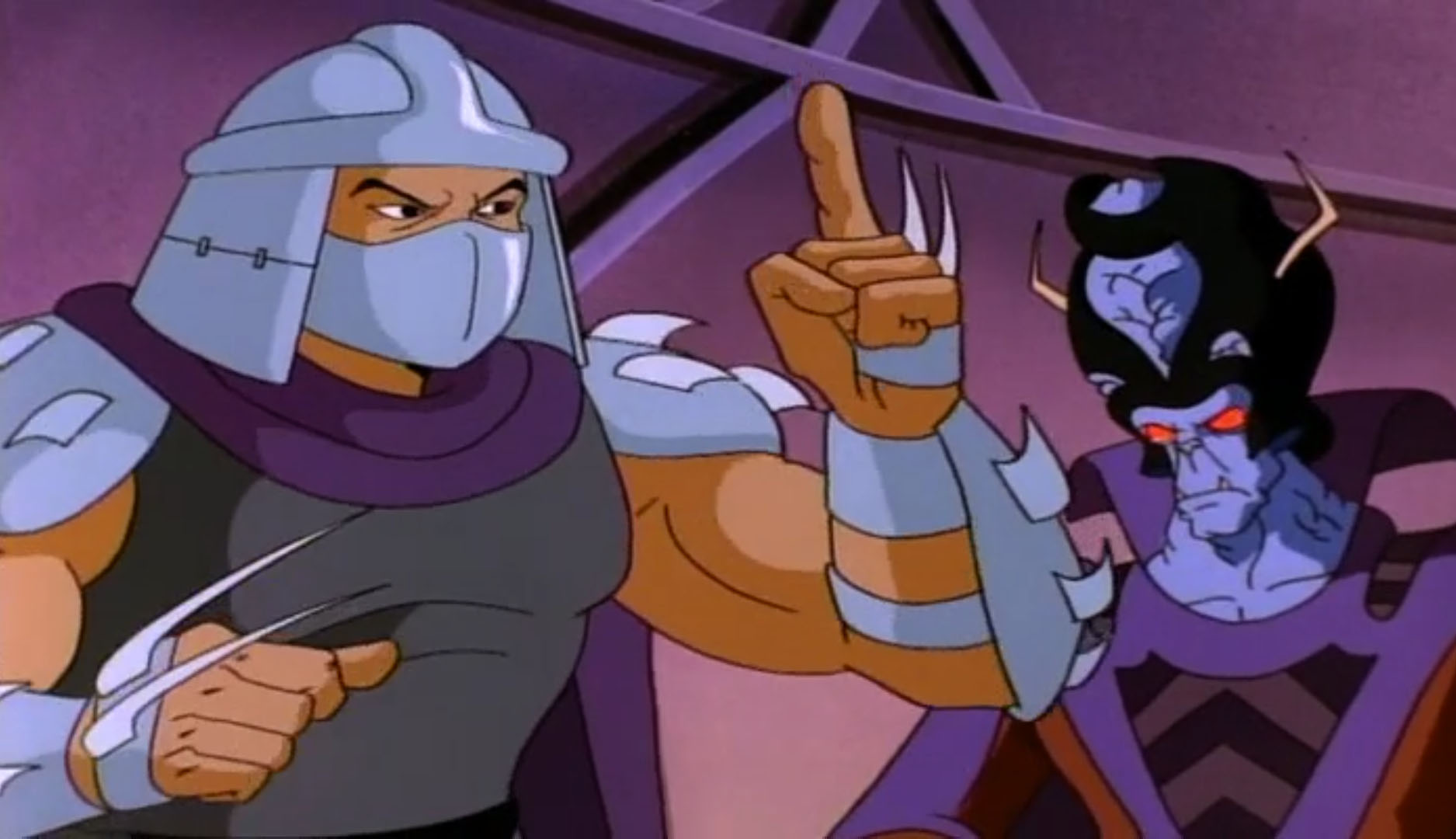 Nombreuses furent les tentatives de Shredder de vaincre les tortues. Il essaya même de réécrire l’histoire en se rendant au XVIe siècle pour changer la fondation de son clan (La légende de Koji, S7 E3).