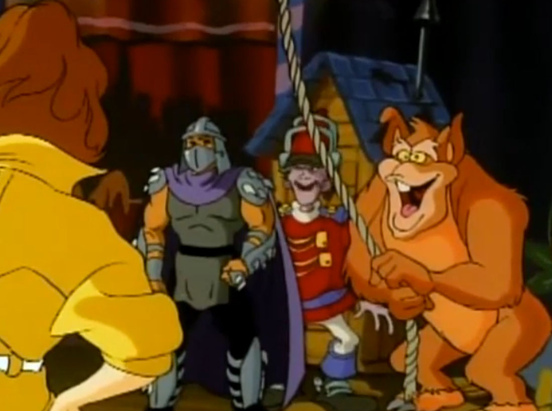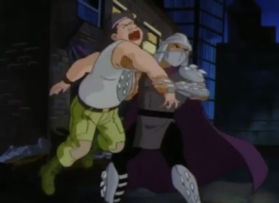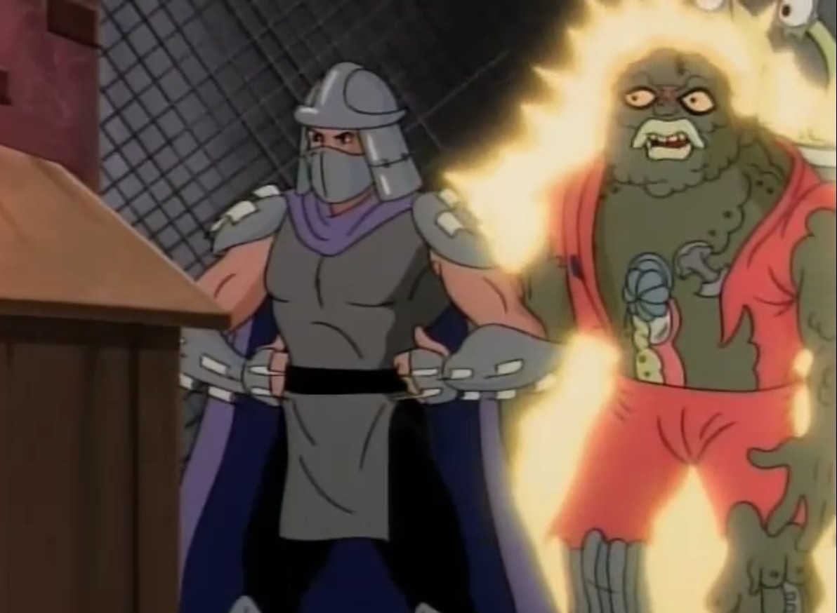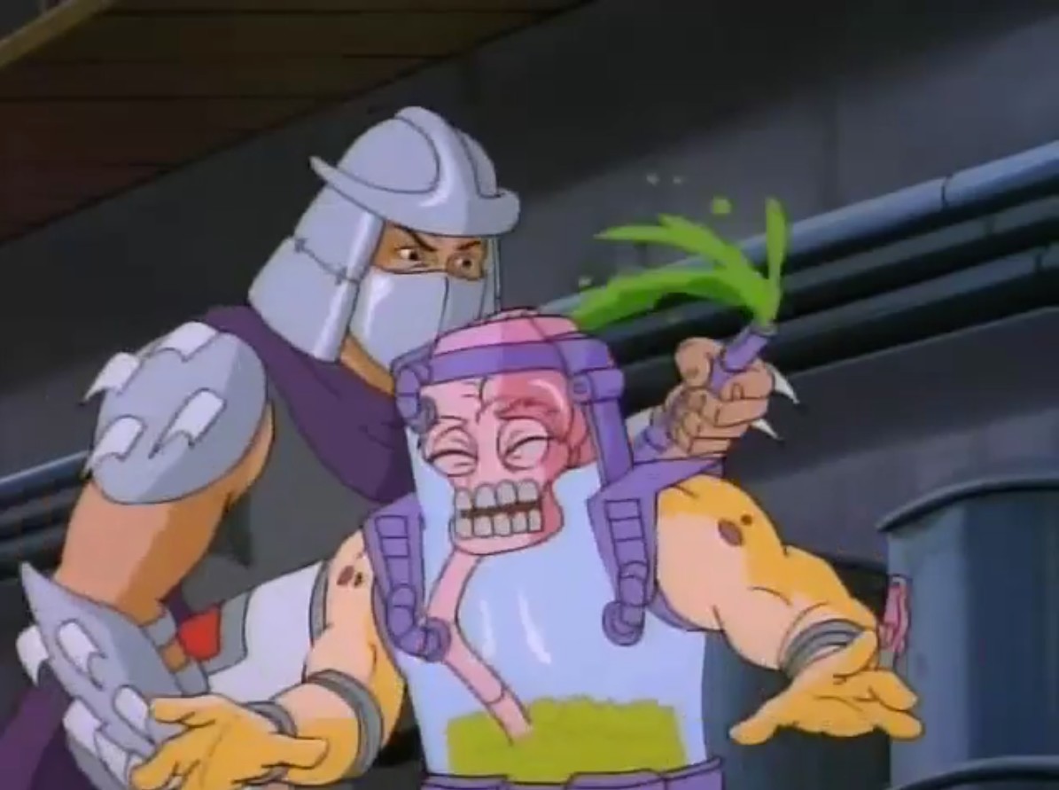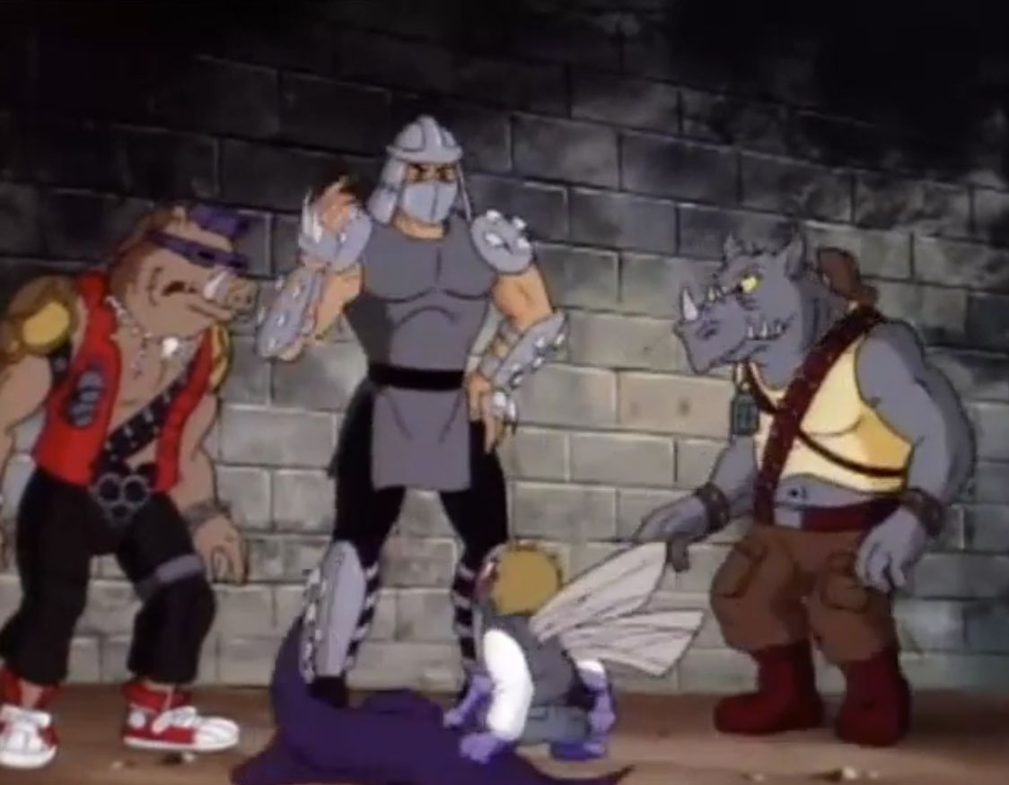 Shredder parvint à capturer Splinter et à s’en servir comme appât pour attirer les tortues. Séduit par leur talent au combat, il leur proposa de le rejoindre, en vain. Face à ce refus, l’homme lança ses deux nouveaux mutants, qui trop stupides, ne parvinrent à rien (À la recherche du Technodrome, S1 E2).