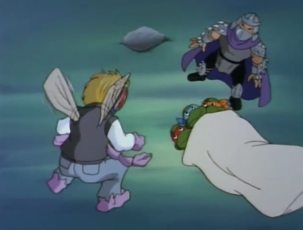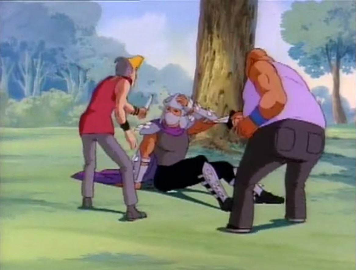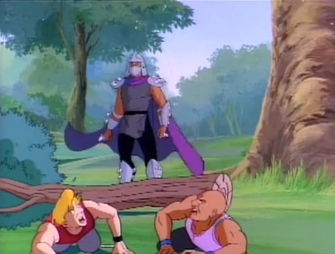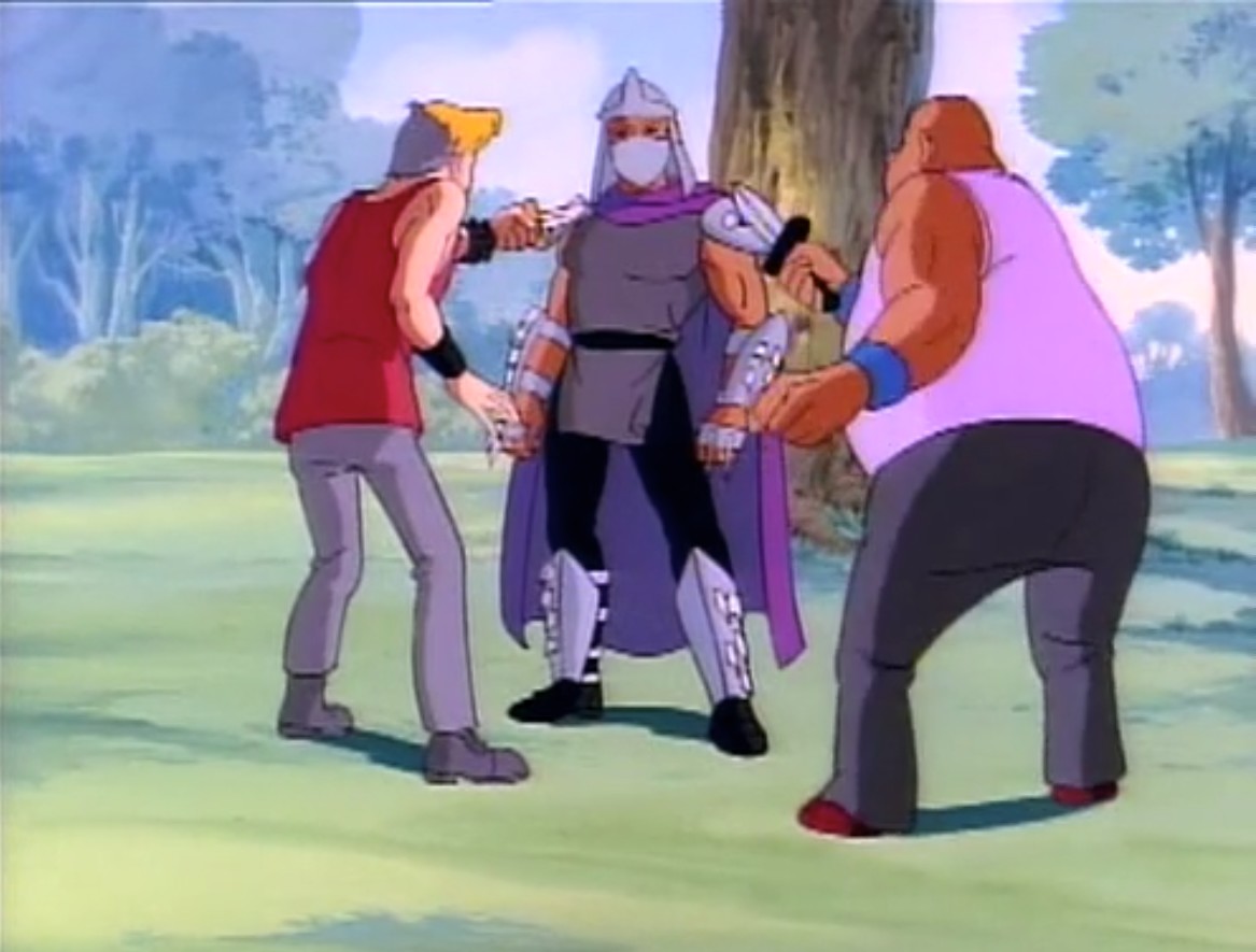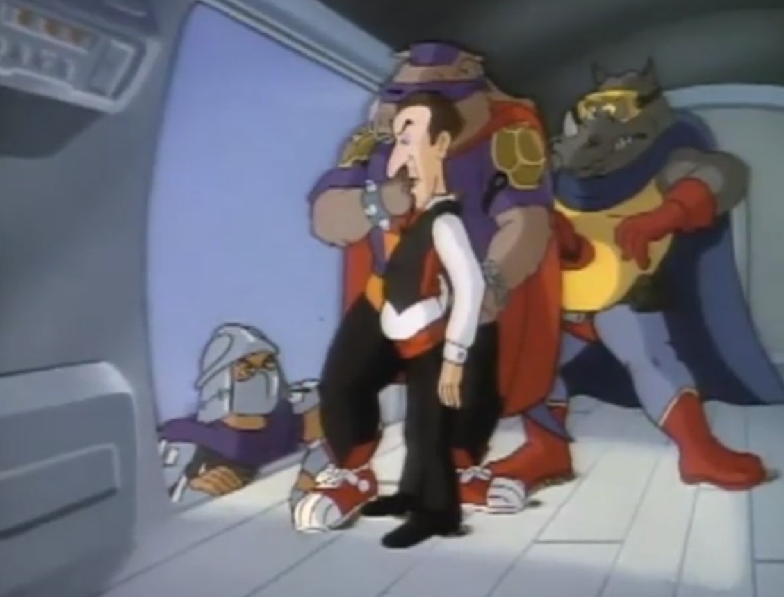 Shredder parvint à capturer Splinter et à s’en servir comme appât pour attirer les tortues. Séduit par leur talent au combat, il leur proposa de le rejoindre, en vain. Face à ce refus, l’homme lança ses deux nouveaux mutants, qui trop stupides, ne parvinrent à rien (À la recherche du Technodrome, S1 E2).