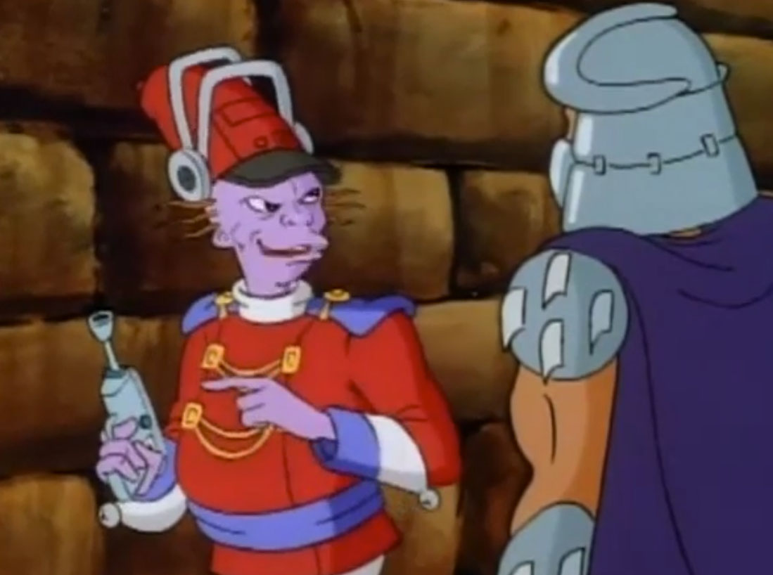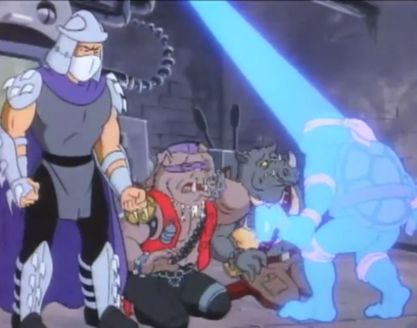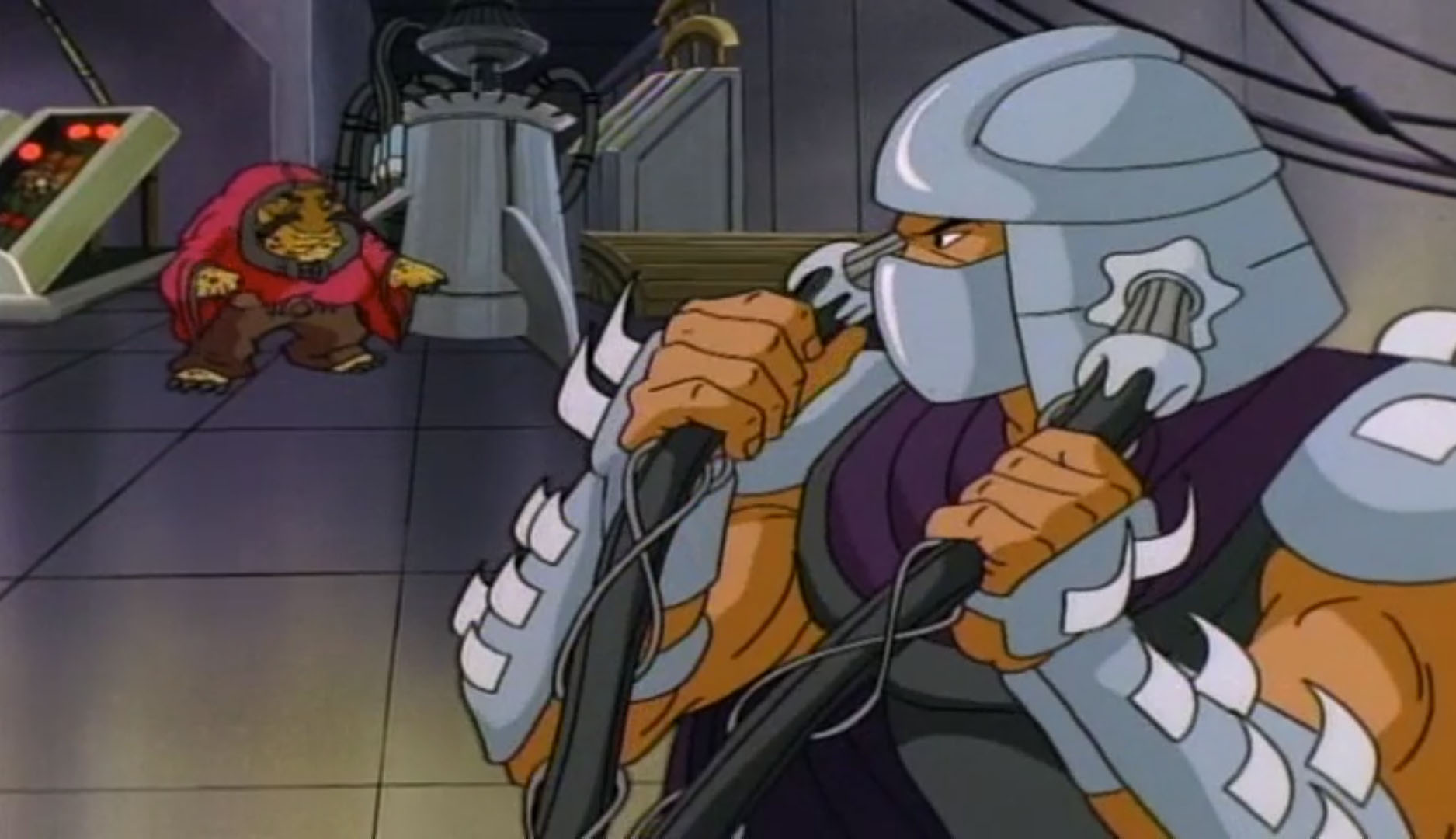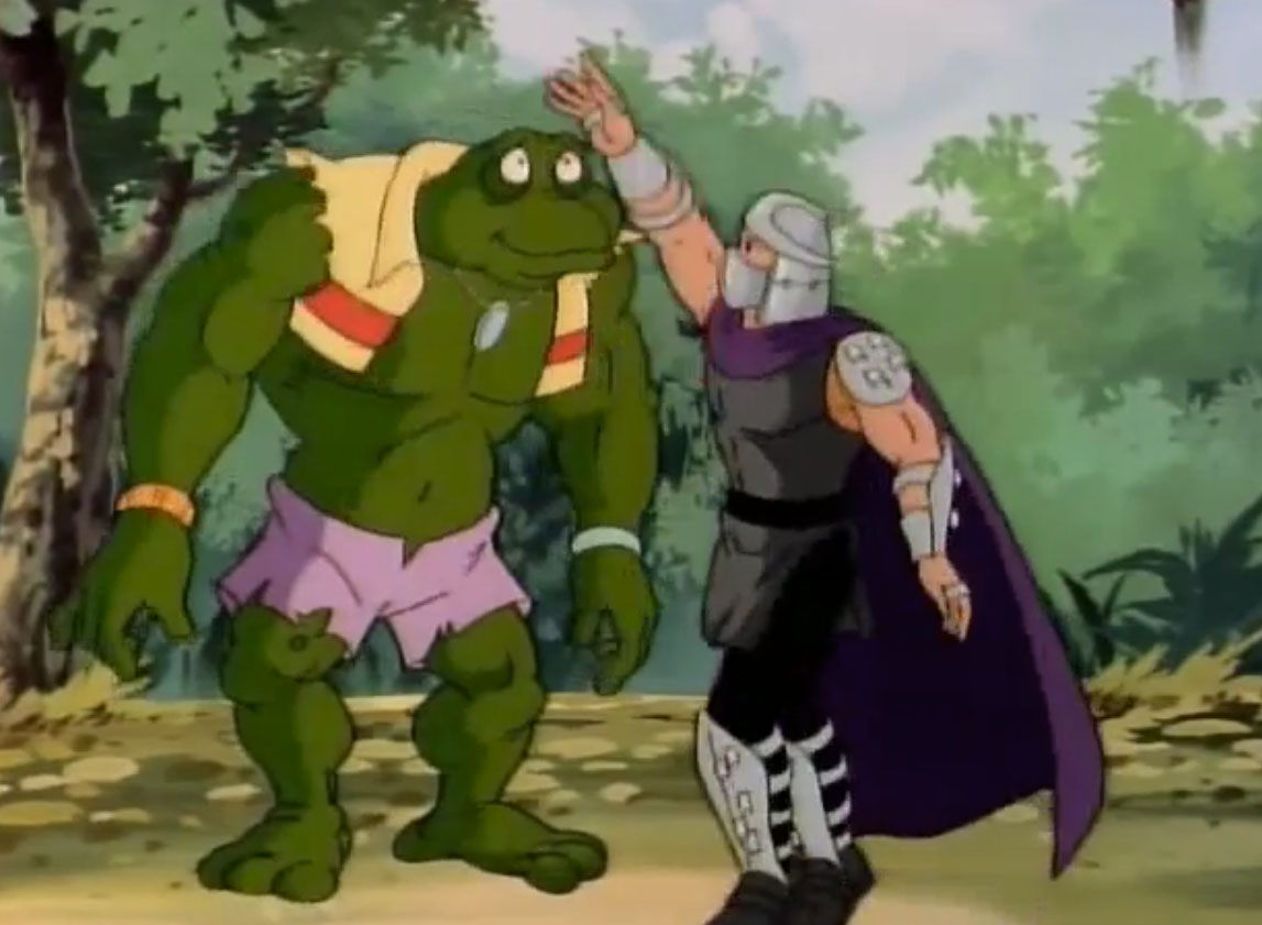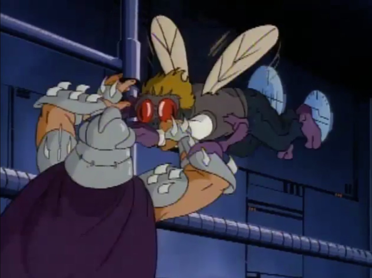Shredder parvint à capturer Splinter et à s’en servir comme appât pour attirer les tortues. Séduit par leur talent au combat, il leur proposa de le rejoindre, en vain. Face à ce refus, l’homme lança ses deux nouveaux mutants, qui trop stupides, ne parvinrent à rien (À la recherche du Technodrome, S1 E2).