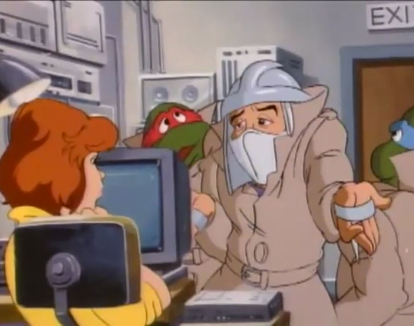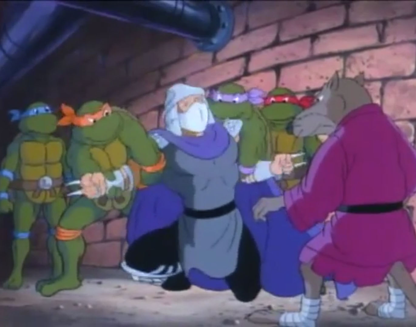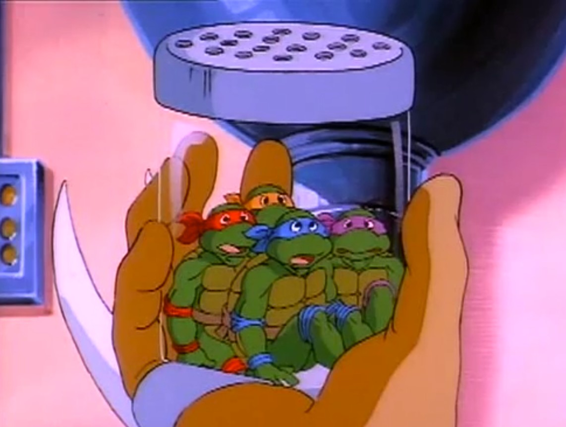 Les tortues partirent avec leur maître, inconscient. À son réveil, elles se rendirent compte qu’il s’agissait en réalité de Shredder, dans le corps de Splinter. Il en allait de même pour le rongeur, qui était pris pour son rival aux yeux de Krang. Finalement, le rongeur parvint à se faire croire de ses élèves et réussirent à intervertir les effets de la machine en reproduisant le combat (Le coup de l’échange, S3 E6).