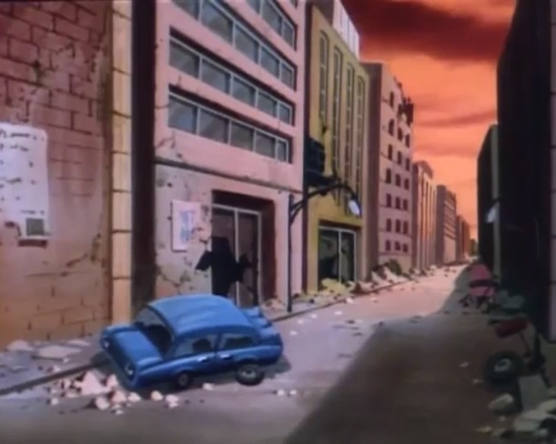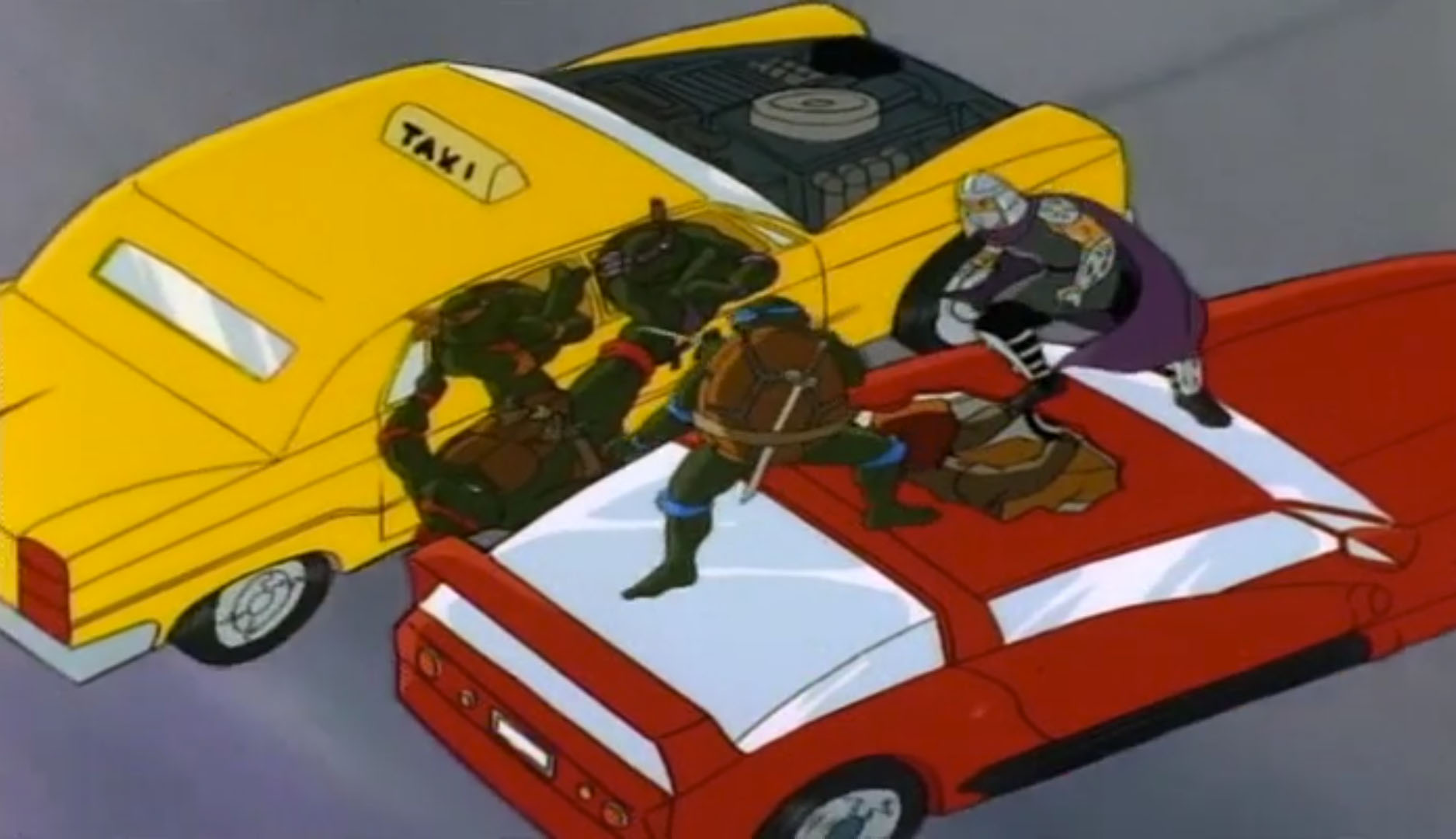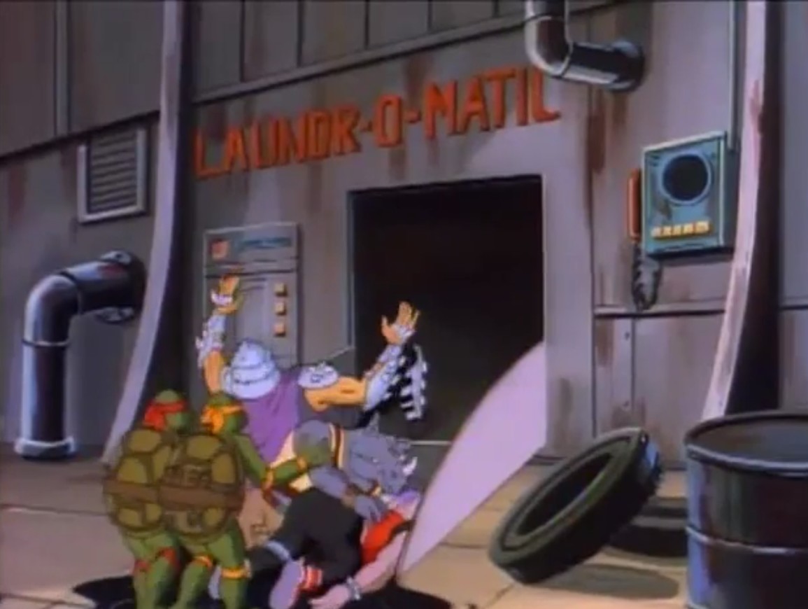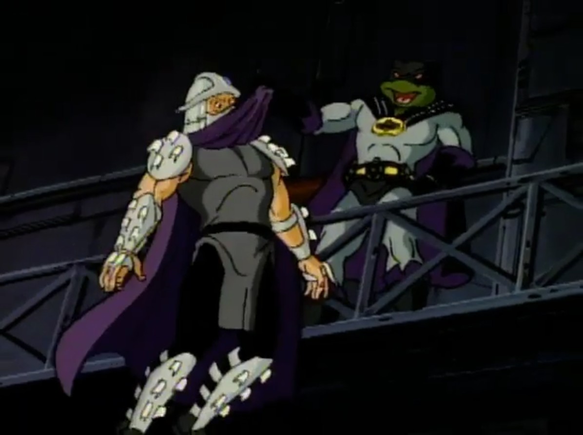 Téléportés sur Terre, Krang et Shredder prirent la fuite, refusant de s’associer à un inconnu et bien décidés à prendre leur revanche sur les tortues. Ils montèrent à bord d’une voiture, conduite ironiquement par April qui eut le temps d’avertir les tortues. Ils furent également pris en chasse par un vaisseau des Bat-men à travers les rues de la ville. Finalement, Dregg les téléporta de nouveau dans son entrepôt.