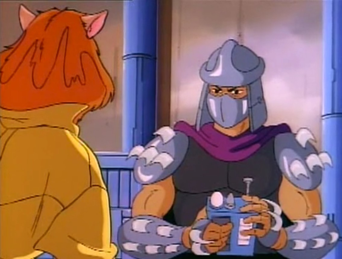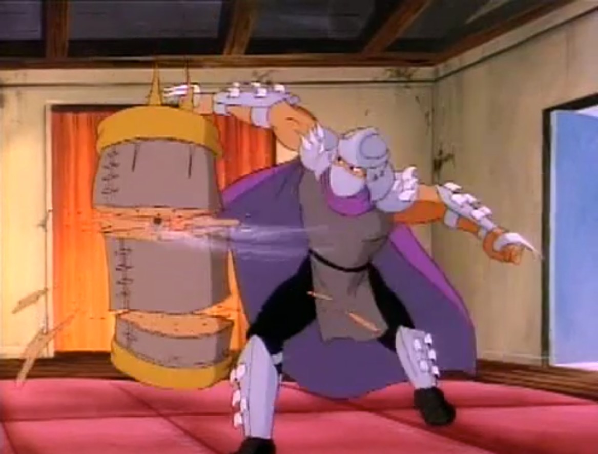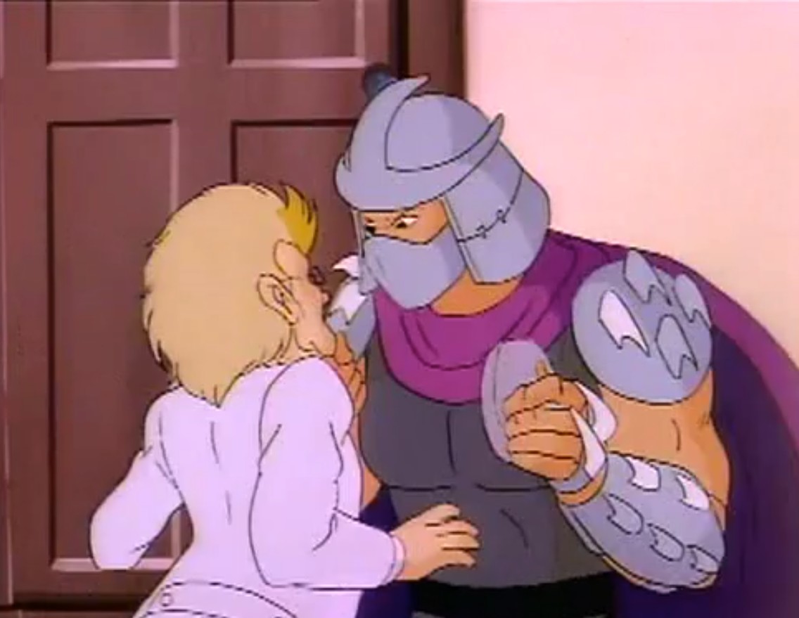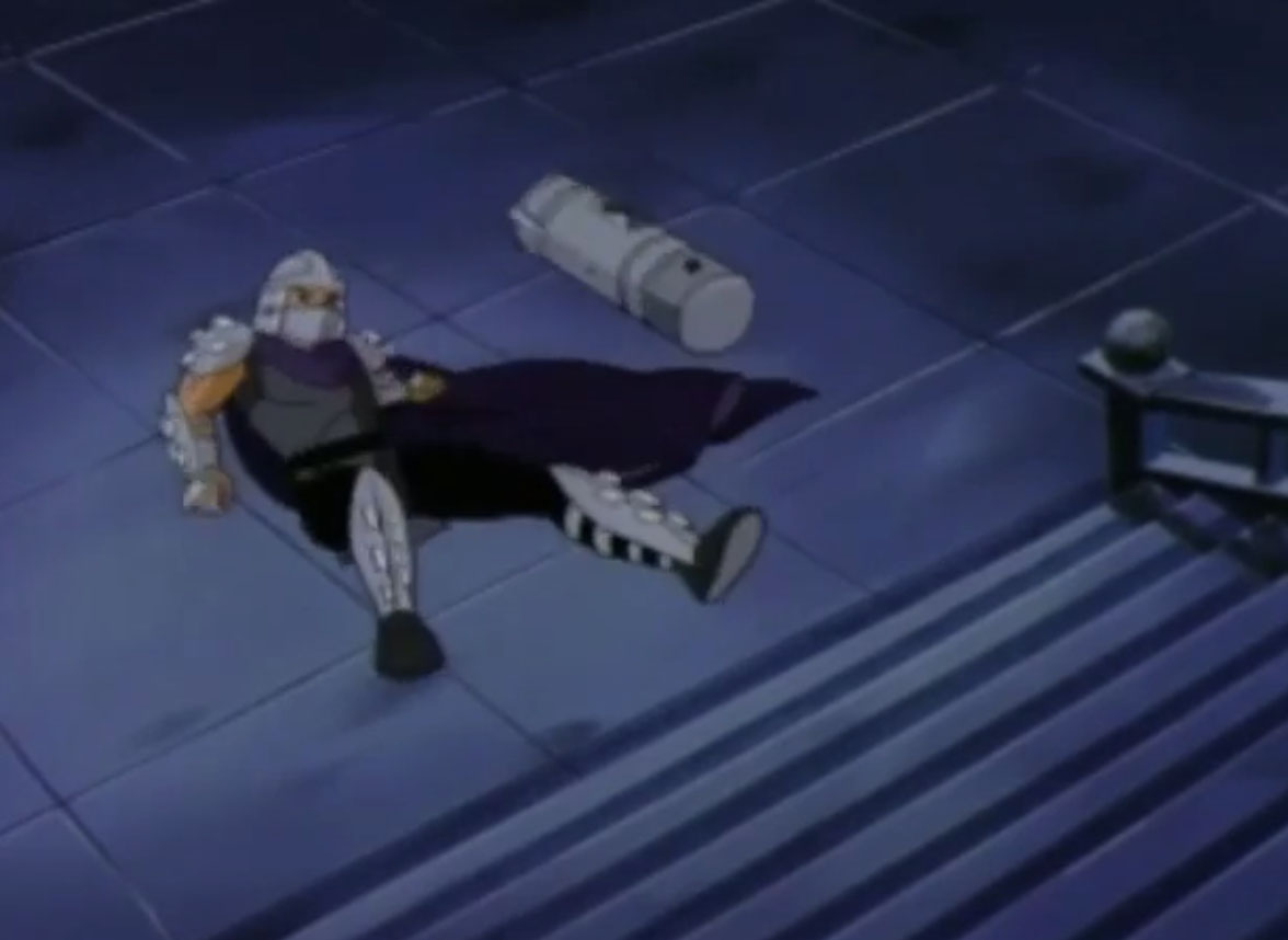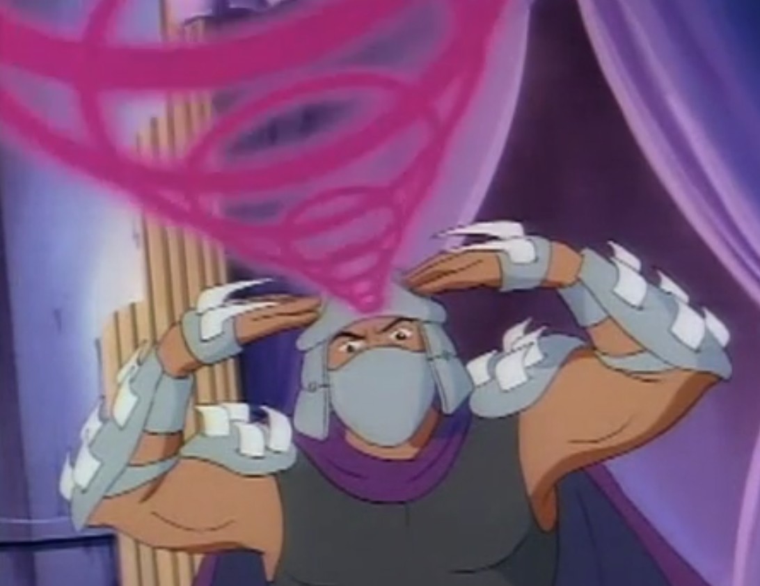 Au cours des épisodes, il arrive de nombreux problèmes à Shredder. Alors qu’il se trouvait dans un entrepôt, les tortues intervinrent pour venir en aide à April. Dans le combat, Splinter et Shredder se retrouvèrent sur le plateau d’une machine qui s’activa et qui intervertit leurs pensées.