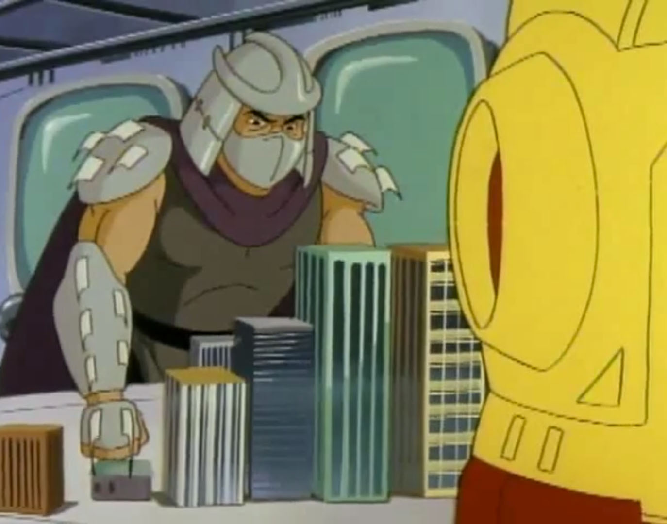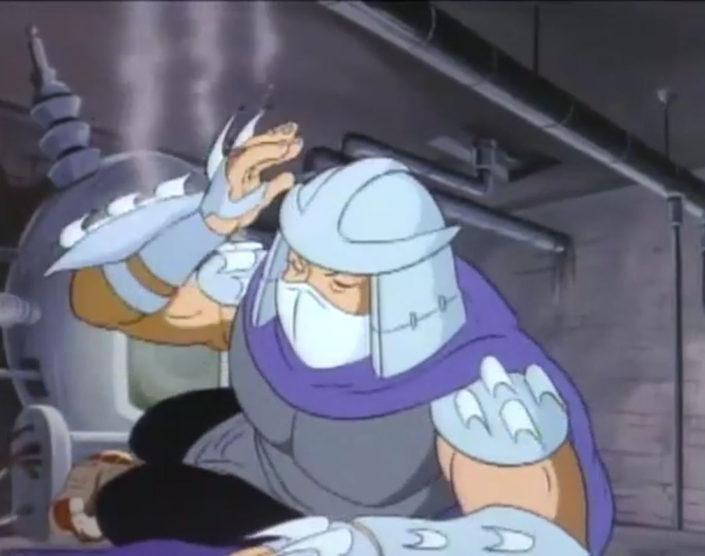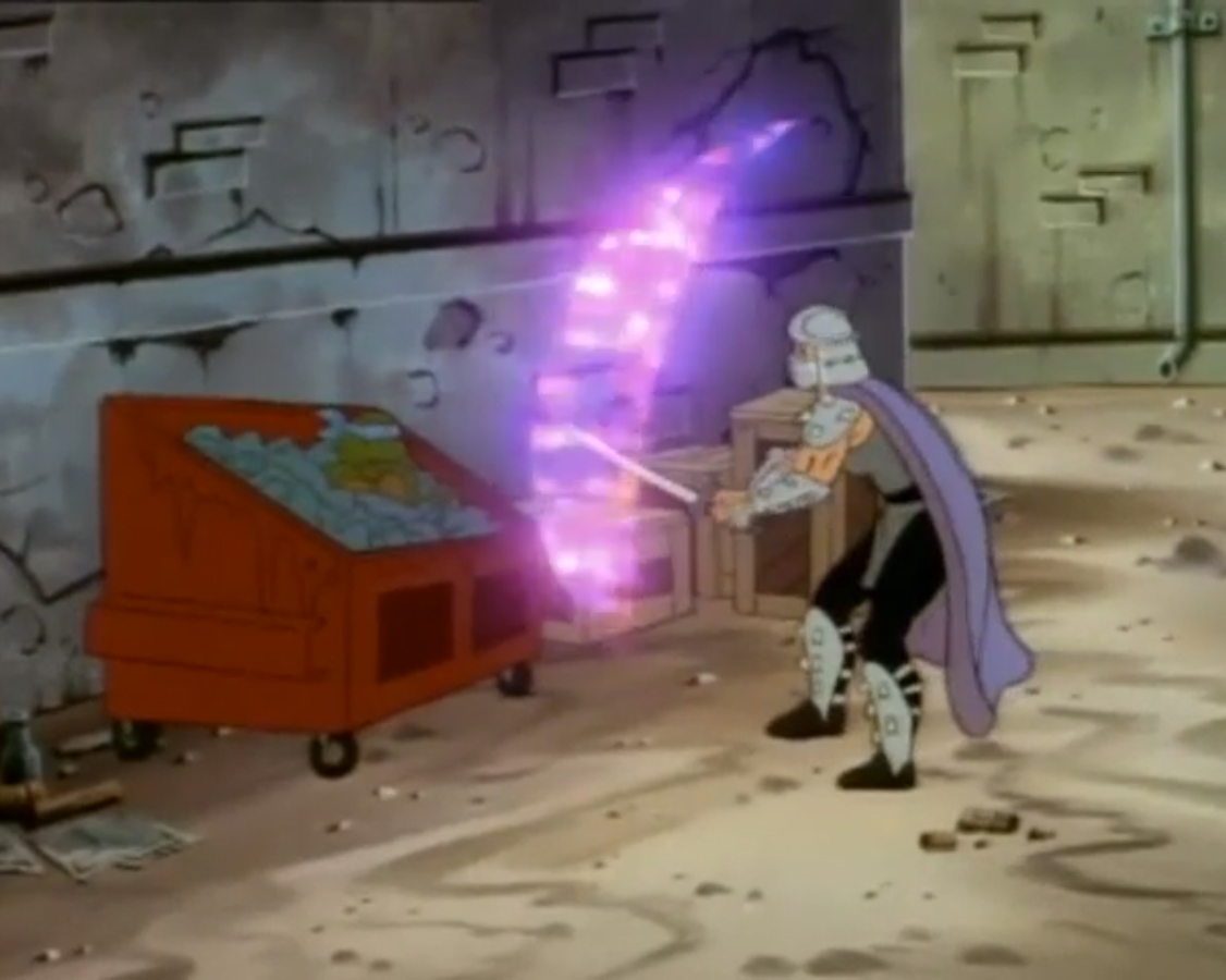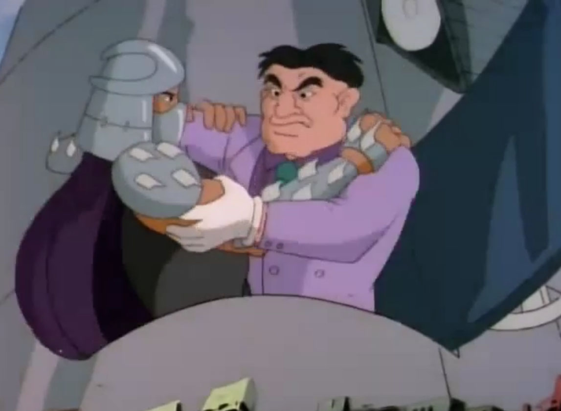 Au cours des épisodes, il arrive de nombreux problèmes à Shredder. Alors qu’il se trouvait dans un entrepôt, les tortues intervinrent pour venir en aide à April. Dans le combat, Splinter et Shredder se retrouvèrent sur le plateau d’une machine qui s’activa et qui intervertit leurs pensées.