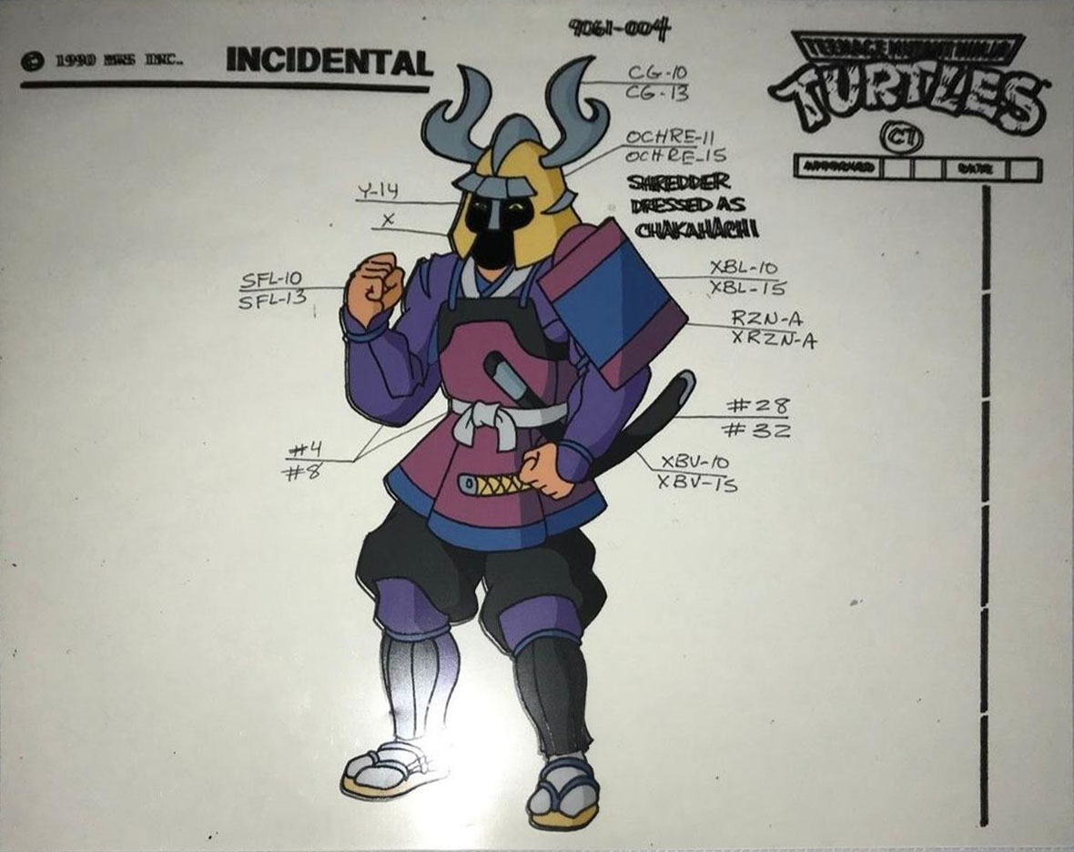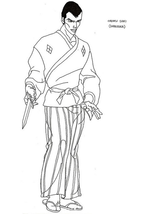 C’est Peter Chung qui s’est occupé du design de Shredder. Il s’agit certainement de celui dont l’apparence a le moins changé avec le personnage du comic (image ci-dessus). Une simple cape lui a été ajoutée pour lui conférer un aspect plus important. Les concept arts proviennent de son Instagram.