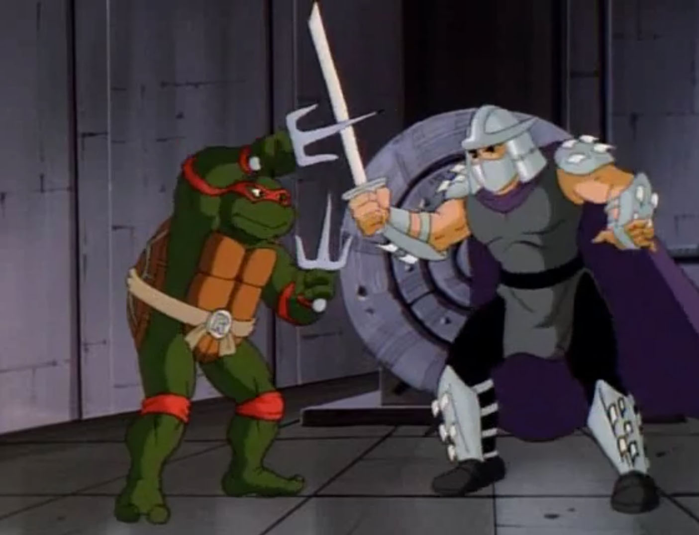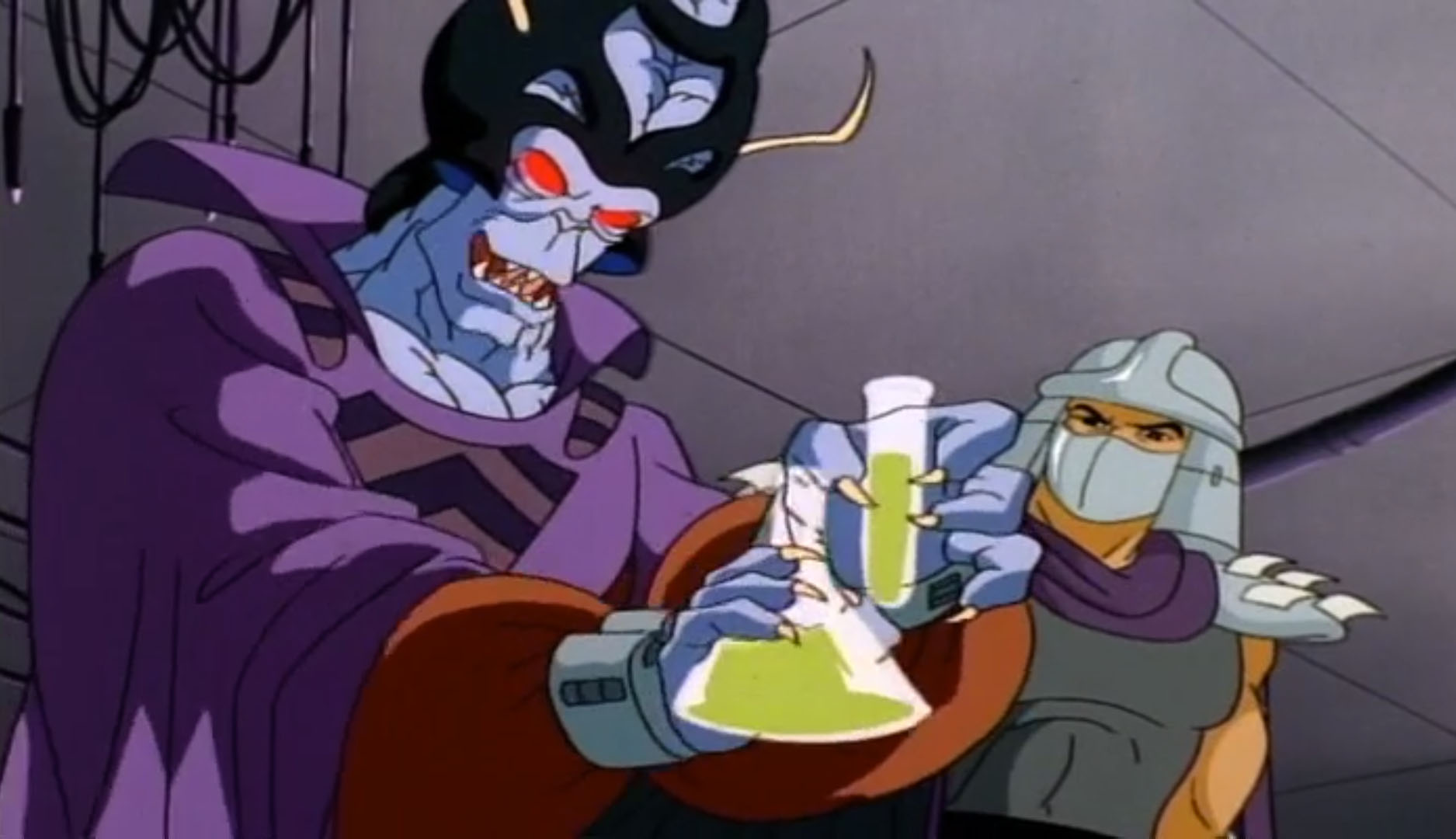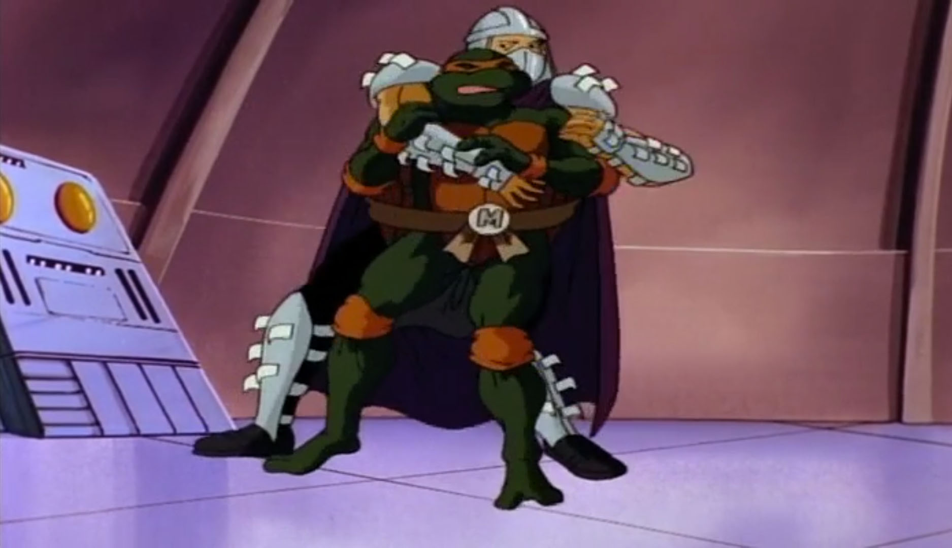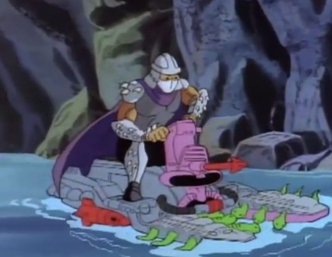 Mais face à la provocation des reptiles, il leur offrit un ultime combat dans la salle des commandes de l’appareil. C’était ce que les ninjas désiraient. Pendant que les frères luttaient contre leur ennemi, le poussant hors du Technodrome, Donatello et Michaelangelo parvinrent à reprogrammer la machine pour ouvrir un portail et quitter la Terre.