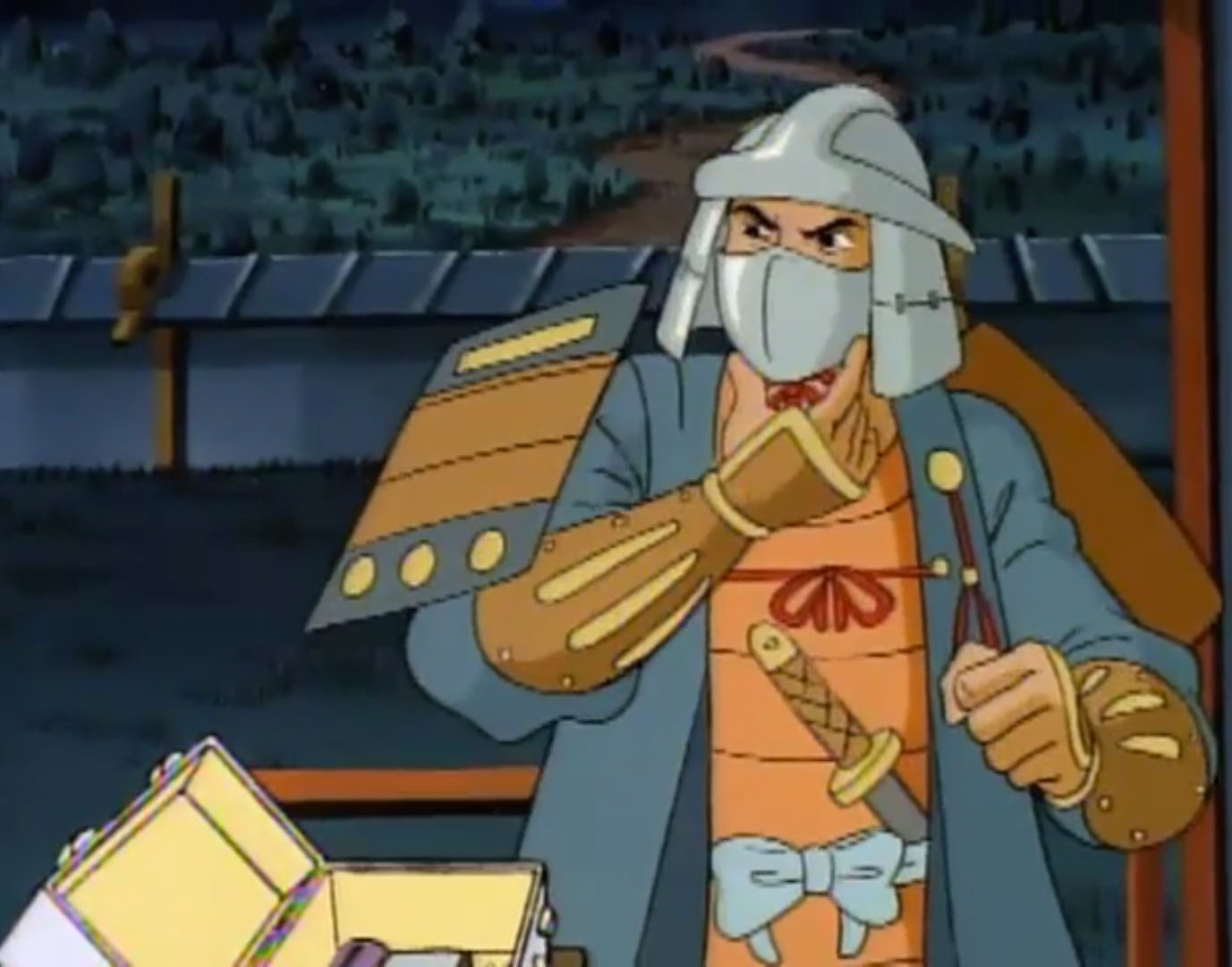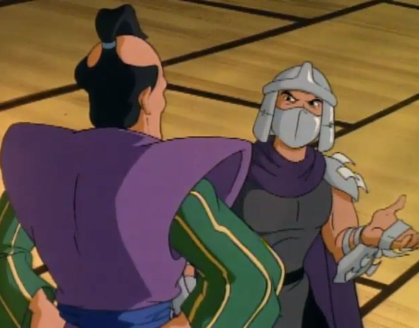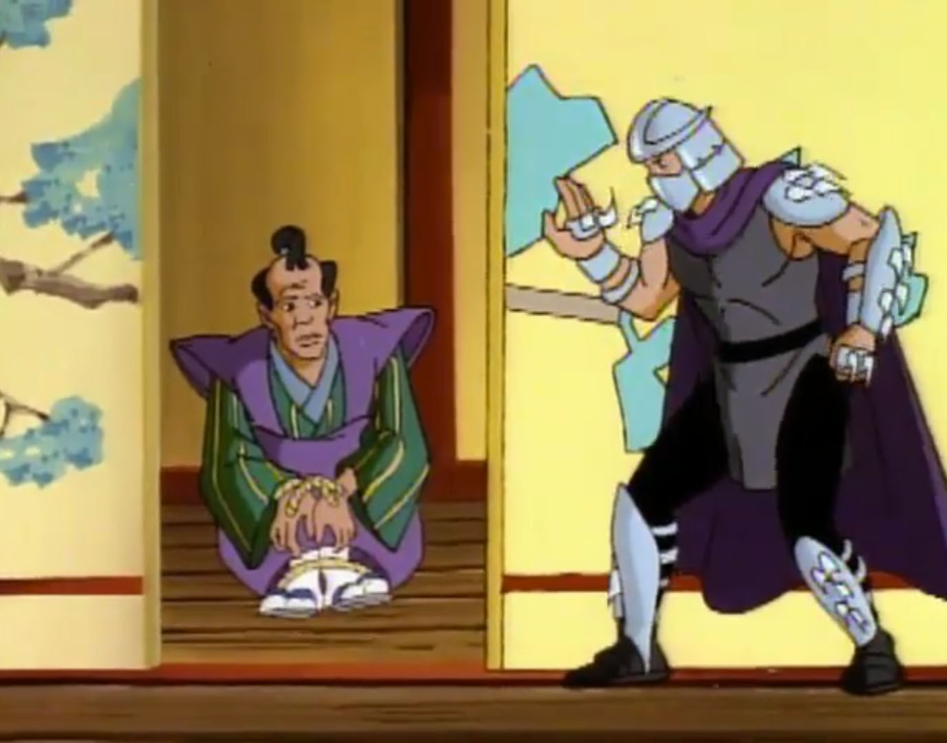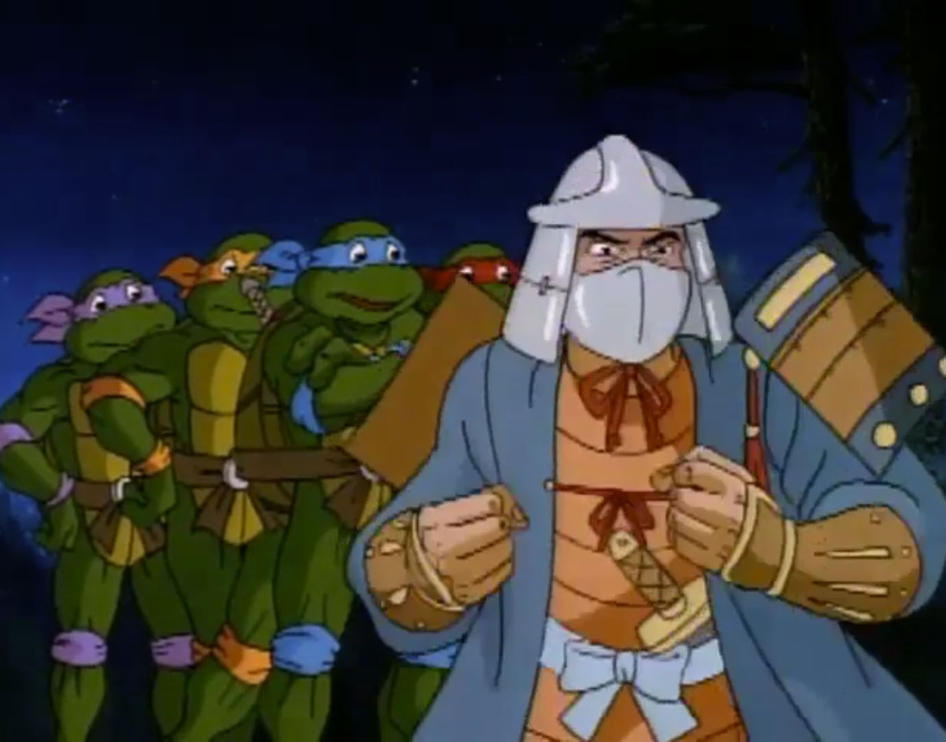 - La légende de Koji (S7 E3) – Les tortues font un voyage dans le temps et rencontrent l’ancêtre de Shredder, Oroku Sancho, vivant en 1583 au Japon. Il fut le chef d’un petit clan. Shredder essaya de s’allier à lui pour retrouver des reliques magiques. Terriblement lâche, Sancho le trahit et tenta de le tuer.