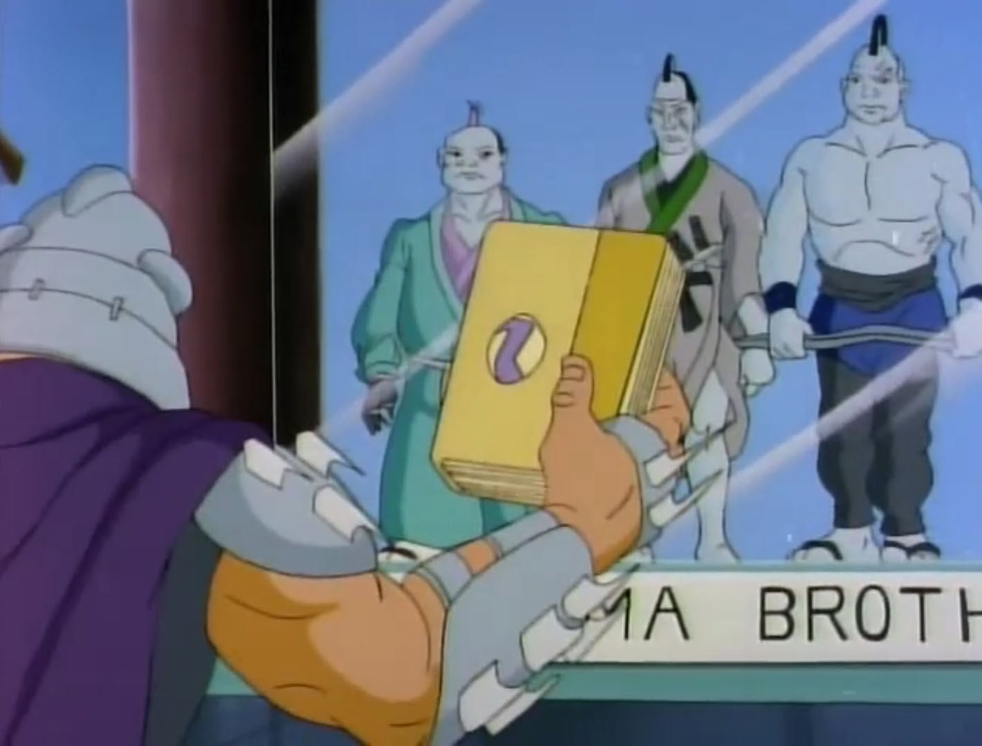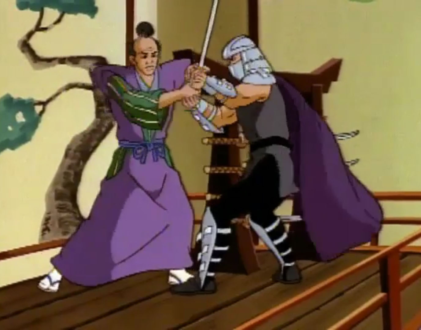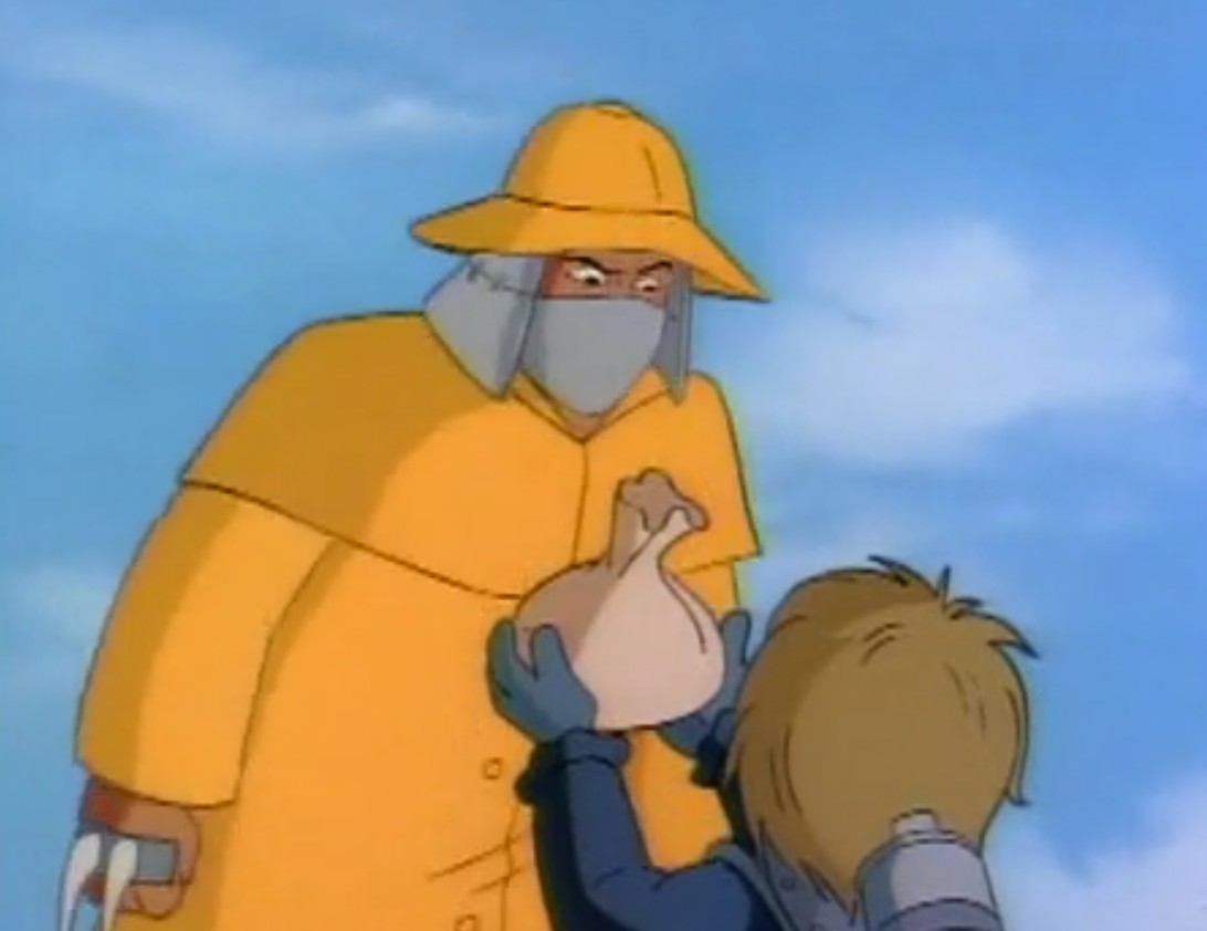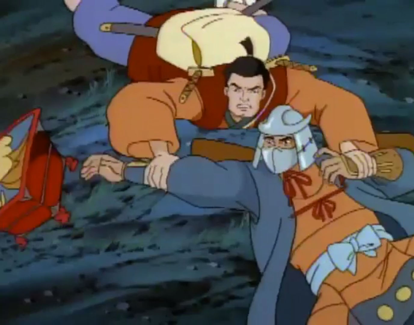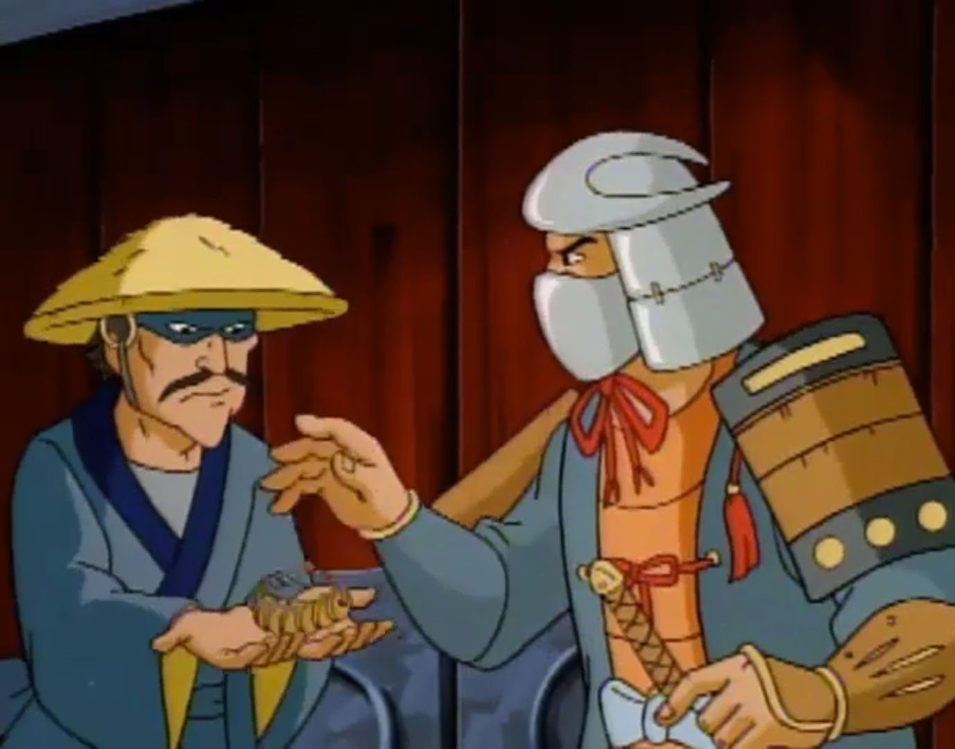 - La légende de Koji (S7 E3) – Les tortues font un voyage dans le temps et rencontrent l’ancêtre de Shredder, Oroku Sancho, vivant en 1583 au Japon. Il fut le chef d’un petit clan. Shredder essaya de s’allier à lui pour retrouver des reliques magiques. Terriblement lâche, Sancho le trahit et tenta de le tuer.
