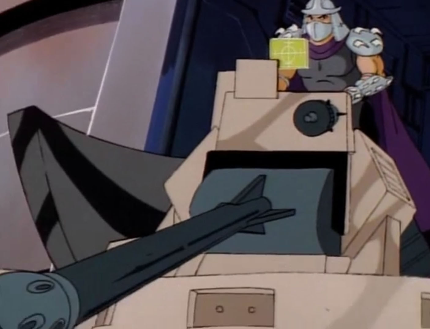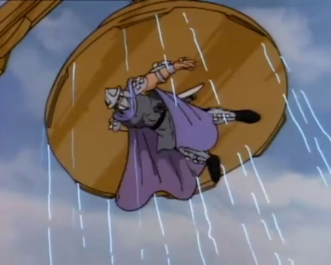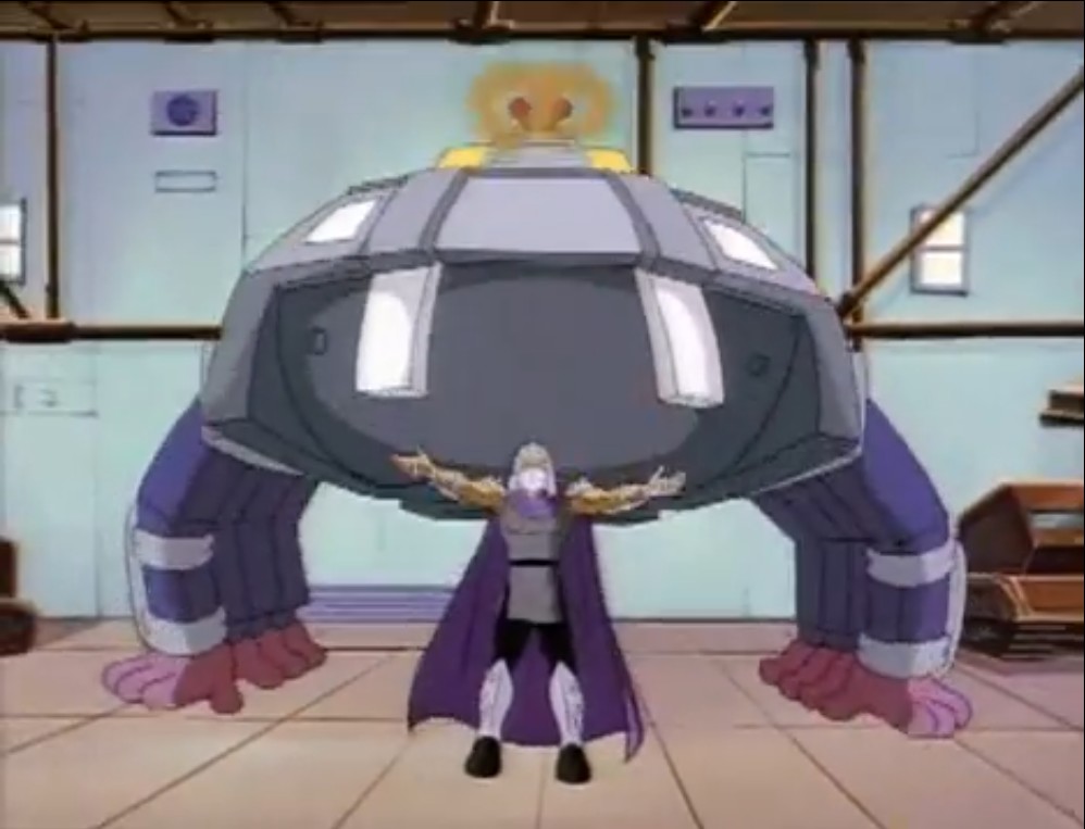 De retour à la surface de la Terre, Shredder n’avait qu’une hâte, se venger des tortues. Mais avant cela, il dut patienter et voir les plans de Krang se réaliser. L’extraterrestre avait mis au point une aile volante qui possédait un rayon réducteur de taille. Il l’envoya neutraliser les bases militaires alentour. Mais les tortues retournèrent le rayon contre le Technodrome, qui devint de la taille d’une balle de pétanque (Le grand retour, S3 E46).