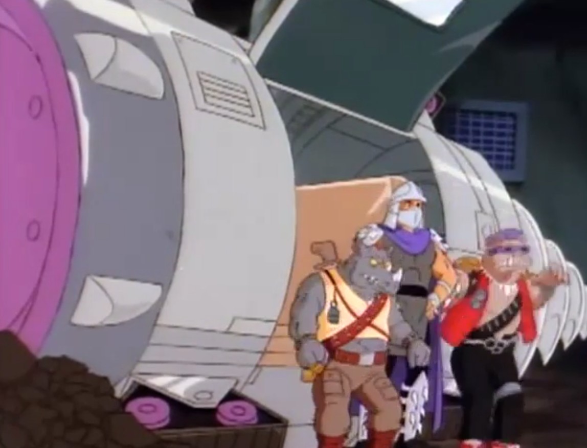 Après la défaite de Krang et l’enfouissement du Technodrome au centre de la Terre, Shredder n’eut de cesses de chercher des moyens d’alimenter les batteries de la machine afin qu’elle revienne à la surface. Tous ses plans furent déjoués par les tortues. Ce sont finalement Bebop et Rocksteady qui parvinrent à dérober des missiles nucléaires dont la puissance permettait à la sphère de combat de sortir de son écrin de roche (Des voleurs plein d’énergie, S3 E45).