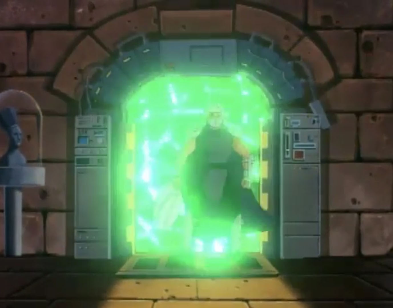 Finalement, Dregg parvint à réparer sa machine et commença à envoyer des fragments du soleil sur les grandes capitales de la Terre avant de faire chanter les Nations Unies. Les hauts responsables ne voulurent pas l’entendre. En réalité, Donatello avait trafiqué son simulateur pour lui faire croire que son plan avait abouti. Au même moment, les tortues du passé arrivèrent pour venir en aide à leurs amis. Dans la bataille, Dregg fut renvoyé avec son armée, mais l’entrepôt menaçait d’exploser. Shredder et Krang prirent la fuite (Double jeu, S10 E5).