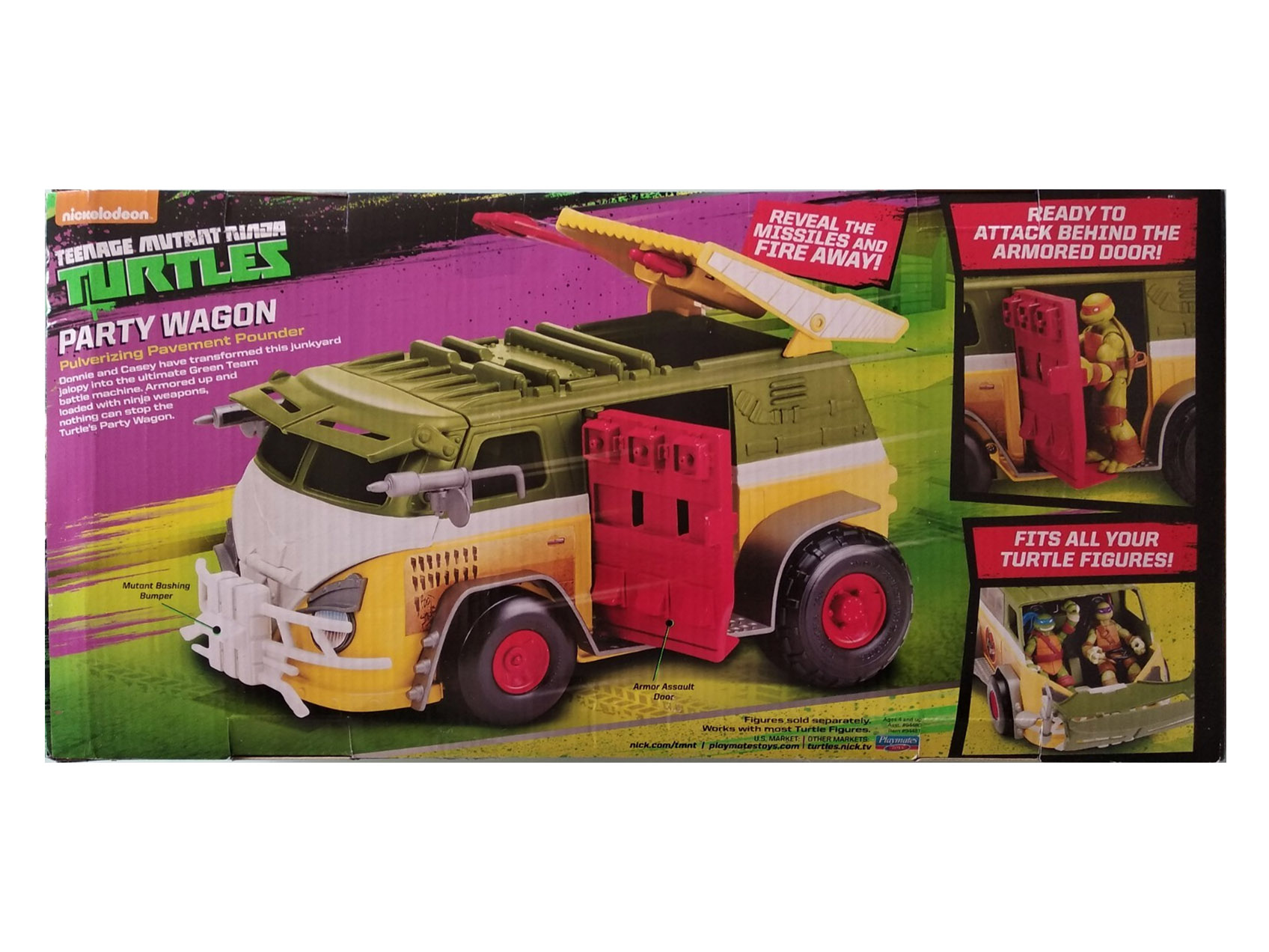 Le Party wagon est le nouveau véhicule vedette des Tortues Ninja. Apparu dans la troisième saison, il reprend les traits du mythique Turtle van du dessin animé de 1987, ou plus spécifiquement son jouet, sorti en 1988.