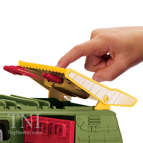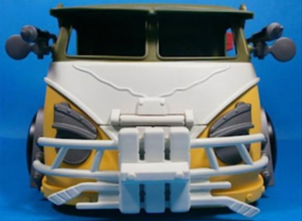 Le véhicule possède plusieurs actions comme la porte latérale gauche et les portes arrières qui s’ouvrent, les roues qui sont mobiles et les lasers qui peuvent s’abaisser. L’aileron jaune peut se soulever pour laisser apparaître un lance missiles. Le cockpit peut s’ouvrir pour placer les figurines à l’intérieur. Le haut-vent n’est pas articulé !