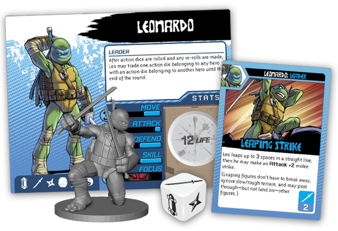 Dans la boîte All Hero pack (90$), l’adhérent gagnera la figurine d’April O’Neil ainsi que ses cartes héros et de compétences et les dés qui se rapportent au personnage.