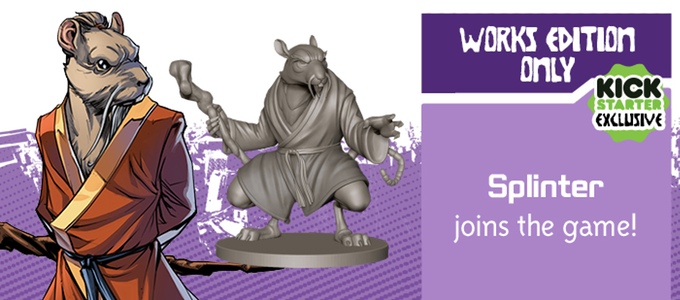 En quatre jours, les différents personnages exclusifs à la campagne furent débloqués. Le 7 février, Kickstarter annonça la figurine qui suivrait les Foot bruisers: Splinter. Si sa figurine, comme les suivantes, sont prévues dans l’avenir en tant qu’extensions du jeu, et donc trouvables tôt ou tard en boutique, la sculpture de celles-ci est quant à elle exclusive à la campagne. Toutefois, Splinter n’est destiné qu’aux acheteurs du pack The works.