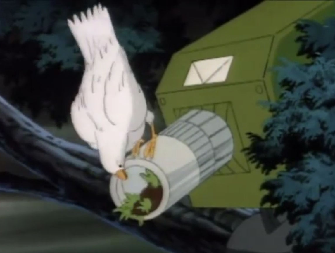 Caractéristiques : Pigeon recueilli par Michaelangelo.
