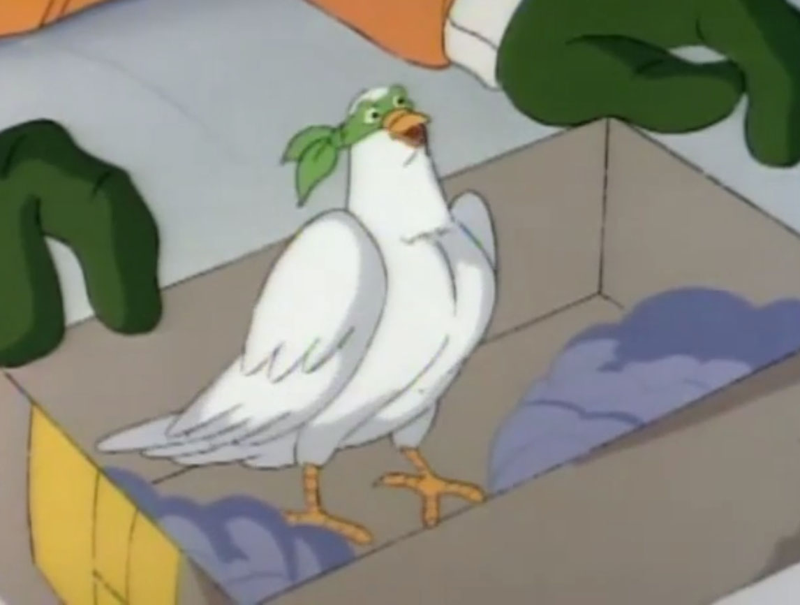 Pete (PeterVF) était un pigeon recueilli par Michaelangelo après l’avoir retrouvé avec l’aile cassée. La tortue s’était liée d’amitié avec l’oiseau, qu’il disait comprendre à la perfection. Il faisait régulièrement suivre Pete par le Dr. Jane Goodfellow, une soigneuse du zoo de New York qui se montrait très sceptique quant aux discussions de Michaelangelo et de son pigeon.