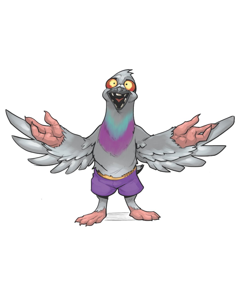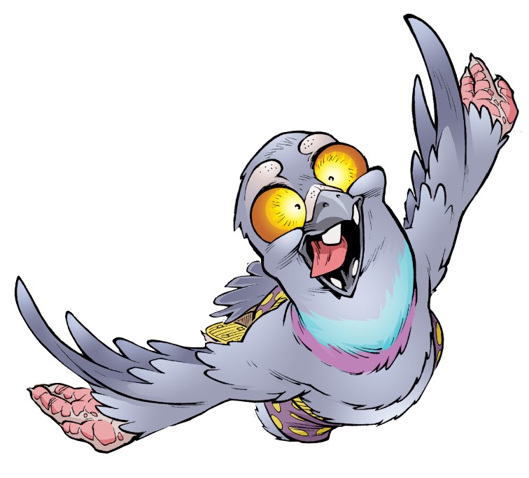 Le pigeon épaula Sally Pride lors des opérations des Mutanimals, principalement à bord du vaisseau de l’équipe. Après la transformation en mutants de nombreux supporters de Stockman après son élection à la mairie de New York, il prépara le repas à la future armée d’Old Hob (TMNT #100).