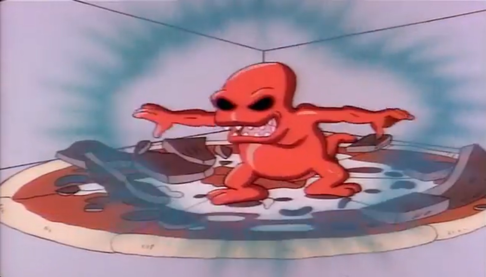 - La métamorphose de ces créatures rappelle aussi celle de Gremlins. Dans le film de Joe Dante, les gentils mogwais se changeaient en créatures terribles si elles avaient mangé après minuit. Elles se multipliaient au contact de l’eau. Ici, le monstre des pizzas se transformait au contact de l’eau.