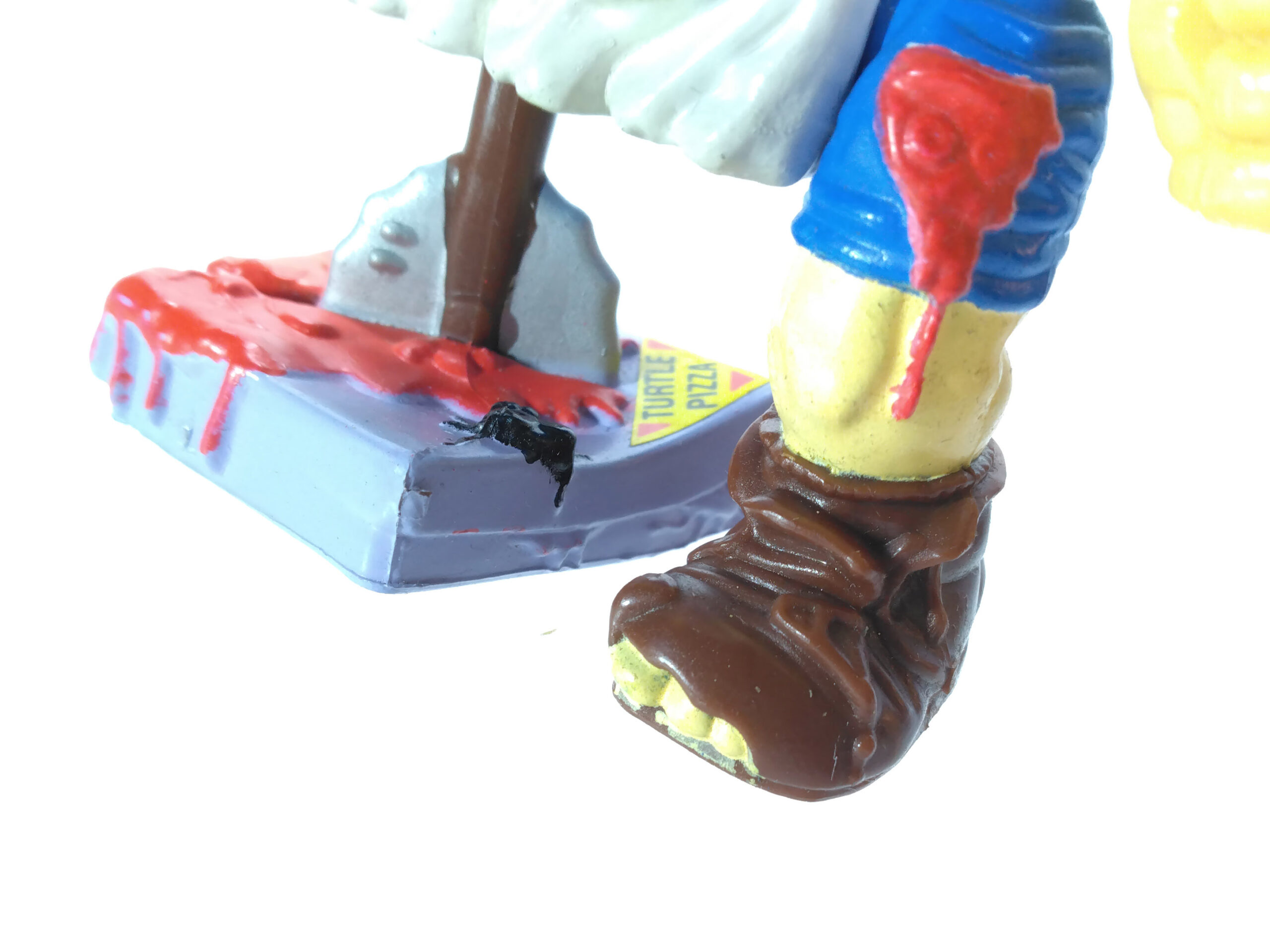 Si beaucoup de détails sont peints de manière aléatoires et avec des couleurs pas toujours bien choisies, d’autres ne le sont pas. C’est le cas du couteau, ou encore de la section de doigt. Des tubes de sauce ou encore du bouclier et de la boîte de pizza qui sert de jambes. Vraiment dommage !