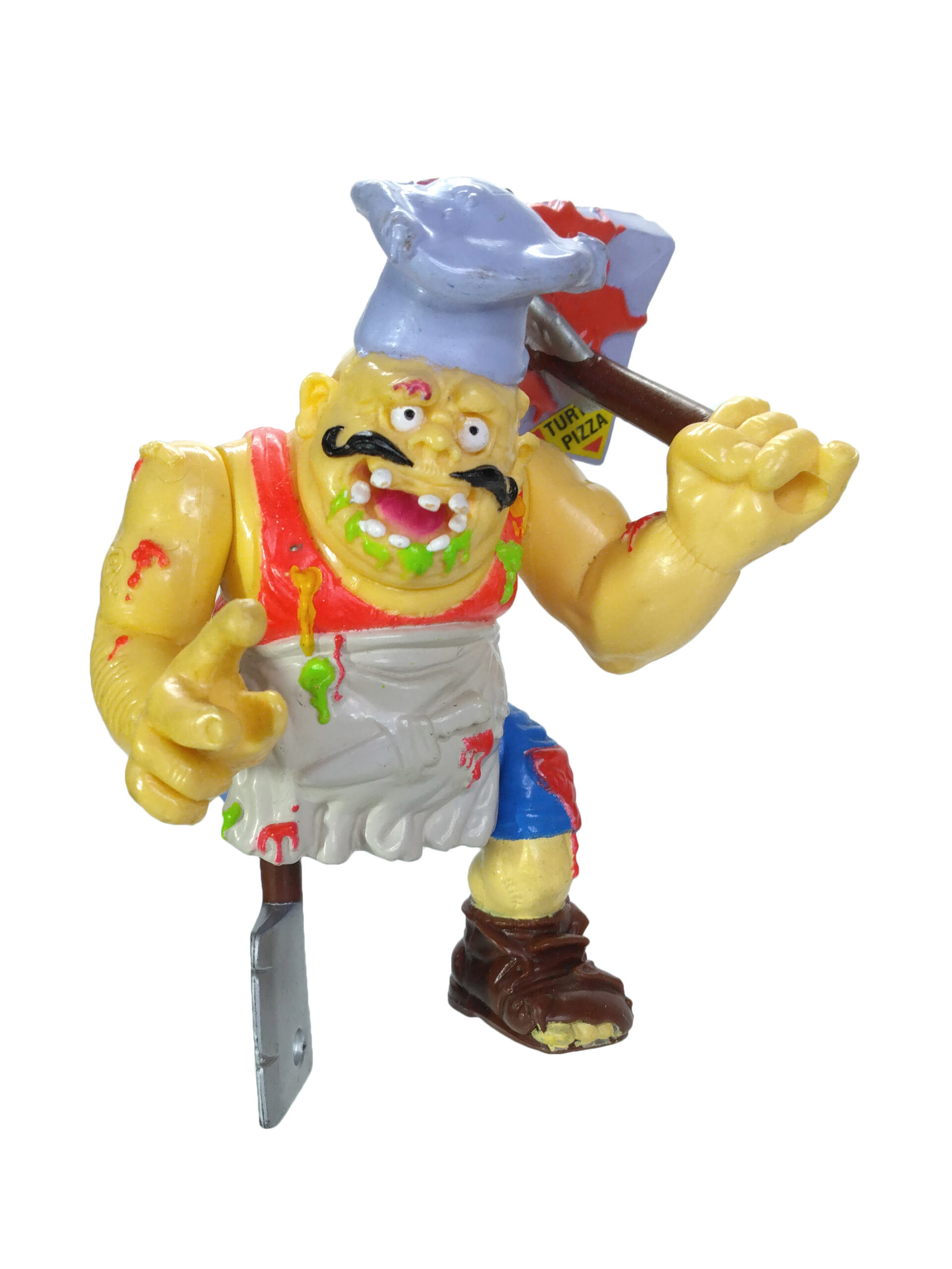 Quoi de mieux pour en finir avec les tortues qu’un pizzaoïlo tueur ? Le concept est génial et n’a étonnamment jamais été repris dans les séries des Tortues Ninja. Il était pourtant un ennemi parfait et tout désigné ! Un petit peu trop gore peut-être ?