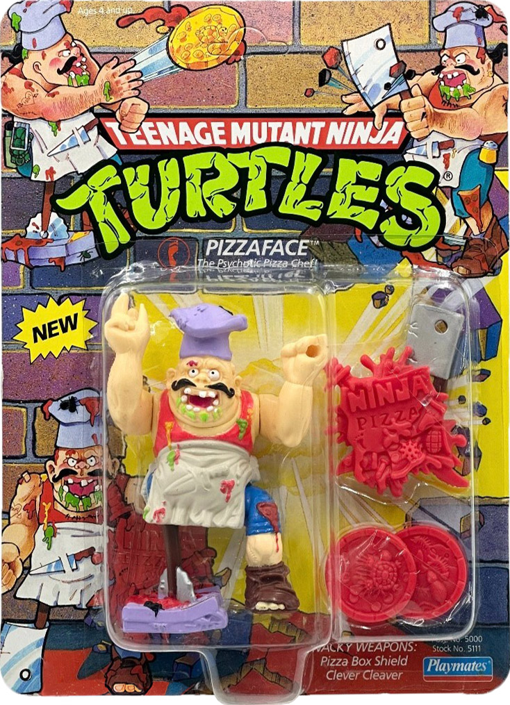 Pizzaface apparaît en fin d’année 1990. Deux versions ont été produites simultanément, celle avec un couteau laissé blanc, et l’autre avec le couteau peint en vert. D’autres détails varient d’un modèle à l’autre (voir la section peintures ci-dessus).