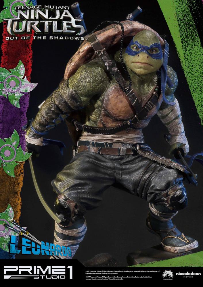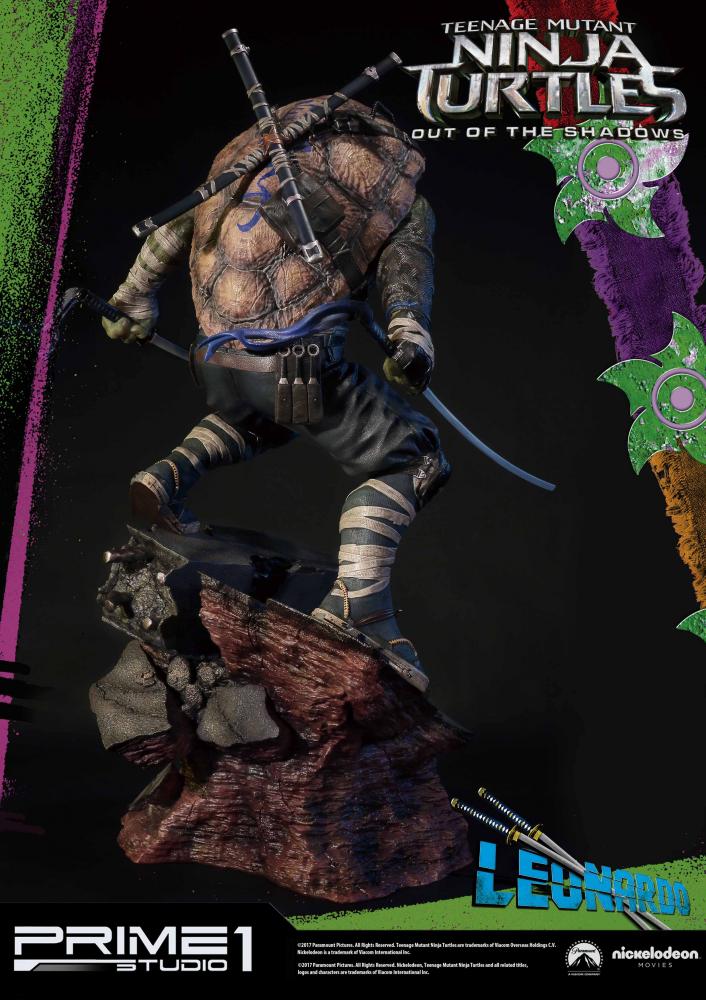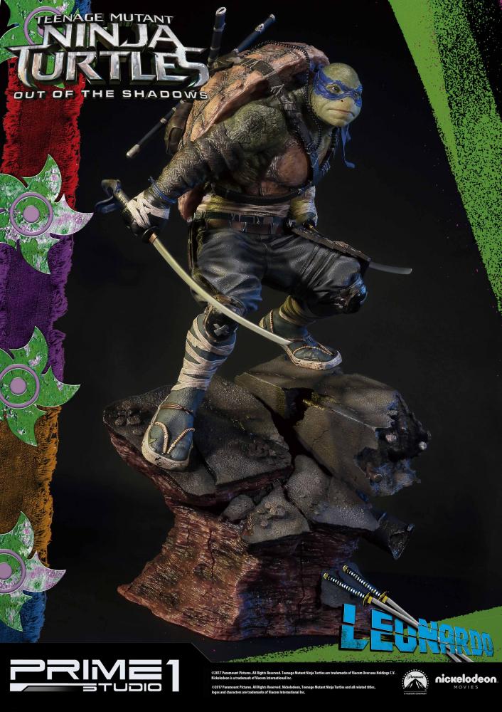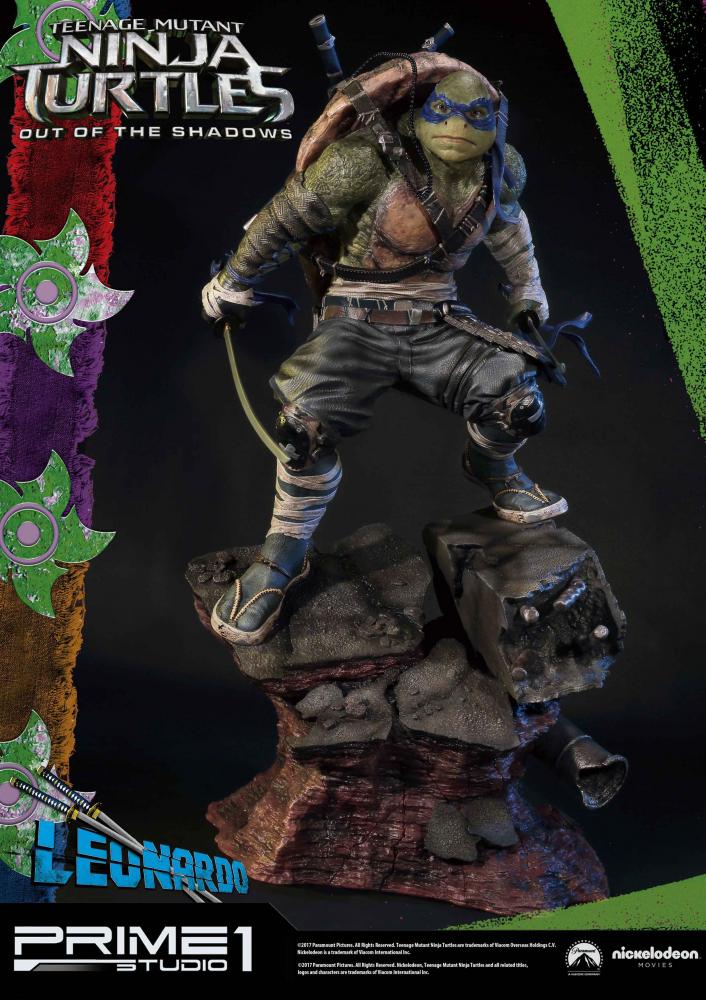 La statuette de Leonardo est l’une des six pièces créées par Prime 1 Studio à l’image des personnages du film Ninja Turtles de 2016. Réalisée en polystone, elle mesure 61 cm de haut, socle compris.