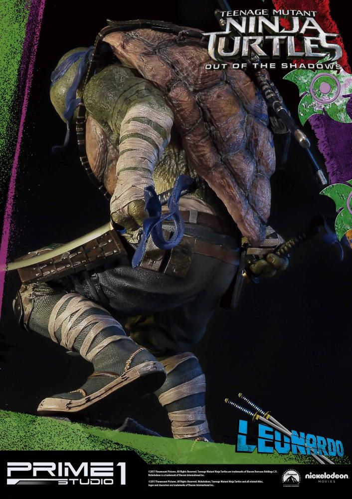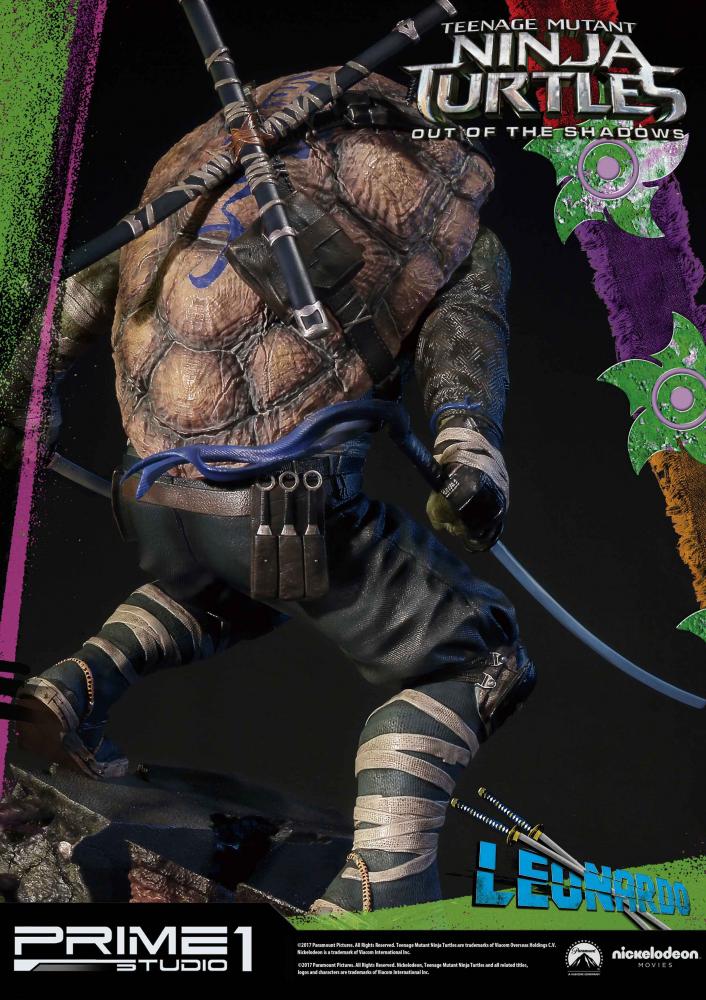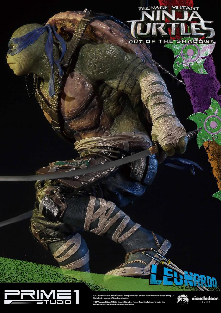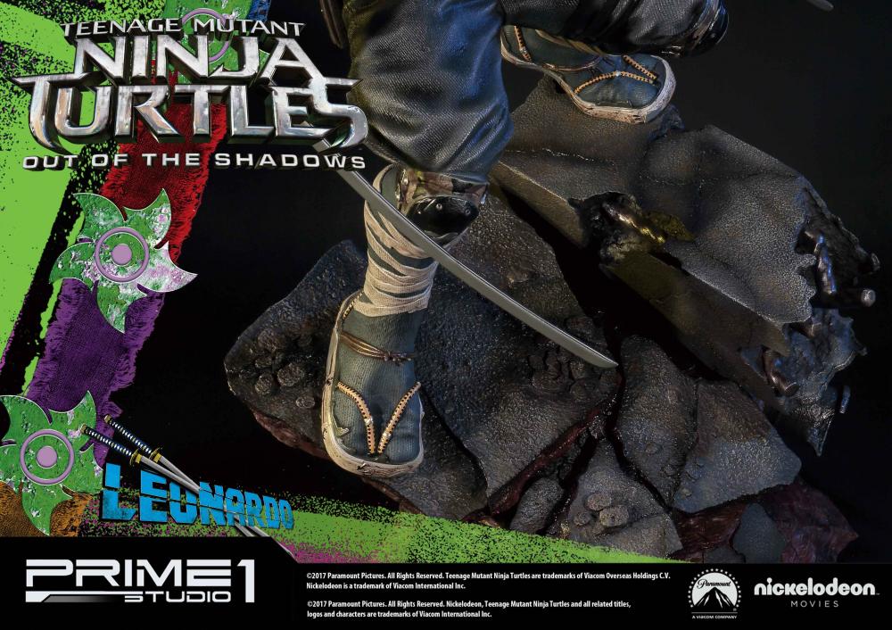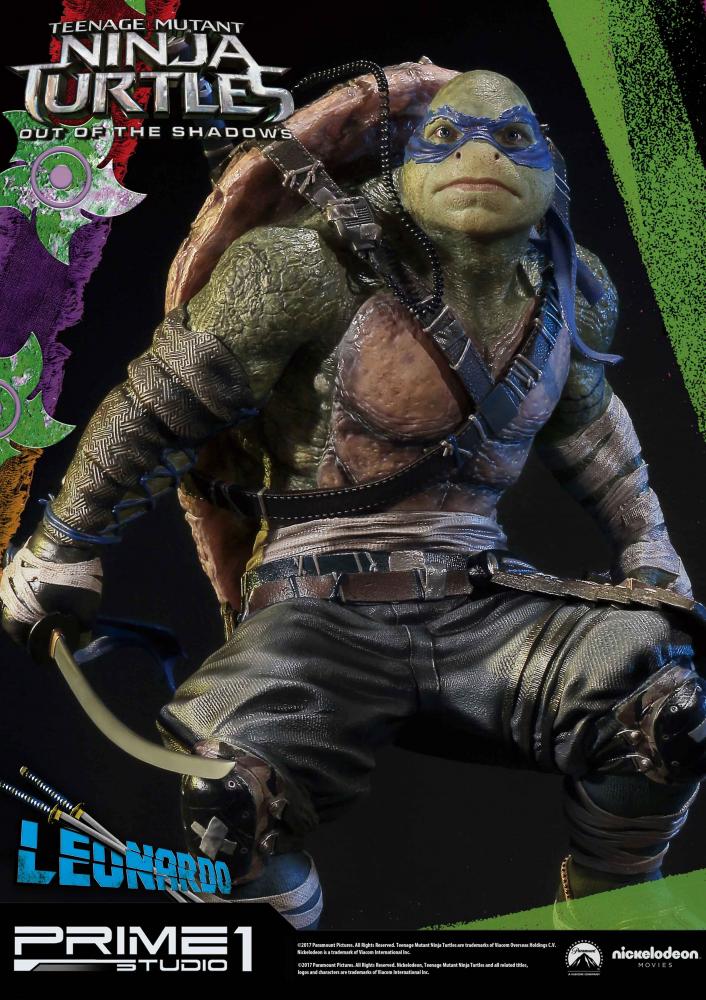 La statuette de Leonardo est l’une des six pièces créées par Prime 1 Studio à l’image des personnages du film Ninja Turtles de 2016. Réalisée en polystone, elle mesure 61 cm de haut, socle compris.
