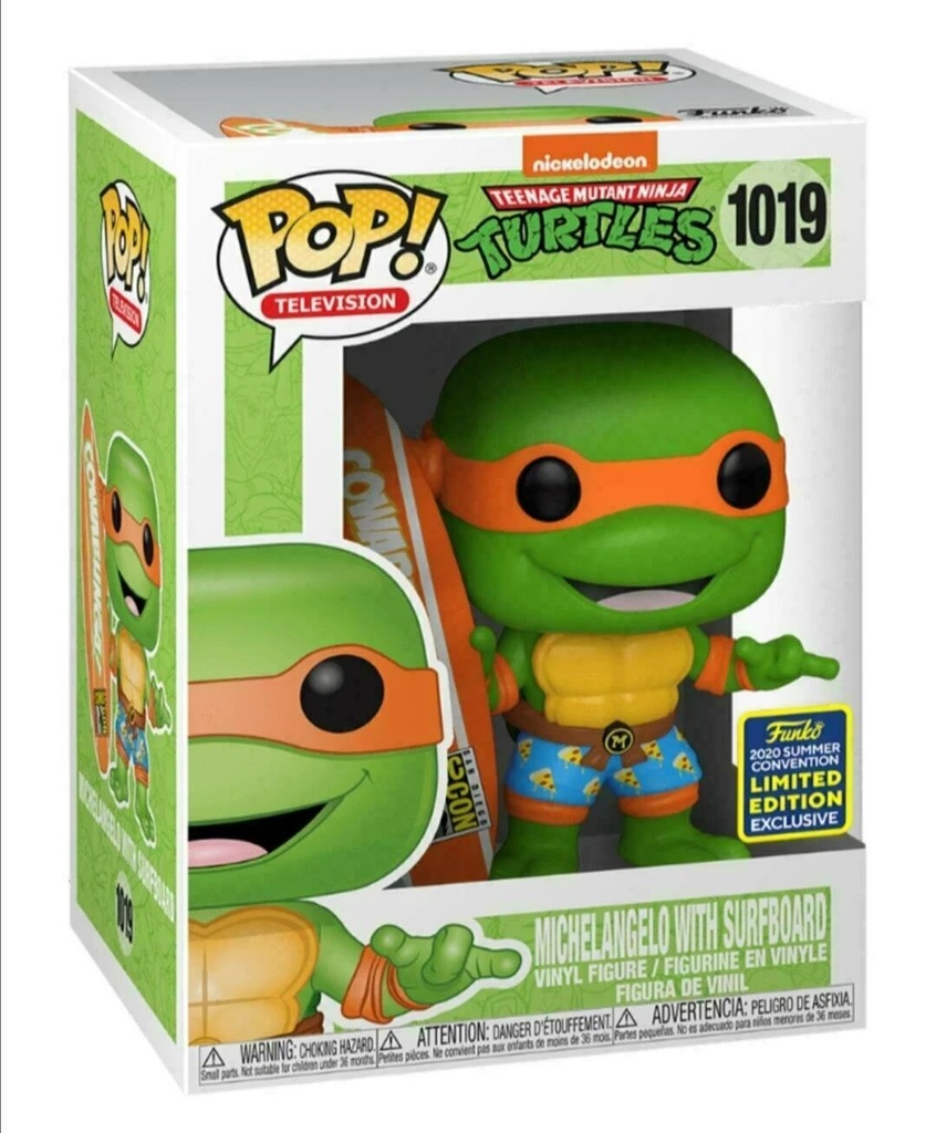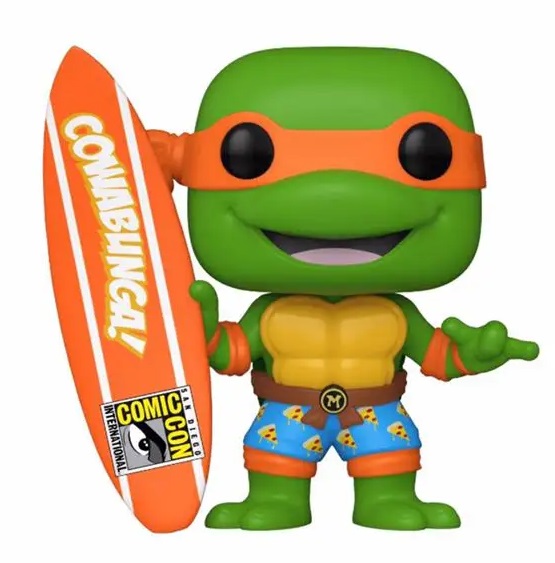 A l’occasion de la San Diego Comic Con 2020, Funko a réalisé une figurine de Michelangelo avec une planche de surf. Le logo du salon international était collé sur la planche de la tortue. La figurine était également disponible sur le site du fabricant.