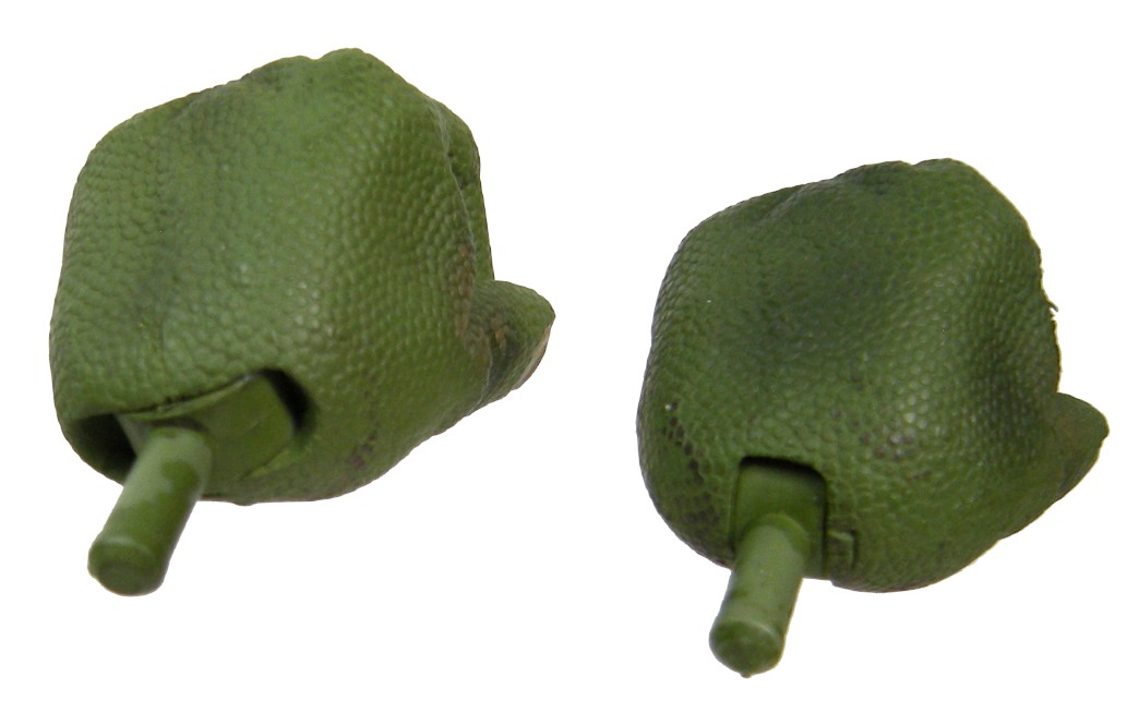 Enfin, les mains sont réalisées exactement de la même manière que le reste du corps de la tortue, avec un plastique parsemé d’écailles. Comme la figurine n’est accompagnée d’aucun autre accessoire, contrairement à Donatello et Leonardo, on gagne une main supplémentaire pour Raphael. Toutefois, il ne faut pas s’y tromper, seule une main présente dans ce lot une nouvelle sculpture par rapport à Donatello.