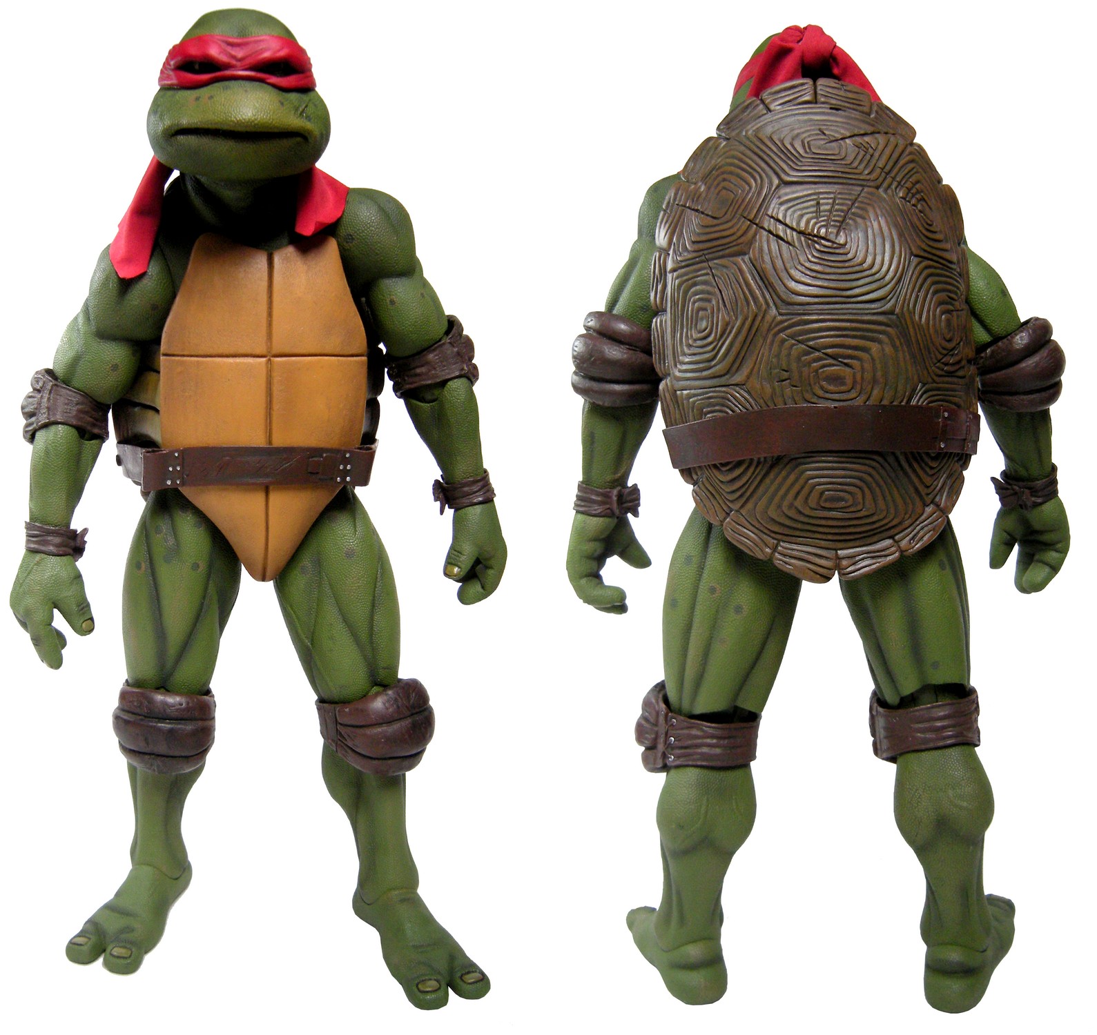 La carapace de Raphael est identique au niveau de la sculpture à celle de Donatello. La seule différence est la présence de nombre écorchures, rappelant ô combien la tortue est bagarreuse. Ces traces ne sont pas fidèles à 100% avec le costume du film, mais la plupart des marques sont bien représentées.
