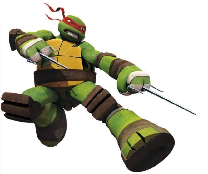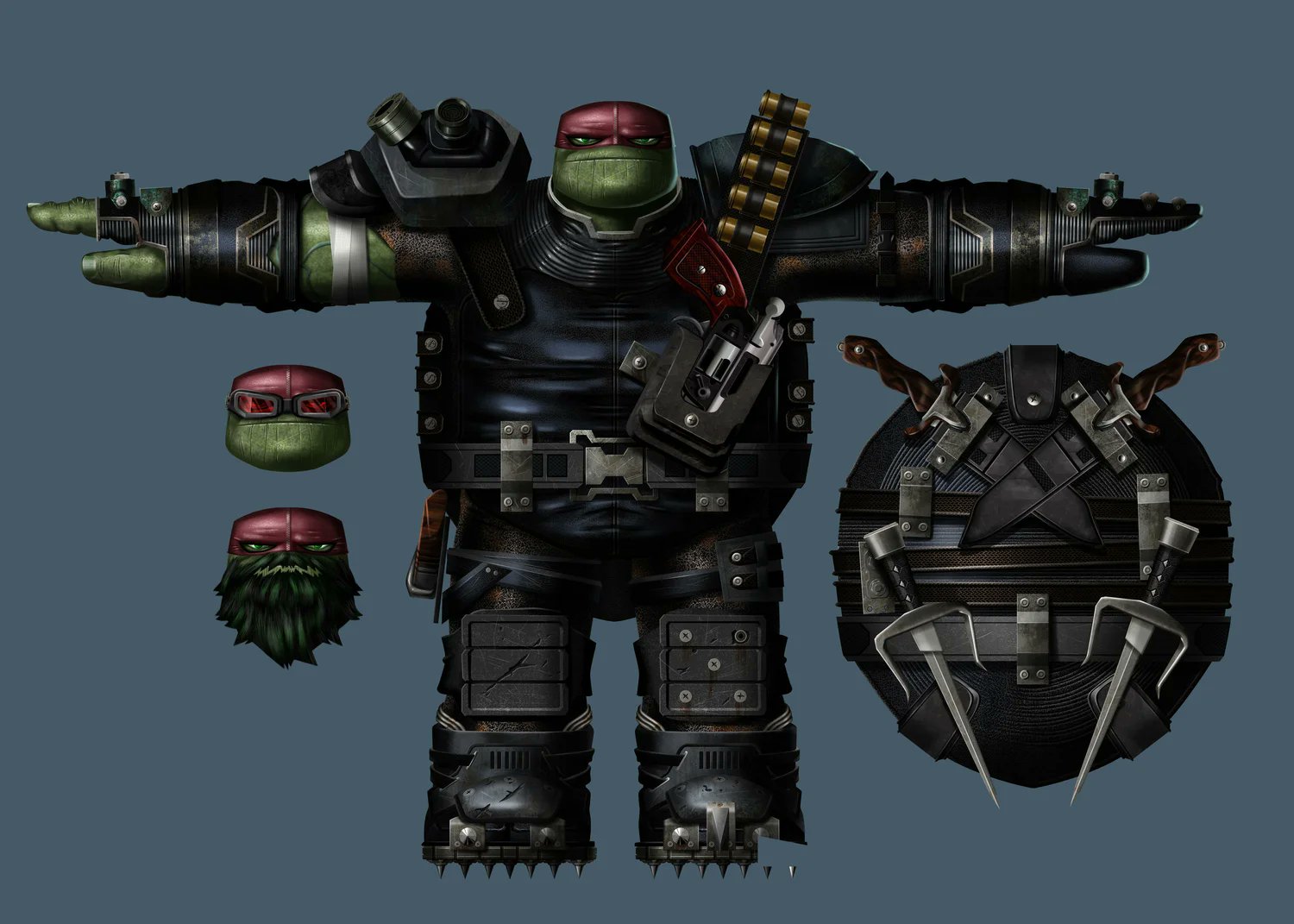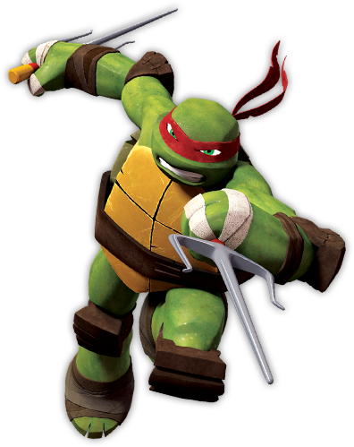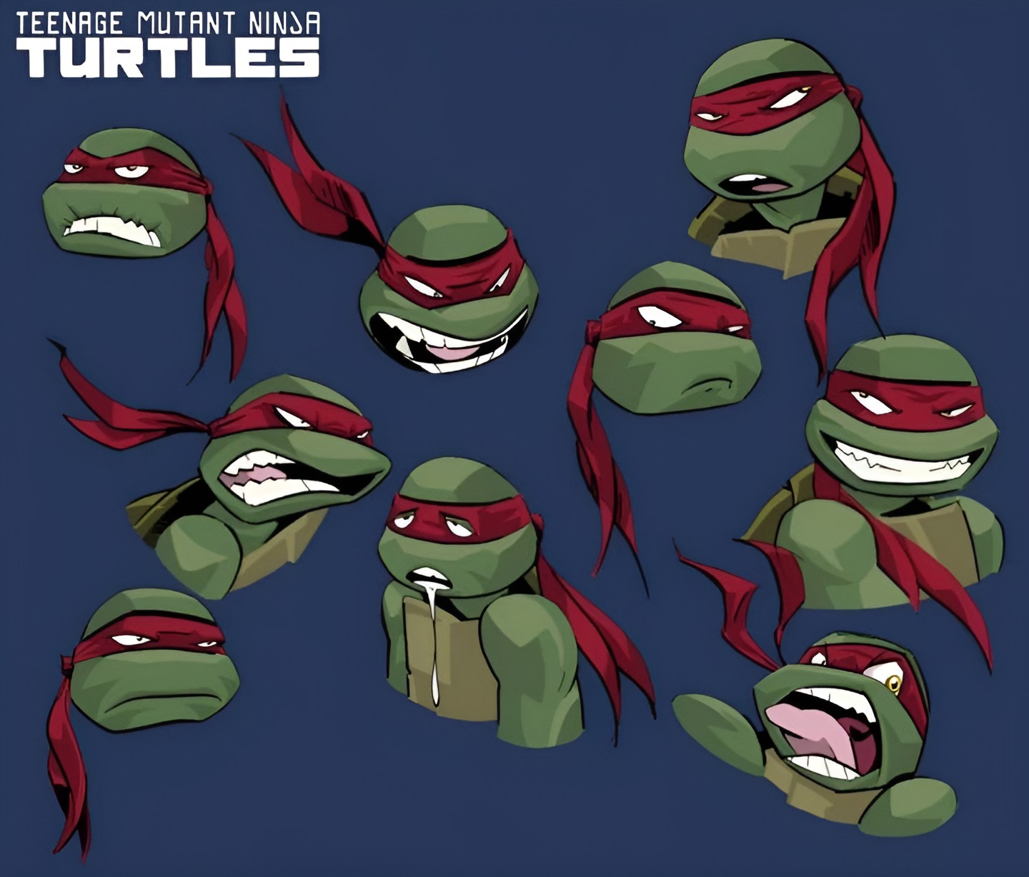 Raphael était la tête brûlée de l’équipe, celui qui fonçait dans le tas en faisant parler ses muscles et ses saïs. Cette force de caractère, faisant régulièrement des étincelles avec Leonardo, était aussi une manière de dissimuler sa sensibilité. Se mettant beaucoup de pression sur les épaules, Spike, sa tortue de compagnie, était son confident lorsqu’il n’avait pas le moral.