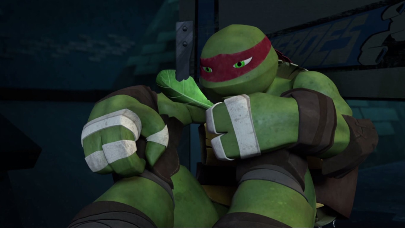 En réponse à cela, Raphael fut prié de suivre Splinter dans le dojo pour calmer ses ardeurs. Les autres tortues devaient le provoquer et l’insulter tout en lui décochant des flèches sur la carapace. Le but de l’exercice pour Raphael était de les esquiver et faire fi de ses sentiments. L’entraînement fut échec. Pire encore fut leur seconde sortie, dans le but de récupérer la vidéo de Vic. L’homme leur demandait un million de dollars, ce qui irritait de nouveau Raphael. Ils furent une nouvelle fois interrompus par les kraangs et Vic capturé. La tortue essaya de s’en prendre à l’homme et fut dégagé par les envahisseurs. Leonardo, exaspéré par l’attitude irresponsable de son frère, le renvoya chez eux le temps de sauver l’humain.