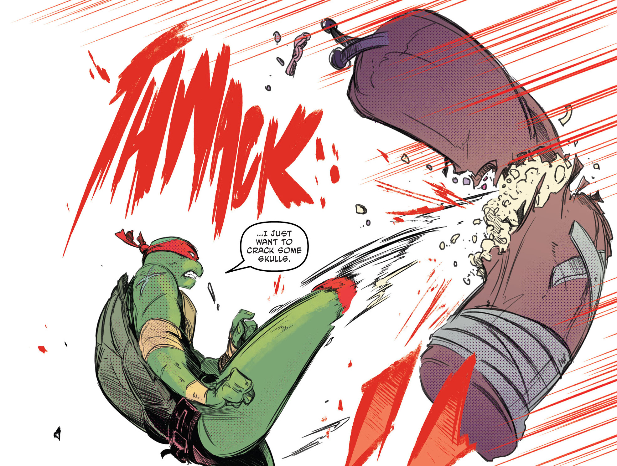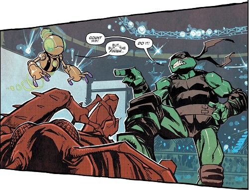 La tortue fit partie de l’équipe qui terrassa Krang dans le Technodrome sur Burnow Island, tandis que le Foot Clan lui déclarait la guerre sur la plage. Mais à leur retour, ils trouvèrent Donatello salement amoché (TMNT #44). Raphael s’en voulait de ne rien avoir pu fait. Tandis qu’Alopex cherchait à lui remonter le moral, Leonardo venait le chercher. Il avait besoin de lui pour retrouver le Foot Clan et se venger (TMNT #46).