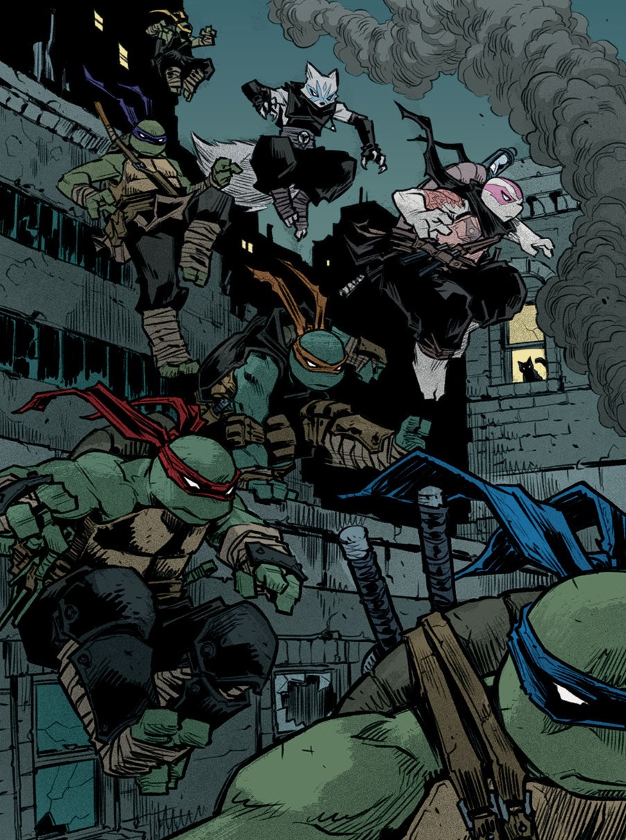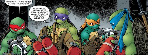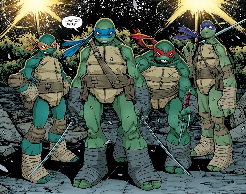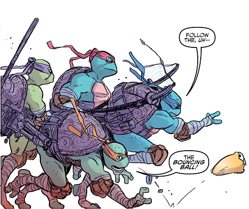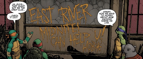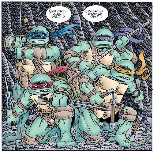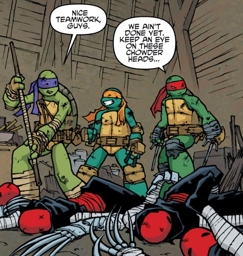 Mais de retour dans les égouts de la Grande Pomme, les ninjas se disputaient sur tous les sujets, principalement Raphael et Michelangelo. Leurs cris furent interrompus par des patrouilles Foot, qui les traquèrent jusque dans les rues de la ville (TMNT (Vol. 6) #6). Après une course poursuite folle, les frères partirent s’abriter dans les égouts de Newark.