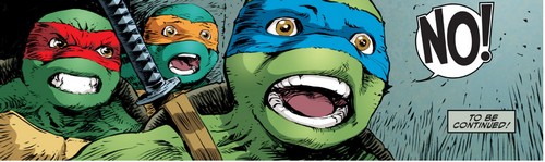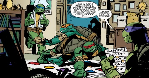 Les trois frères essayaient alors d’expliquer à Donatello que Splinter était mort et que la voix qu’il entendait de son compagnon de cellule, un rat mort lors de son évasion, n’était pas celle de leur maître. Michelangelo se montrait particulièrement véhément sur ce sujet (TMNT (Vol. 6) #7). Finalement, Donatello décida de réaliser sa croisade contre la corruption de Hale seul, laissant ses frères être persuadés qu’il était fou. Puis finalement, Leonardo entendit les pleurs de Splinter (TMNT (Vol. 6) #8), ce qui agaçait fortement Raphael. Une nouvelle dispute éclata et Michelangelo s’en alla. Finalement, la tête brûlée du groupe entendit à son tour des pleurs. Il ne s’agissait pas de son frère, justement parti. Il comprit qu’il entendait Splinter et qu’il lui suffisait d’ouvrir son cœur (TMNT (Vol. 6) #9).