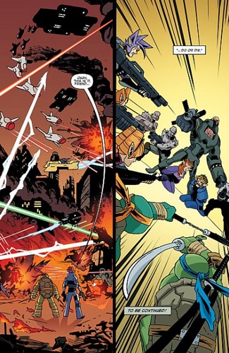 Après avoir été chassé de leur repaire par les machines de Stockman (TMNT #47), les tortues leur livrèrent combat sur un pont de la ville (TMNT #48). C’est alors que Karai vint à leur rencontre pour les aider. Il était temps que cette guerre entre les deux clans s’achève. Elle les mènerait au repaire du Foot Clan pour y défier Shredder. Dans un premier temps, ce seraient les chunin qui se battraient, les quatre tortues contre Koya, Bludgeon, Bebop et Rocksteady (TMNT #49). Le combat n’était pas de tout repos, principalement contre ces deux derniers. Tout ce que pouvaient faire les tortues était de les provoquer et les laisser s’entretuer. C’est alors que Donatello revint en pleine forme pour les aider. Le combat suivant vit Splinter affronter Shredder et gagner. Cela lui permit de prendre la tête du Foot Clan (TMNT #50).