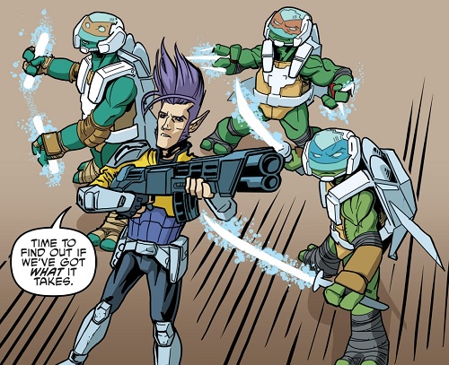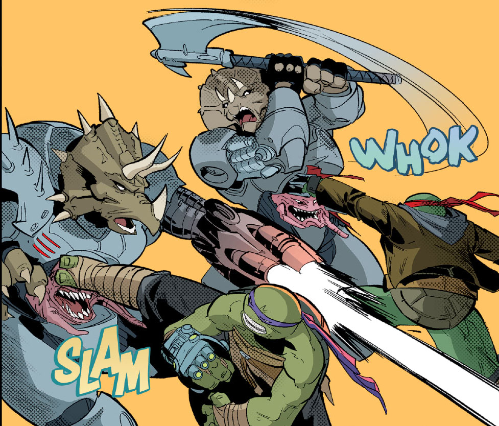Enfin, de retour sur Terre, il fit face à un nouveau conflit entre l’EPF de Bishop et les triceratons, venus demander accueil sur leur planète d’origine. À cette occasion, il dut affronter son propre père, qui avait conclu une alliance avec Bishop pour repousser l’envahisseur (TMNT : Invasion of the triceratons).
