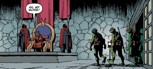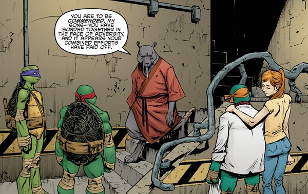 Une fois le combat terminé, les tortues partirent dans les égouts pour tenter d’entrer en contact avec Splinter. Il était clair que le rat leur était venu en aide depuis leur retour, y compris en faisait déferler des rats sur le monstre qui les attaquait. Donatello pensait que le rongeur se trouvait entre le monde des vivants et celui des morts. Raphael et ses frères entrèrent en méditation et virent leur père, mais celui-ci disparut. Le génie de l’équipe en conclut qu’il avait décidé de rester auprès de sa bien-aimée (TMNT (Vol. 6) #12).