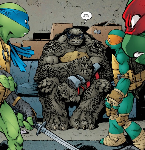 Caractéristiques : Fils d’Hamato Yoshi, exécuté par Oroku Saki au XVIIe siècle, puis réincarné en tortue de laboratoire au XXIe siècle. Il est le troisième fils de Tang Shen.